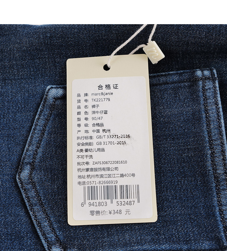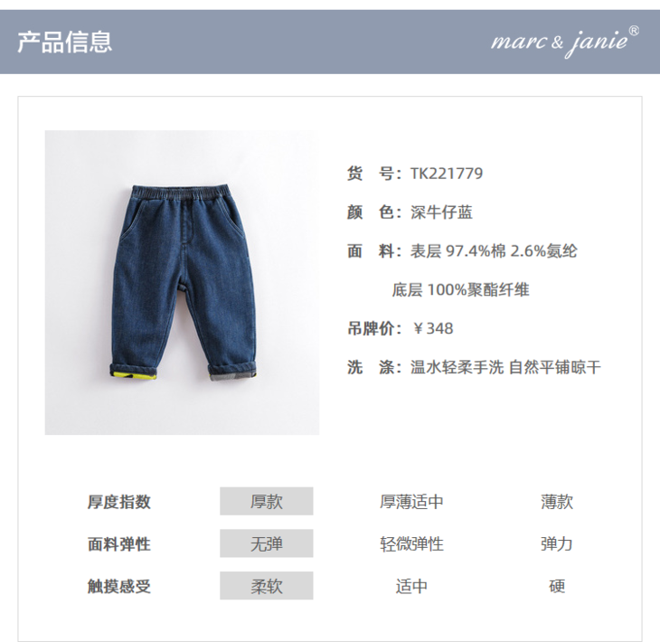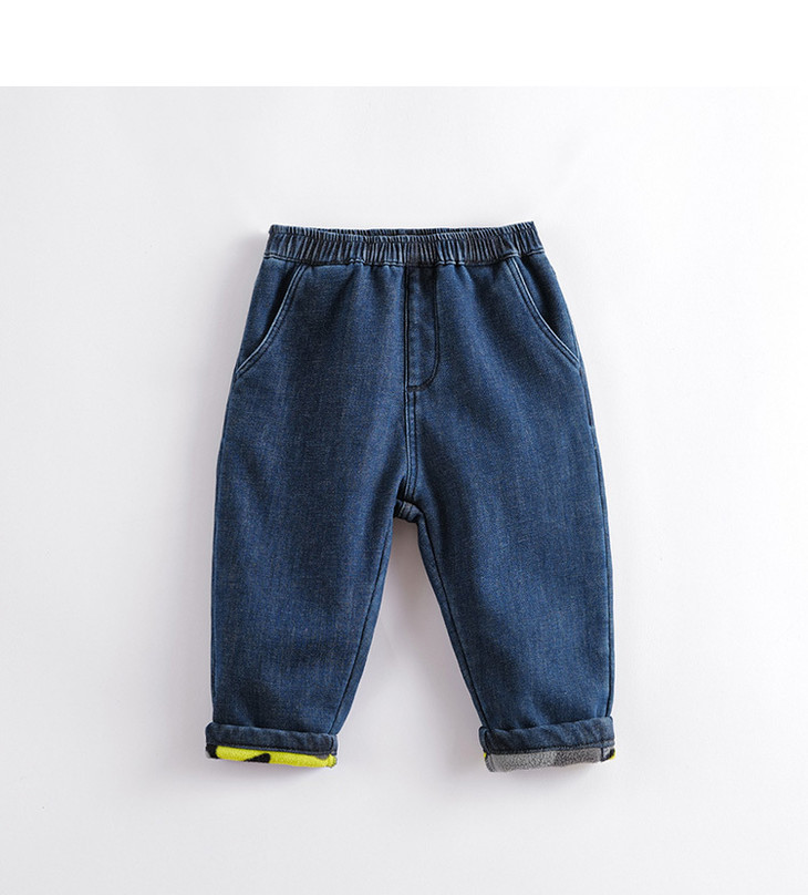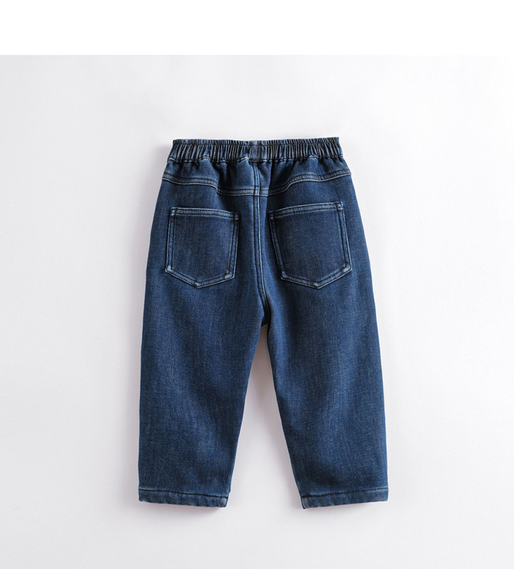 马克珍妮冬装新款 男童宽松加绒牛仔直筒裤 儿童裤子221779