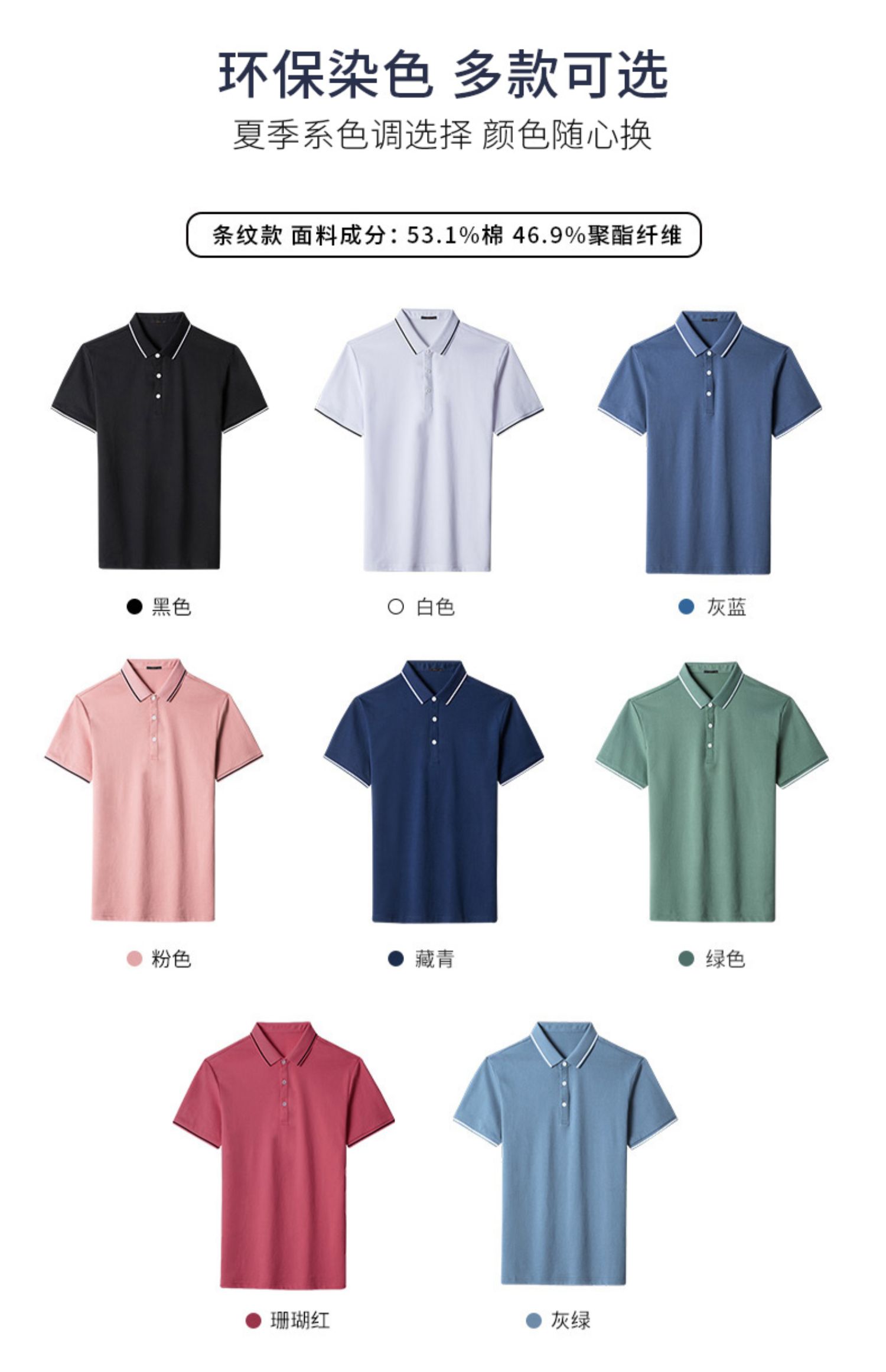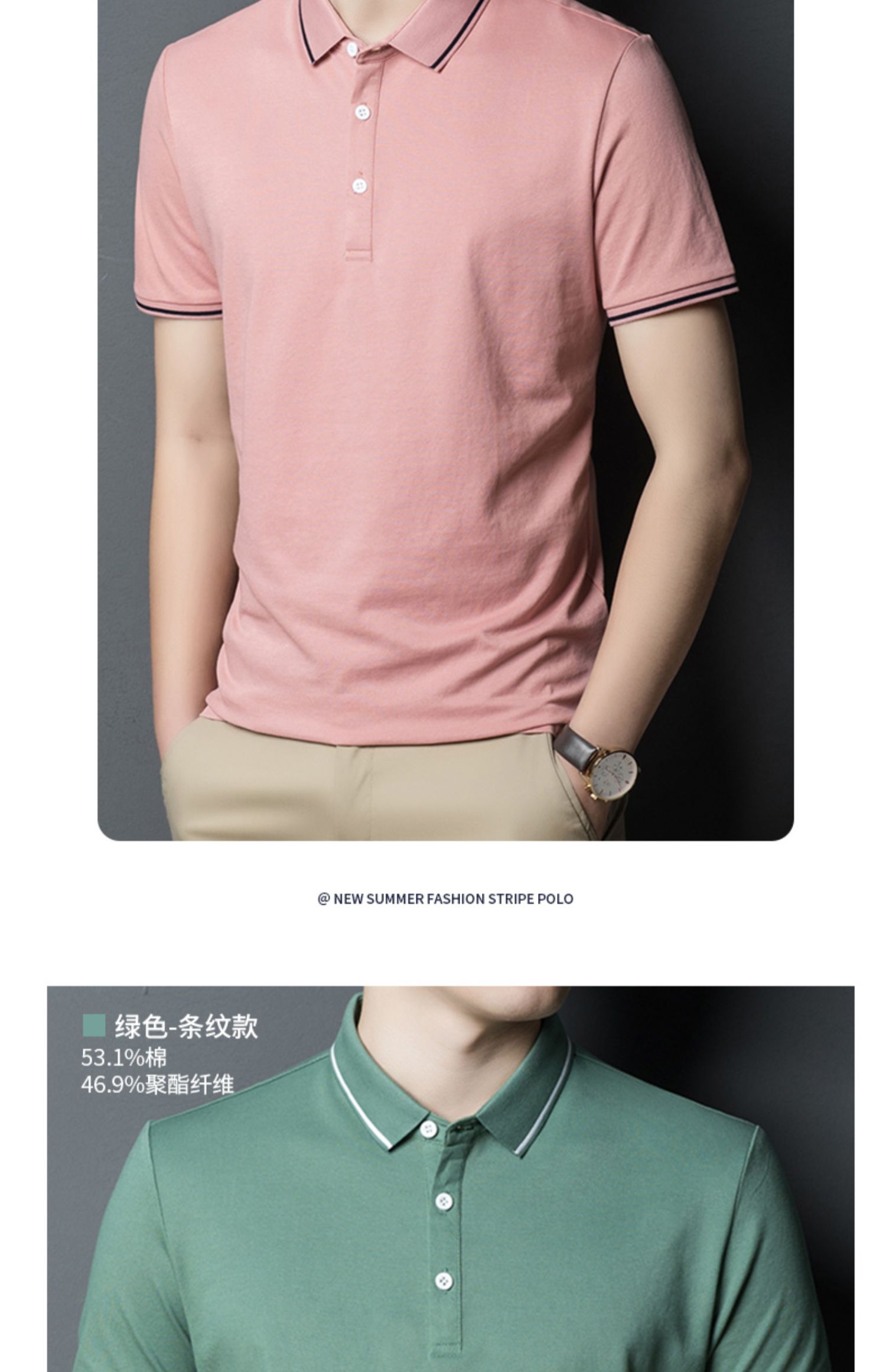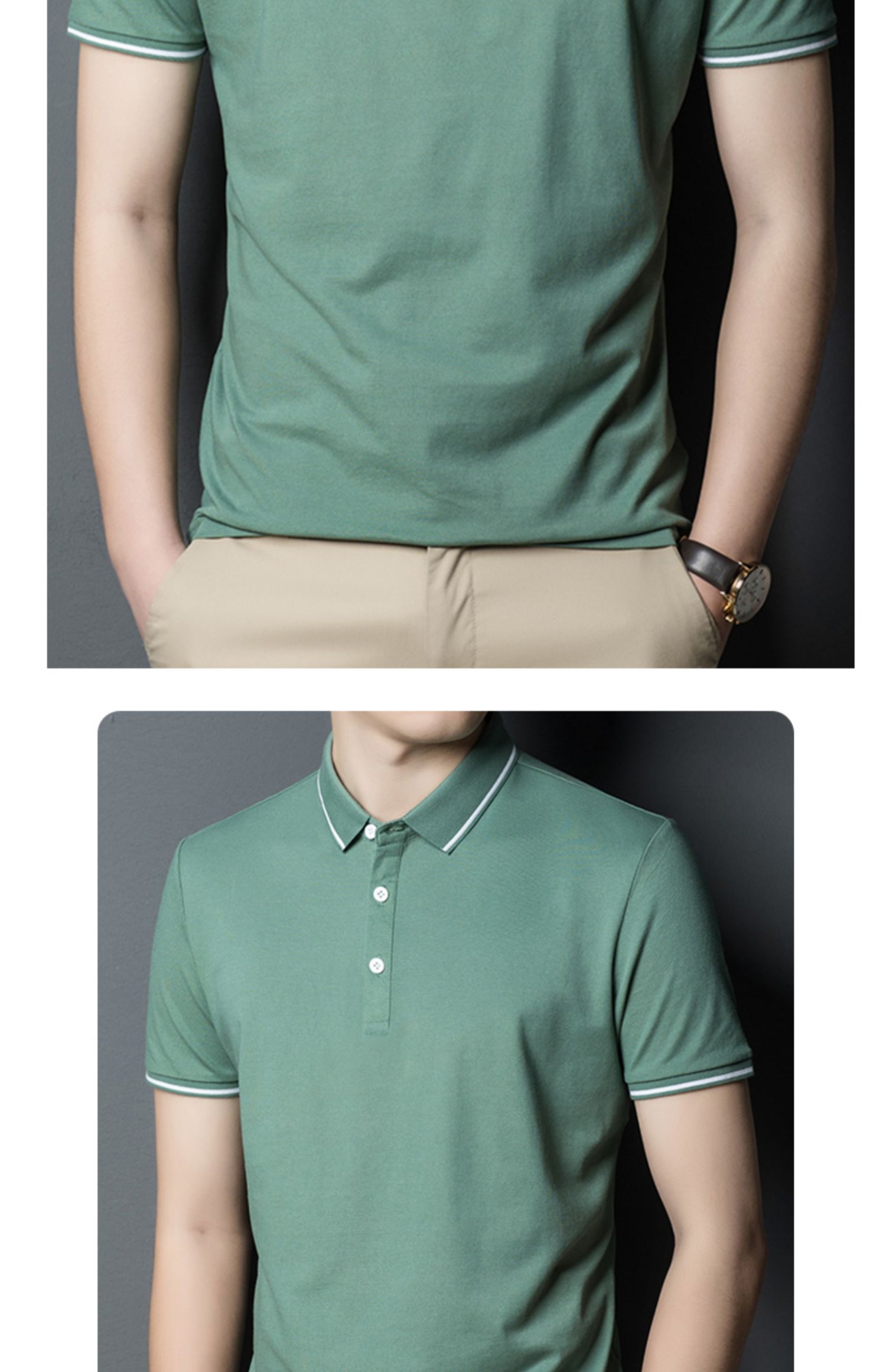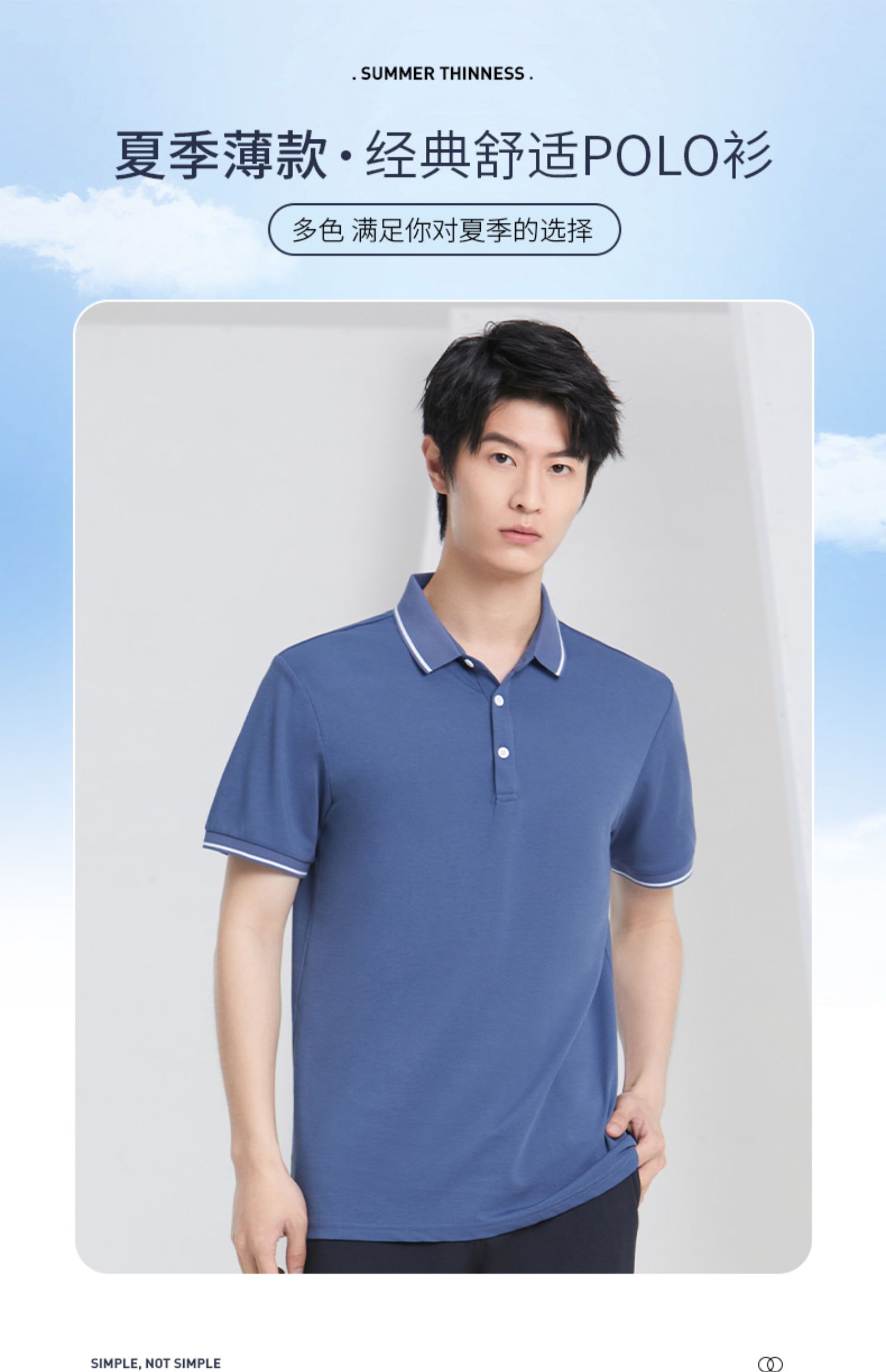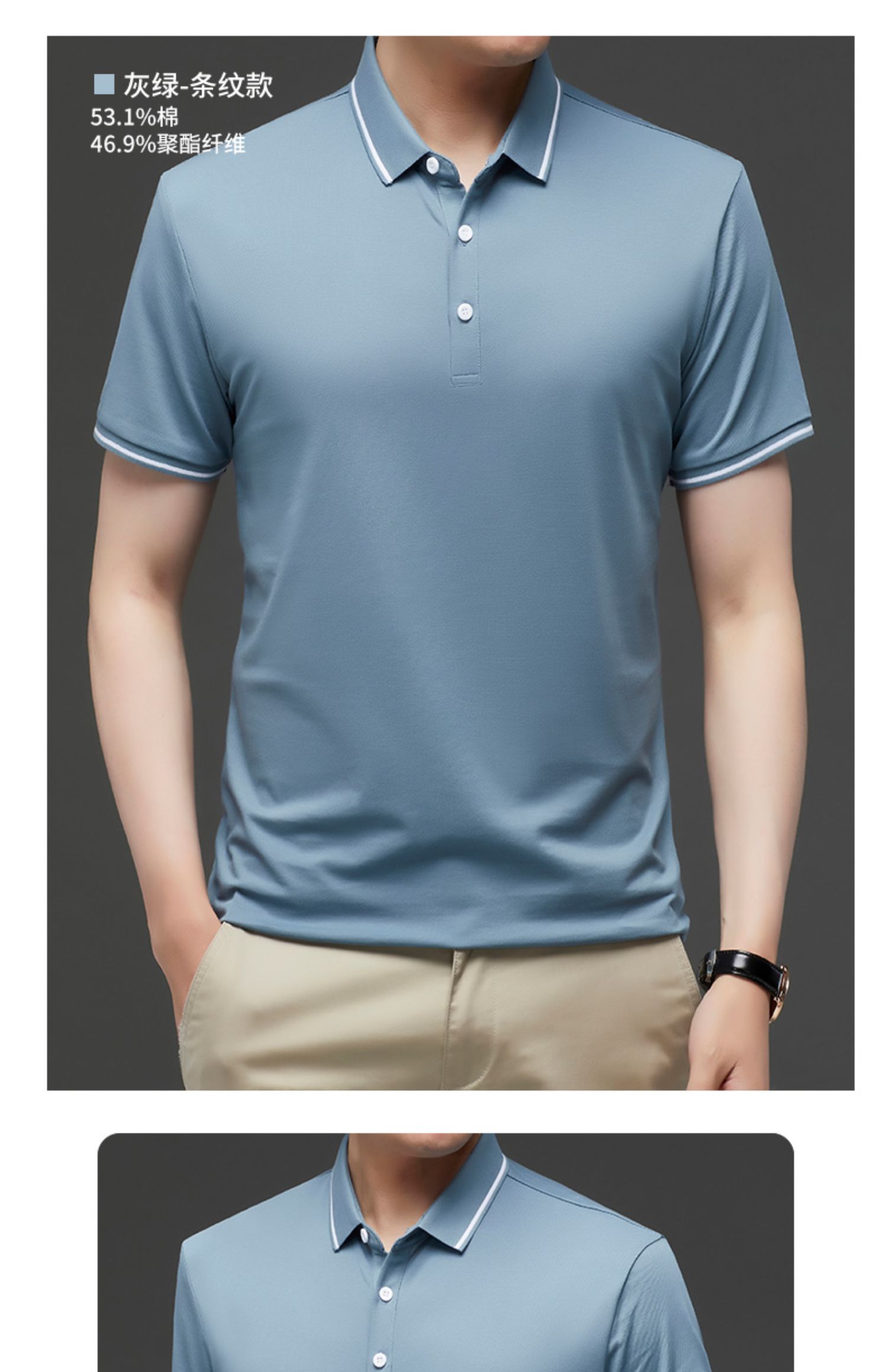 【薄款】圣得西男时尚纯色翻领polo衫2025秋新款棉质休闲短袖T恤