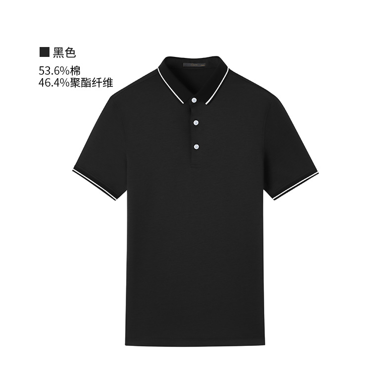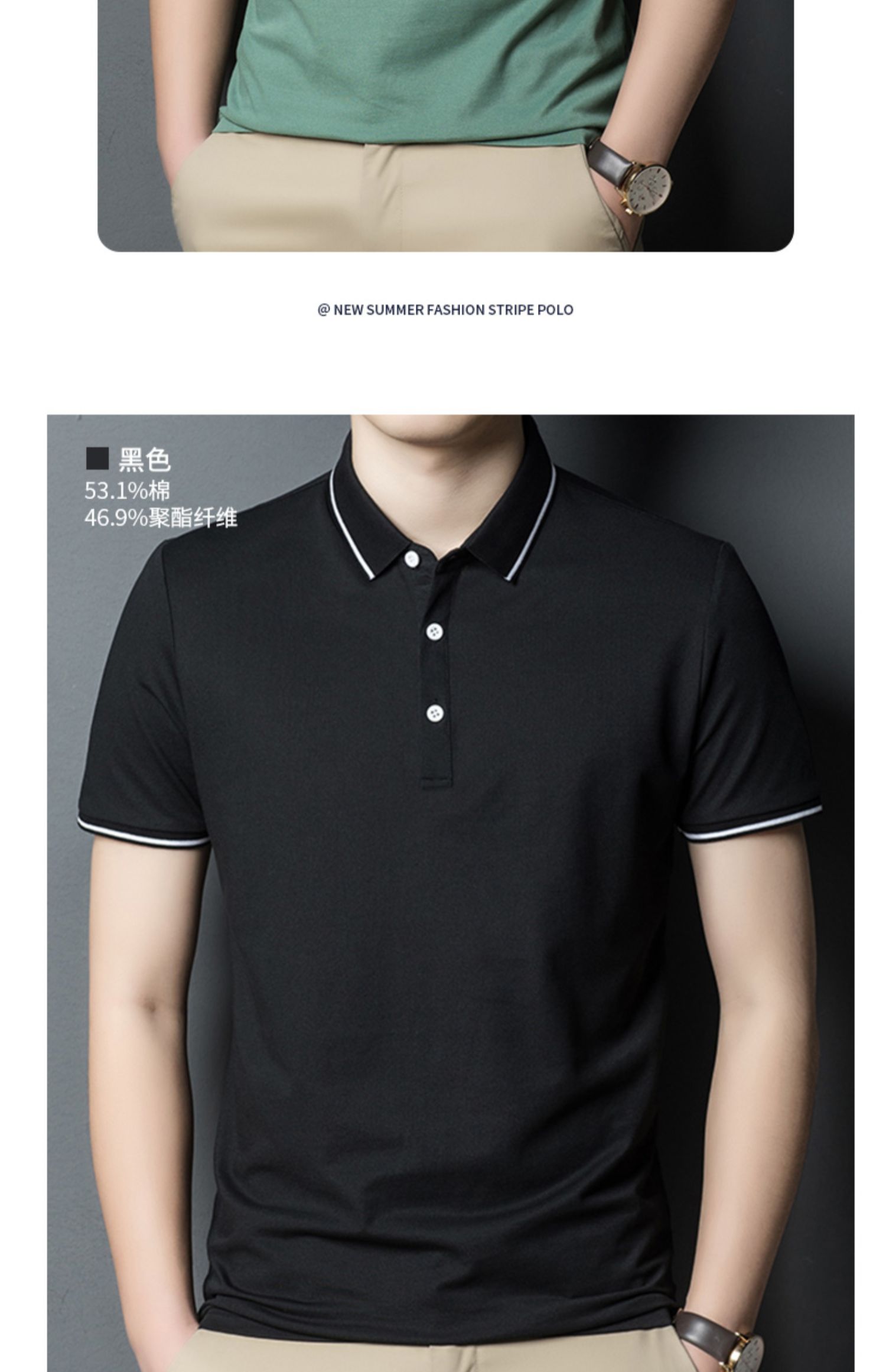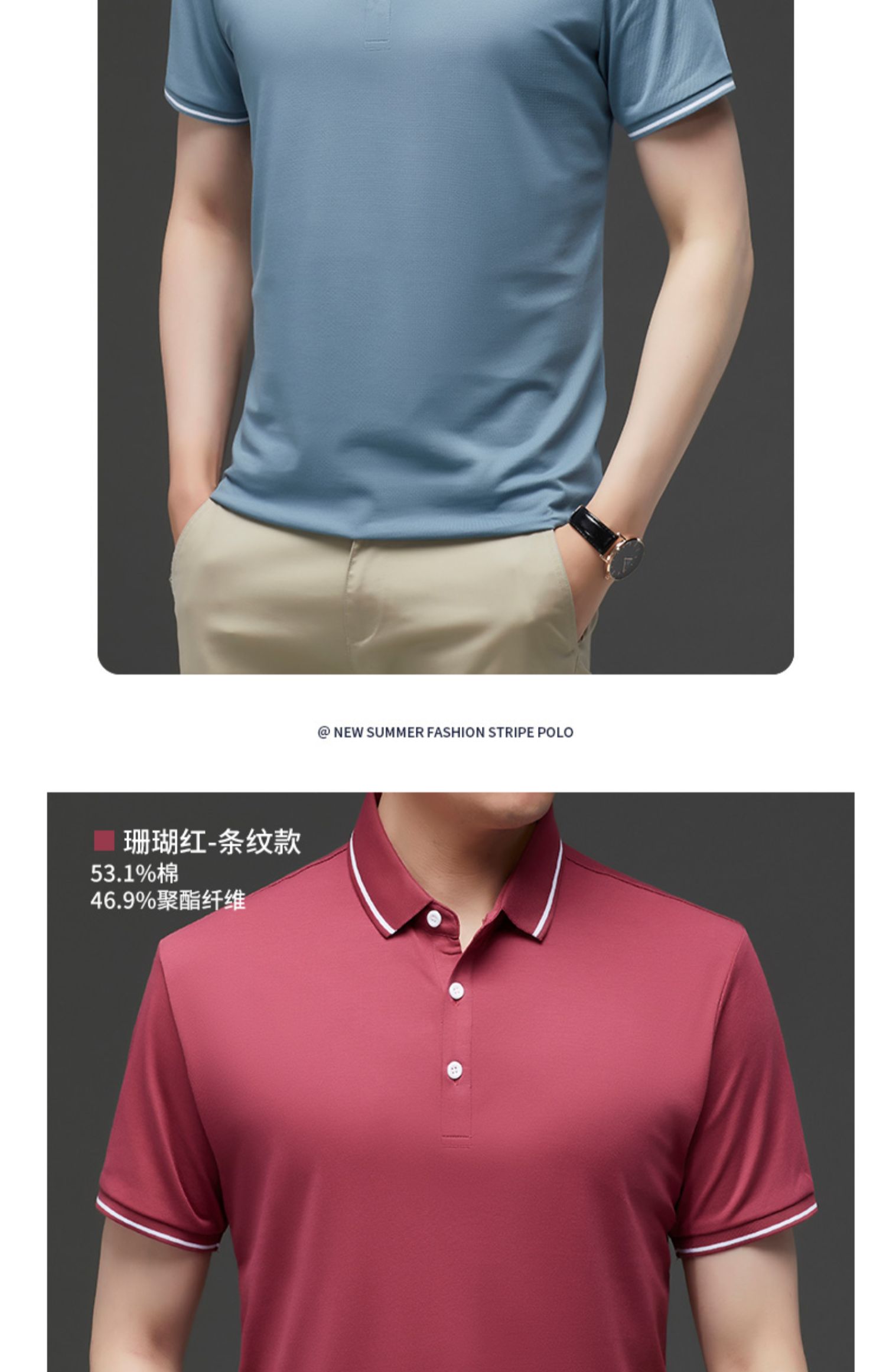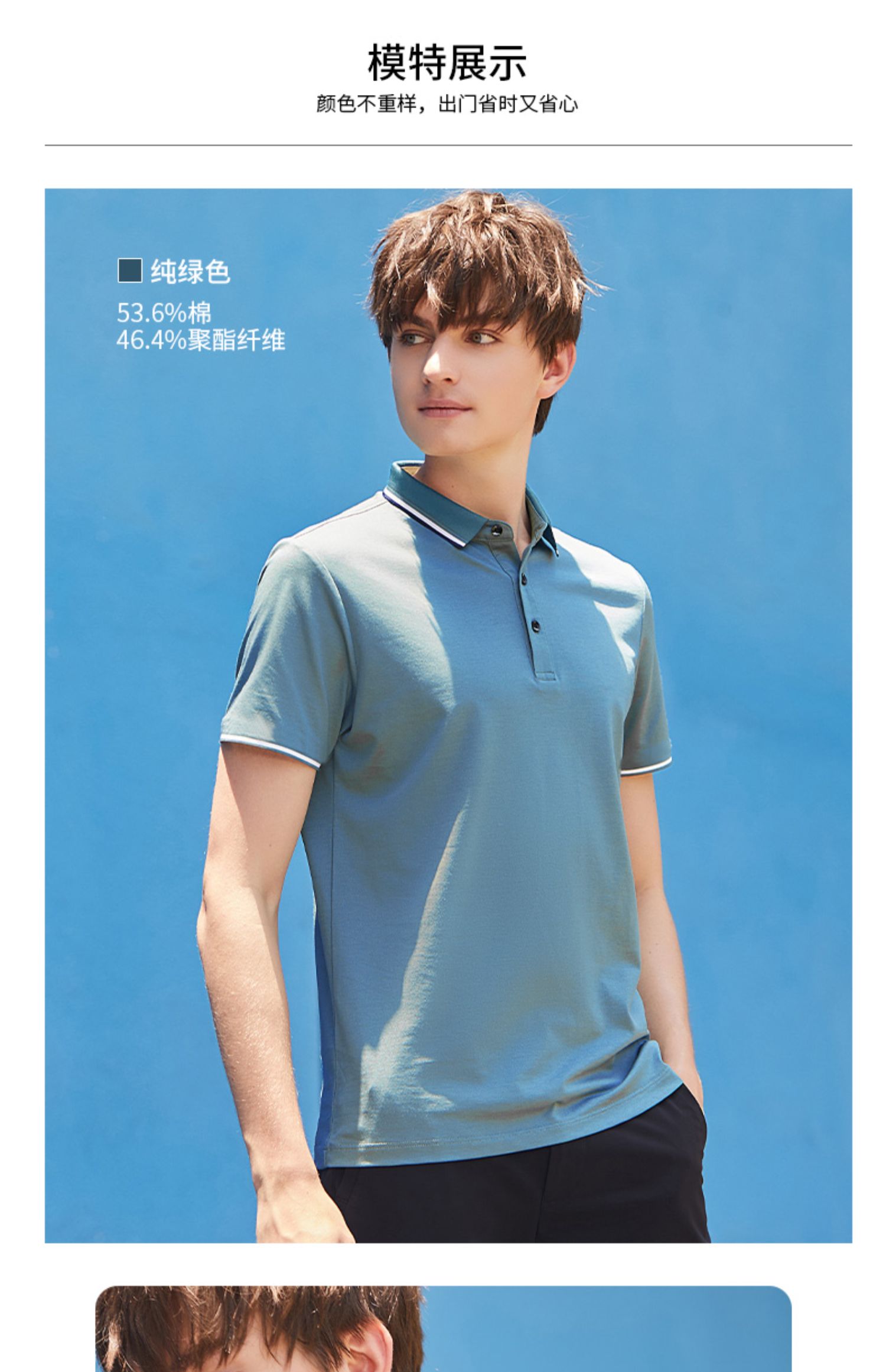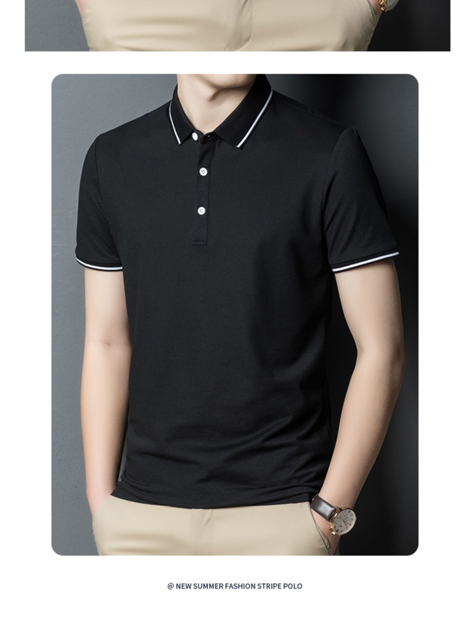 【薄款】圣得西男时尚纯色翻领polo衫2025秋新款棉质休闲短袖T恤