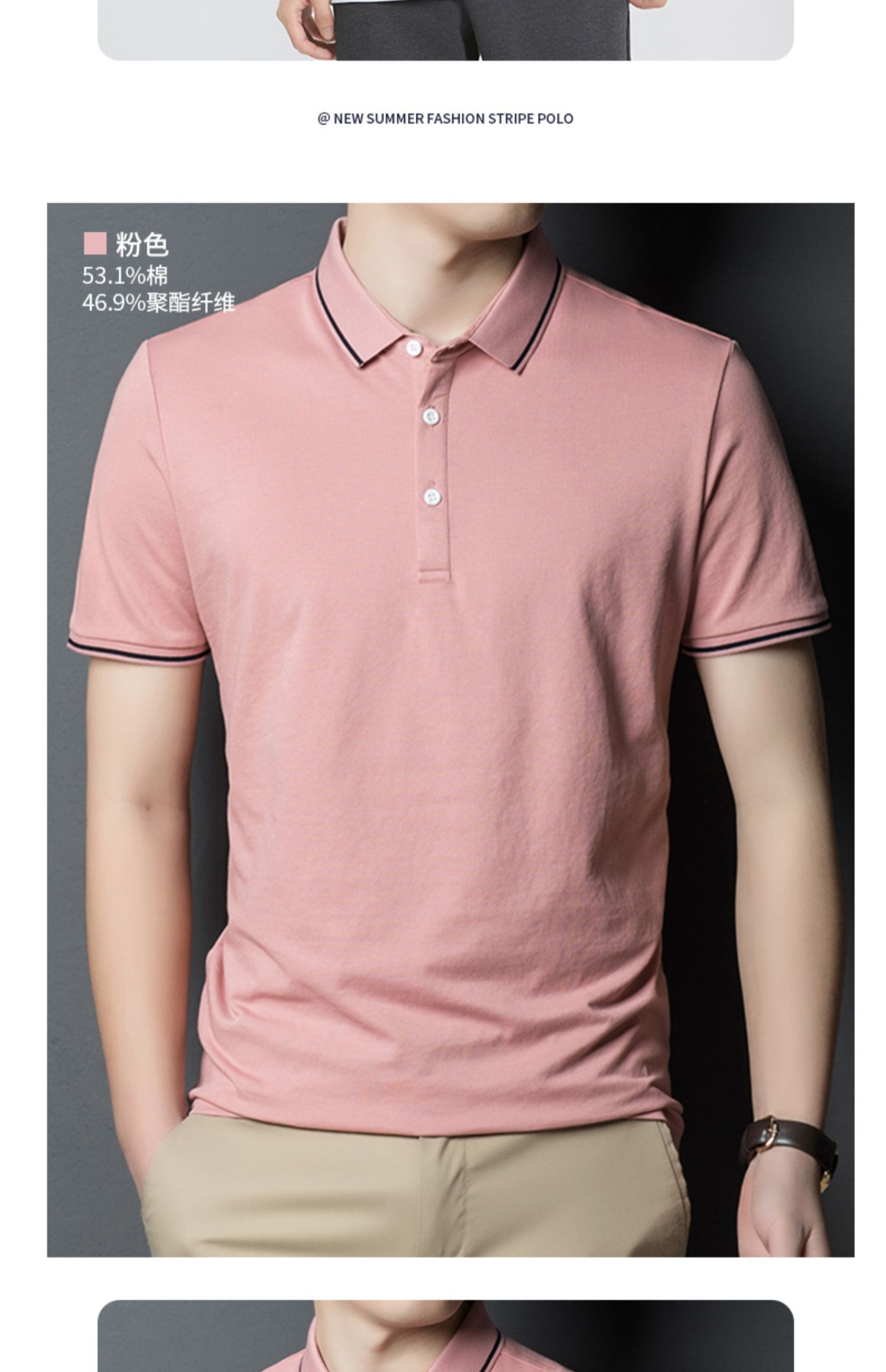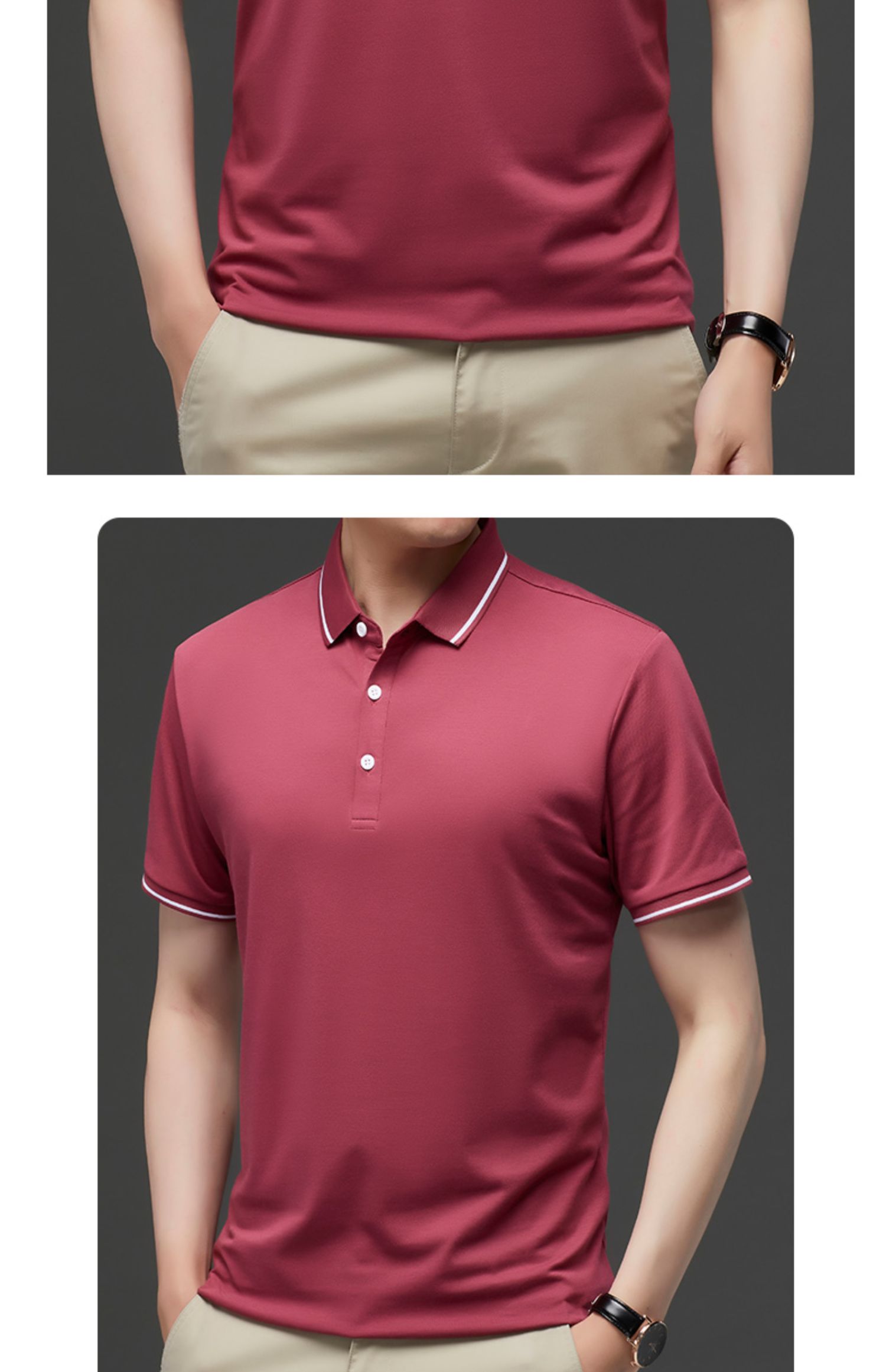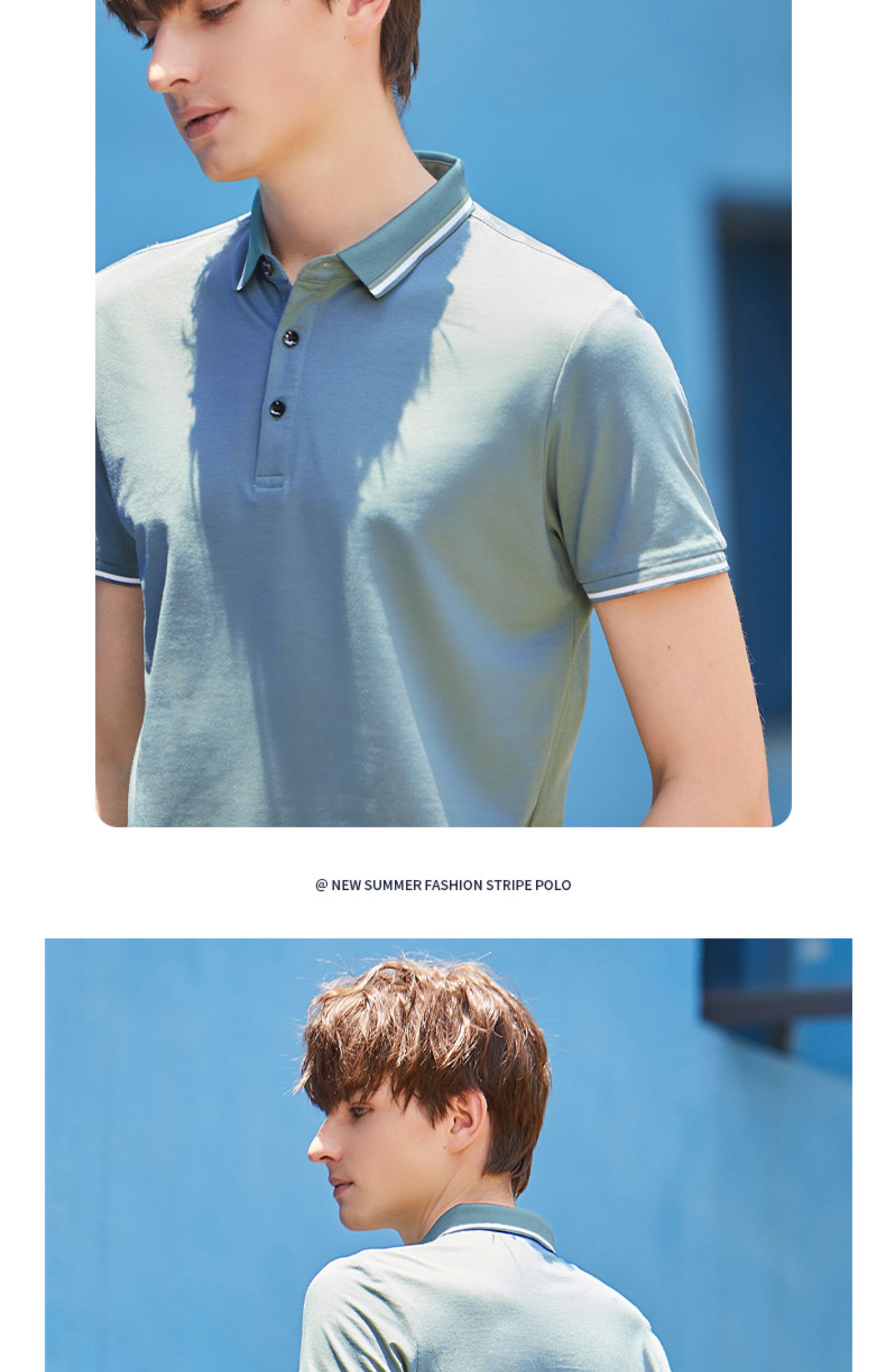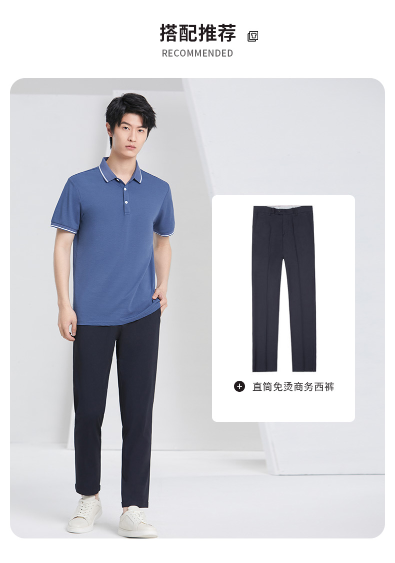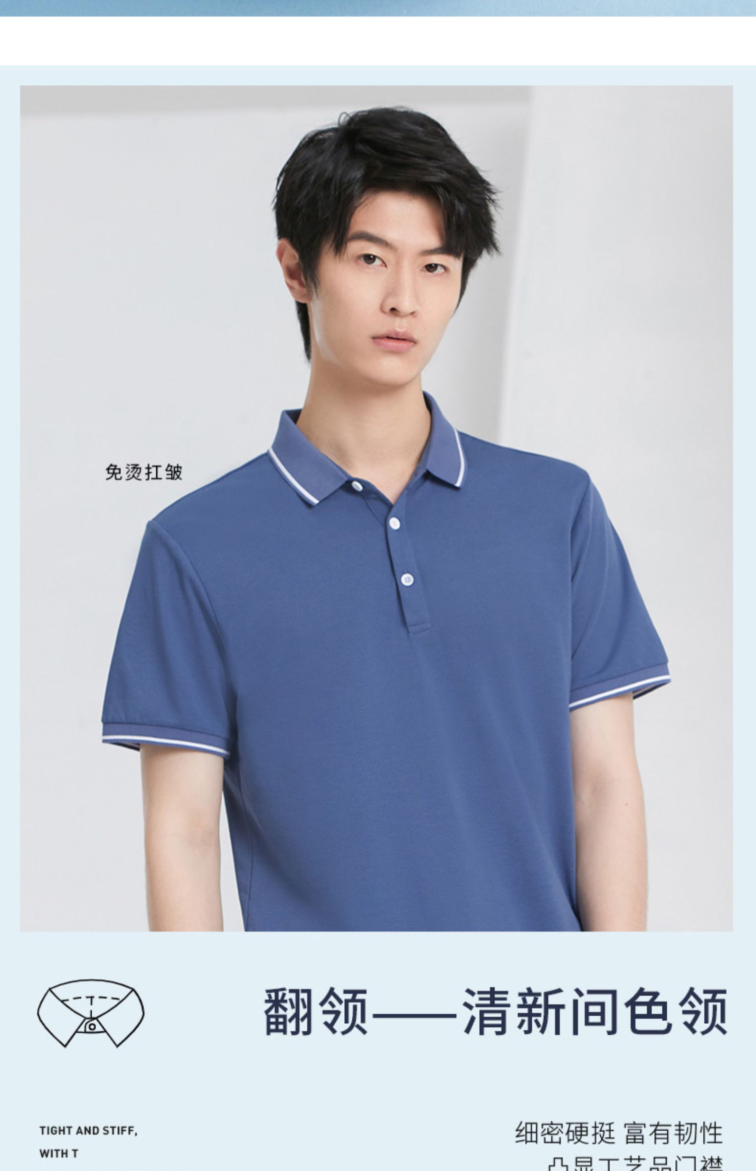 【薄款】圣得西男时尚纯色翻领polo衫2025秋新款棉质休闲短袖T恤