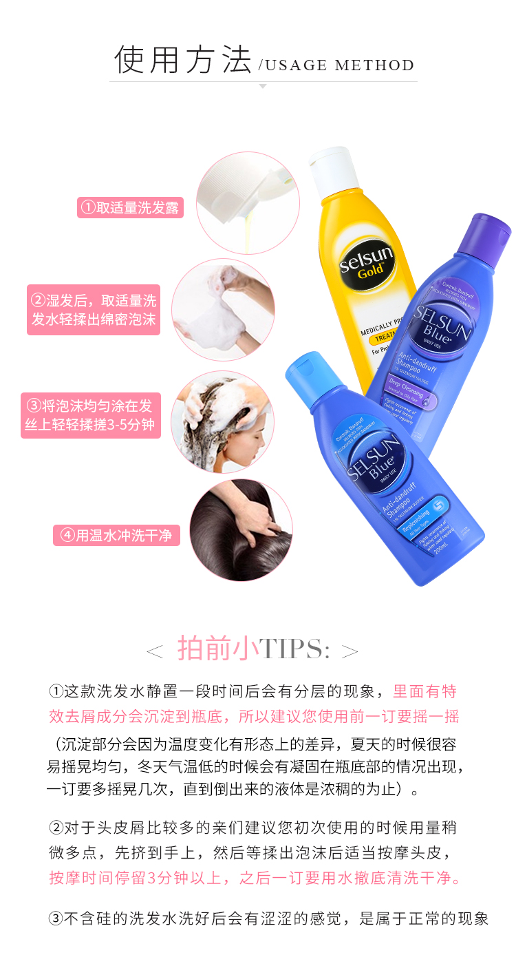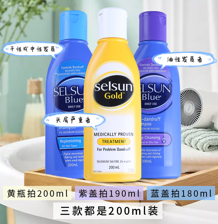 【香港直邮】澳大利亚Selsun 洗发水 黄色/紫色/蓝色 200ml