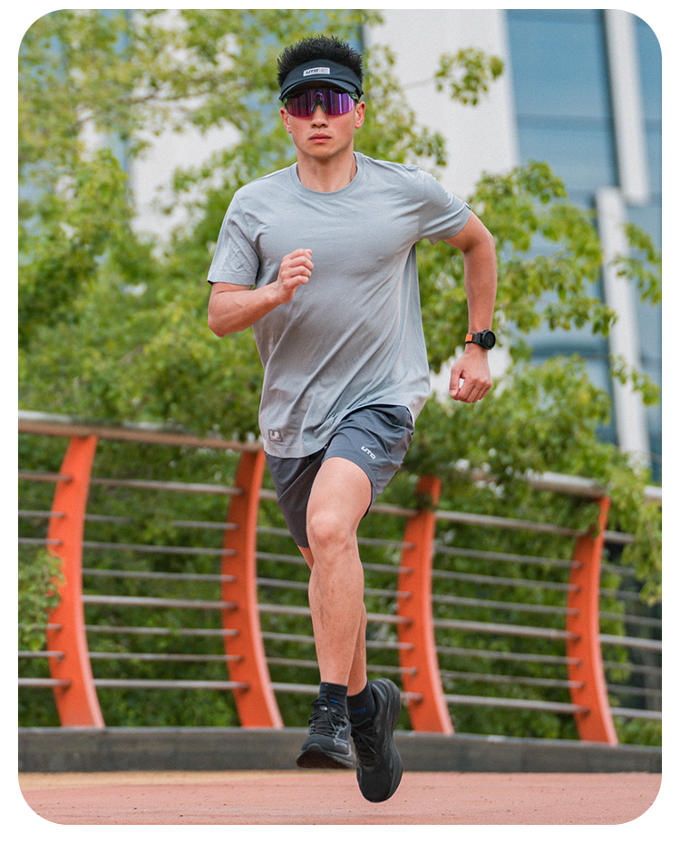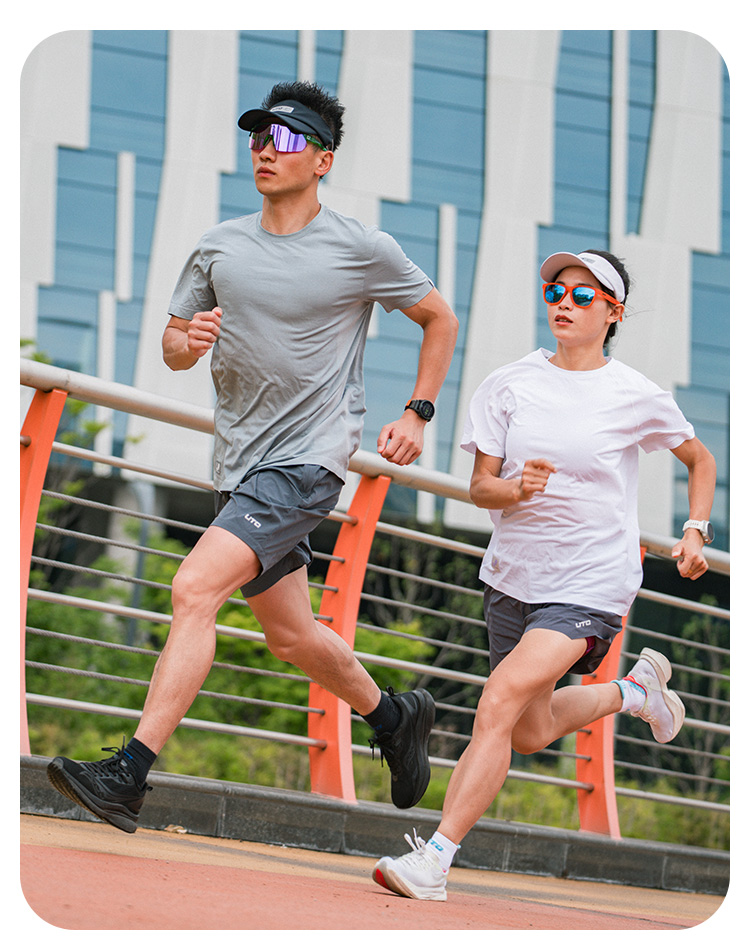 UTO/悠途圆领快干纯色短袖男女款薄款弹力跑步透气吸汗运动T恤