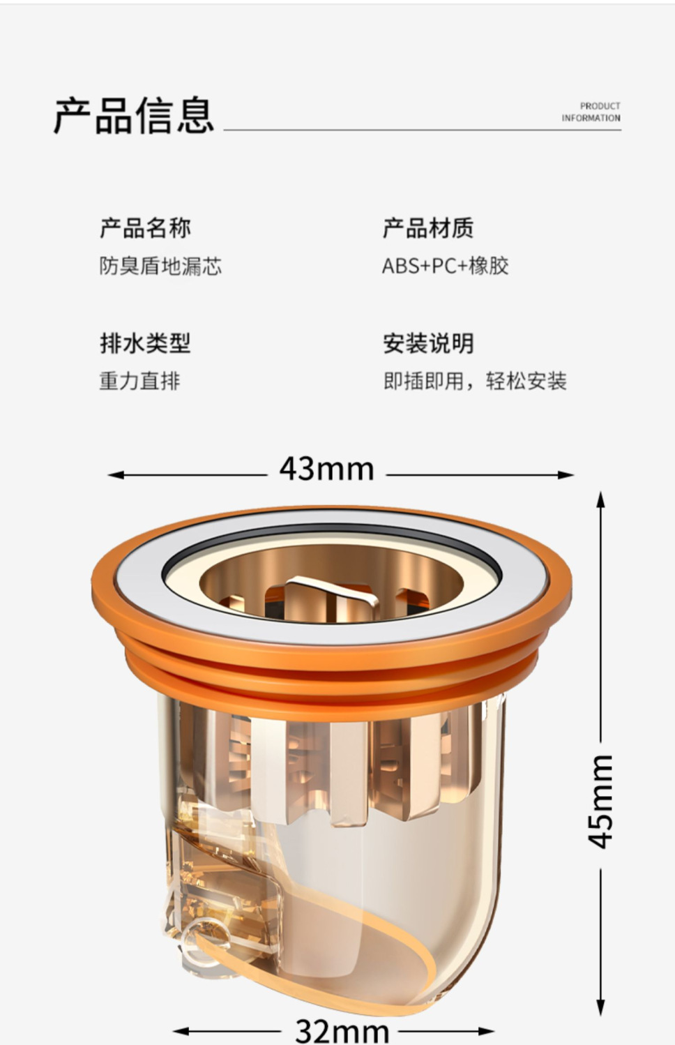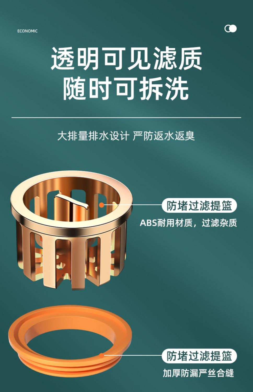 「拍1发2!9.9元到手2个」厨房地漏防臭器 卫生间下水道防臭堵口器密封内芯盖防虫居家日用通用厨房用品