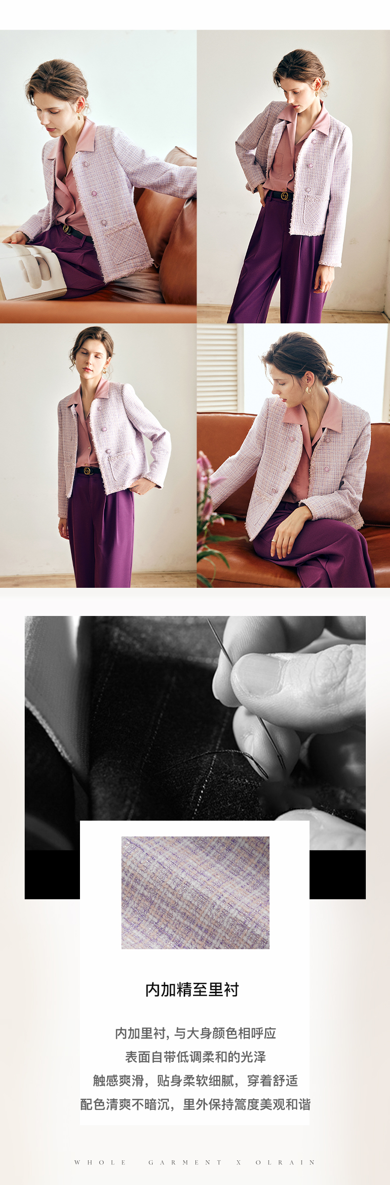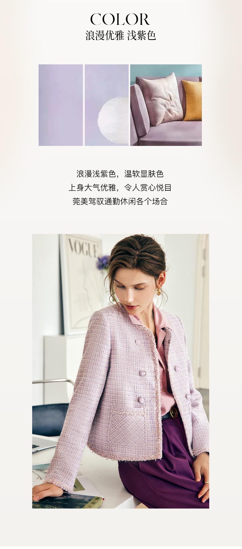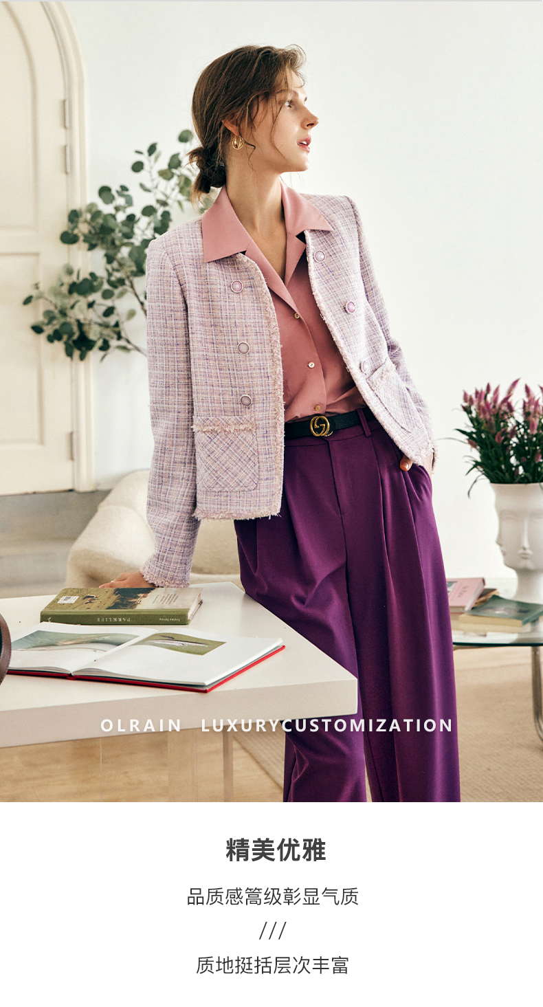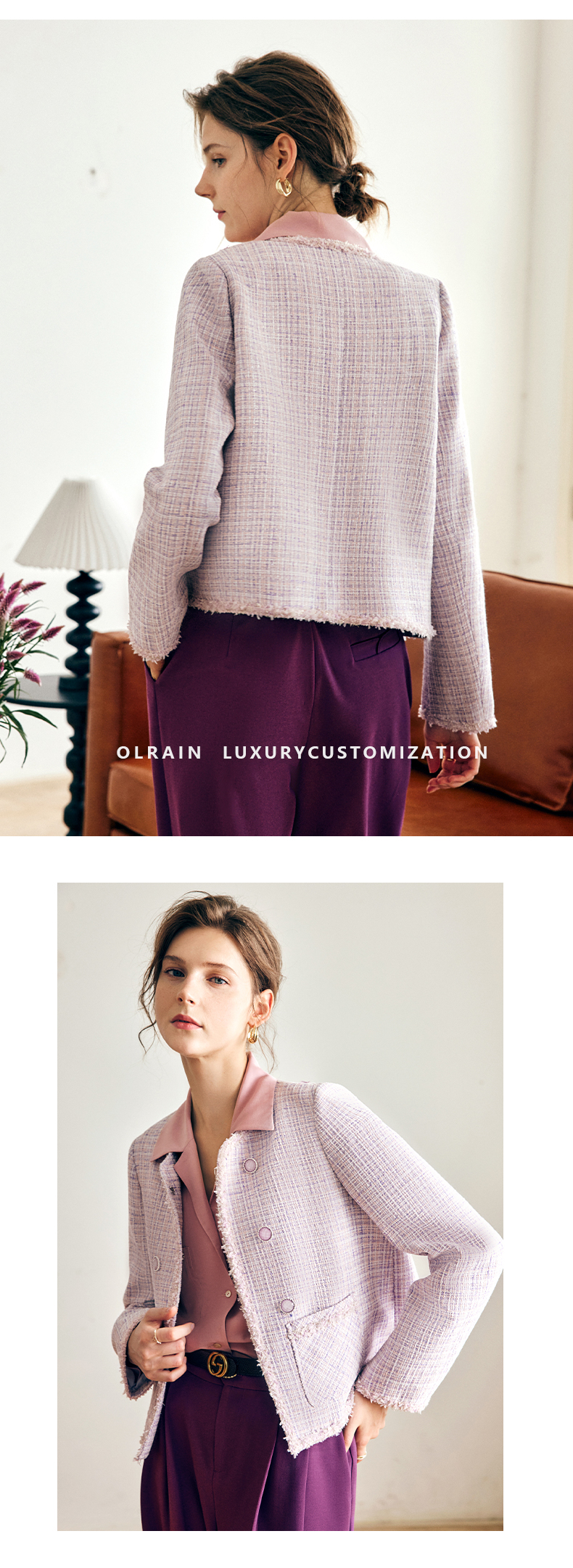 OLrain欧芮儿法式香芋紫短外套女早秋2022新款小香风温柔甜美上衣