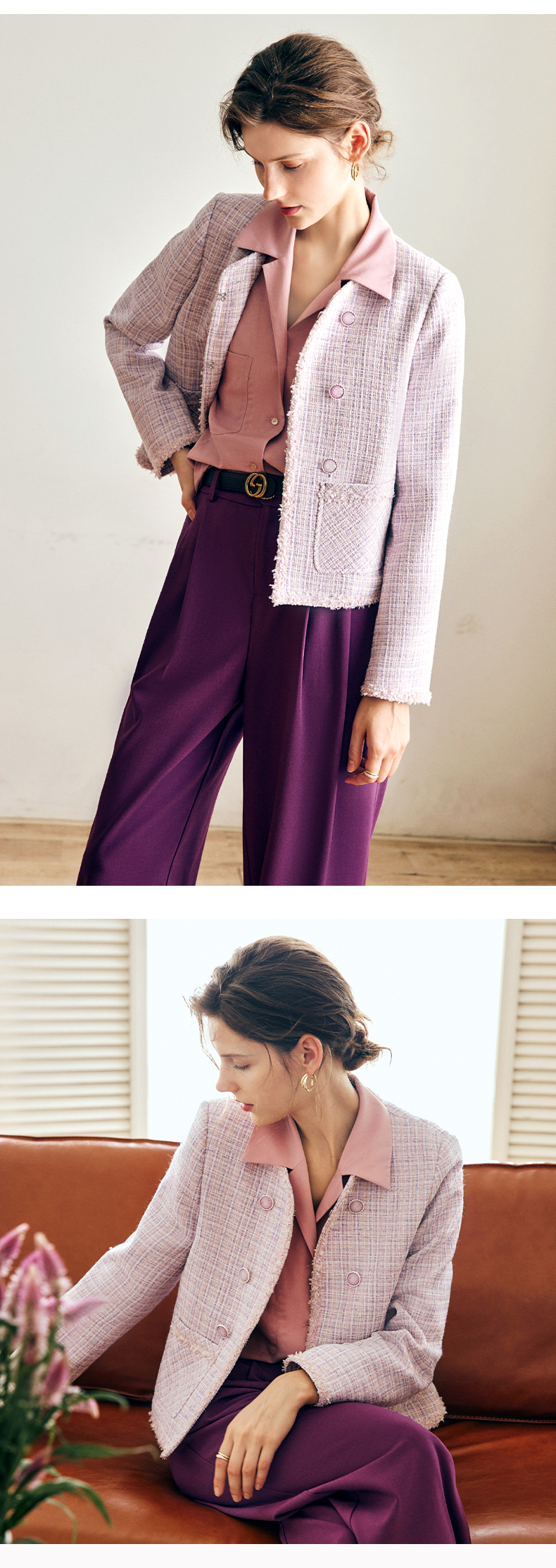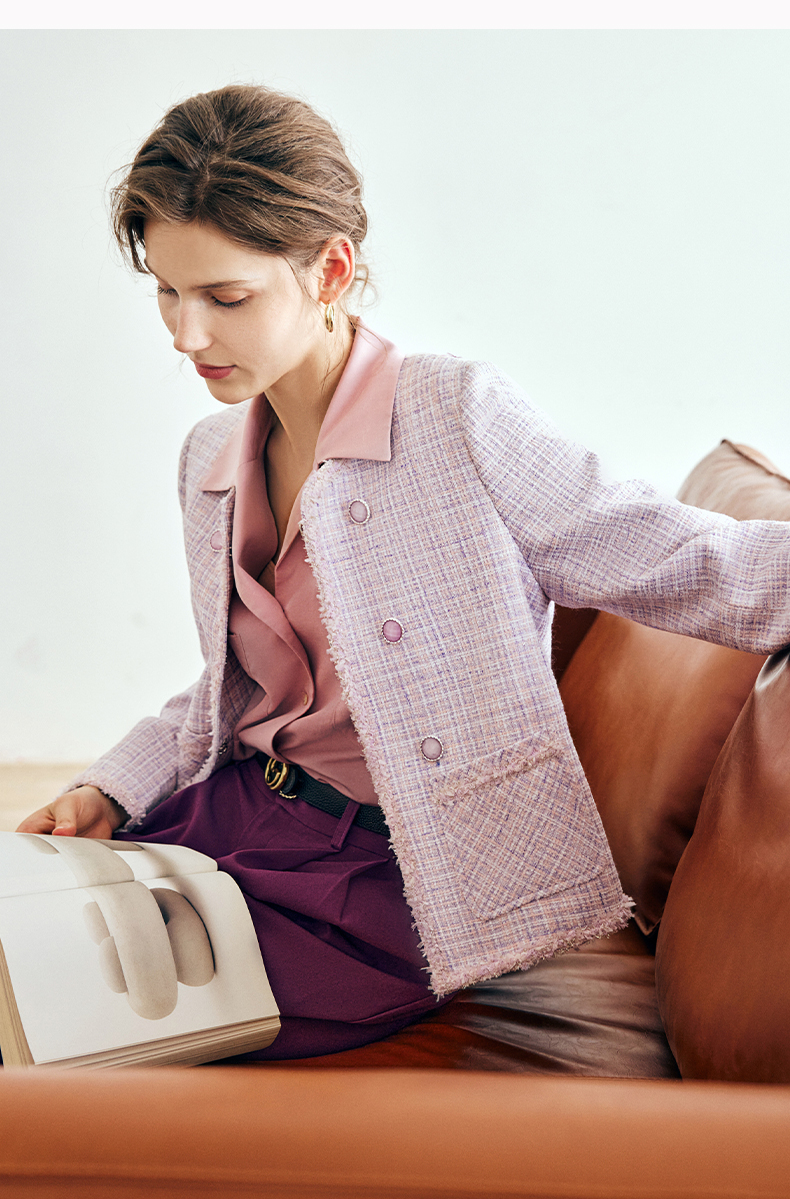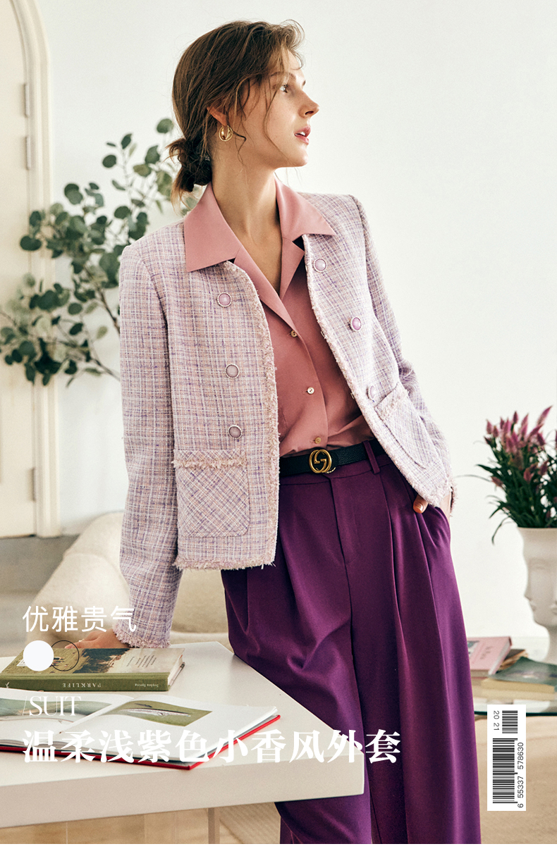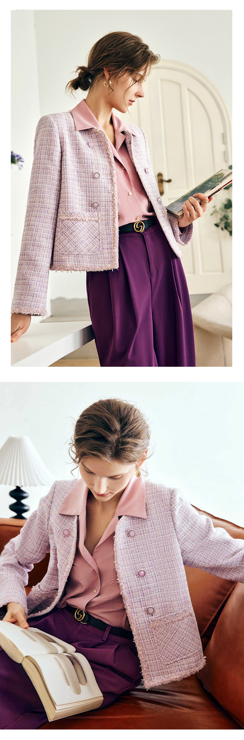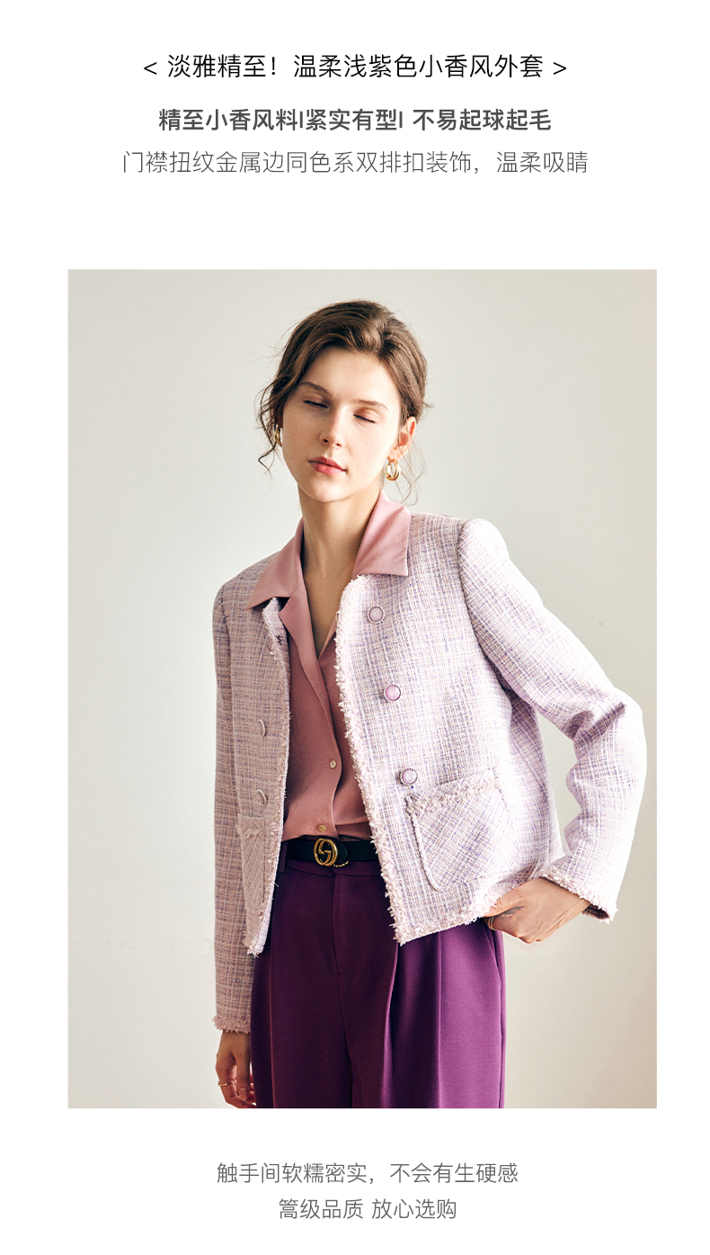 OLrain欧芮儿法式香芋紫短外套女早秋2022新款小香风温柔甜美上衣