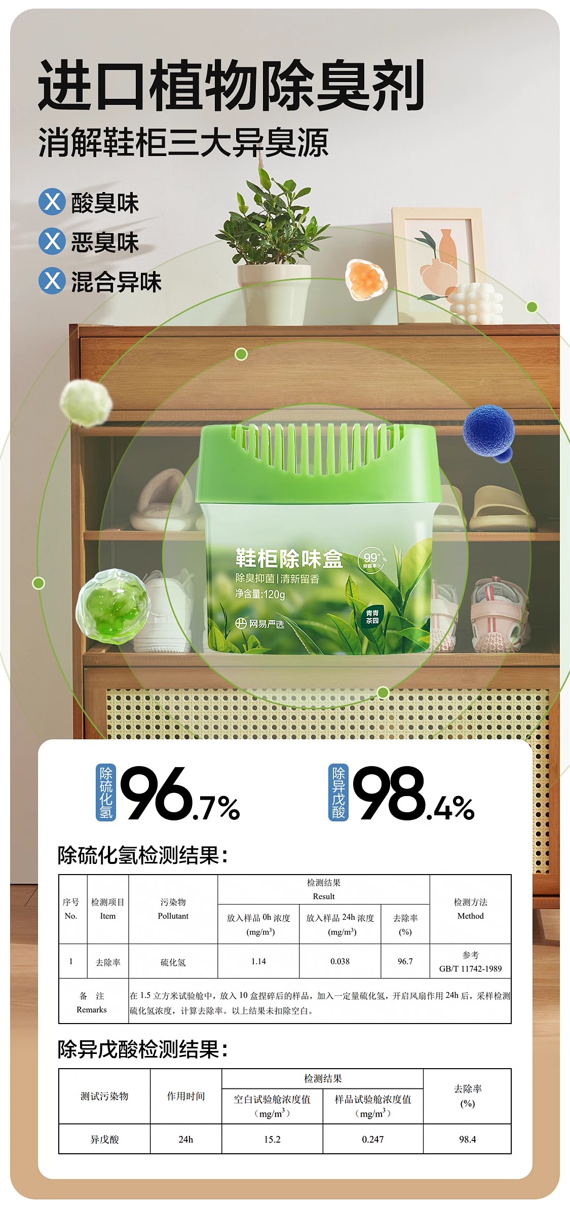 网易严选鞋柜除臭剂 杀菌除味剂除臭剂除味盒鞋子异味清新剂1.34