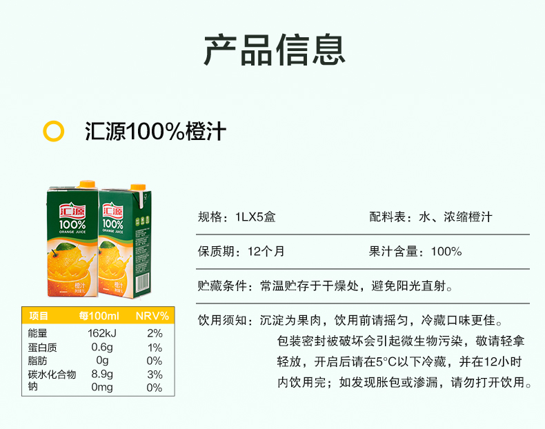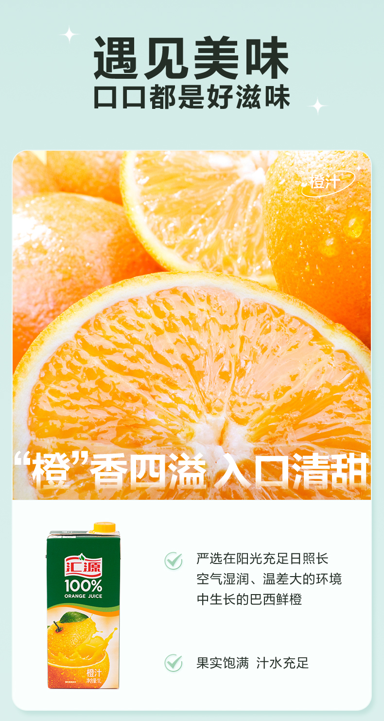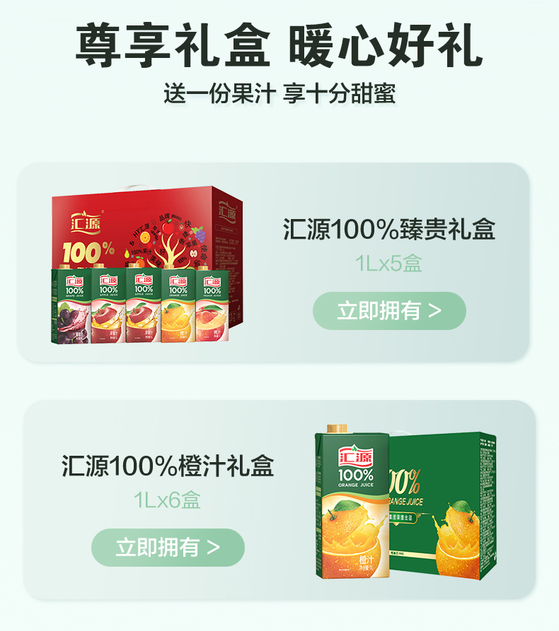 汇源果汁 100%橙汁1Lx5盒浓缩果汁饮料整箱礼盒装