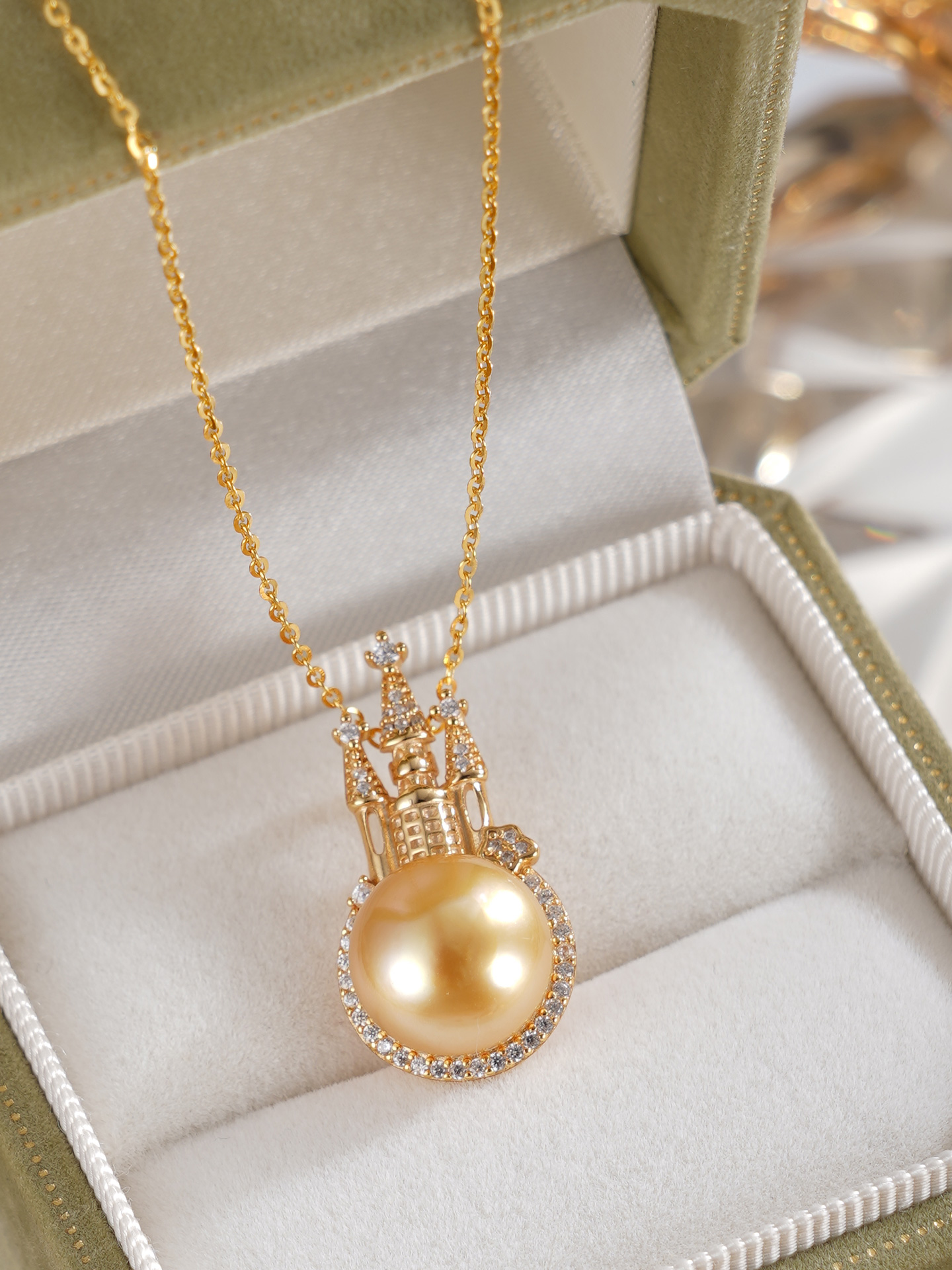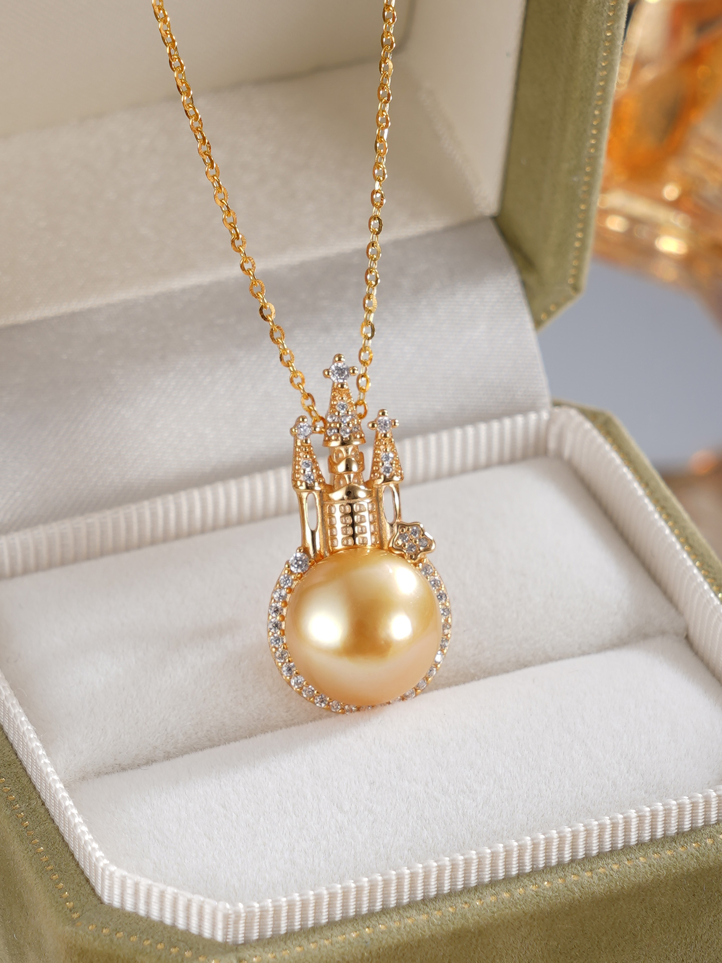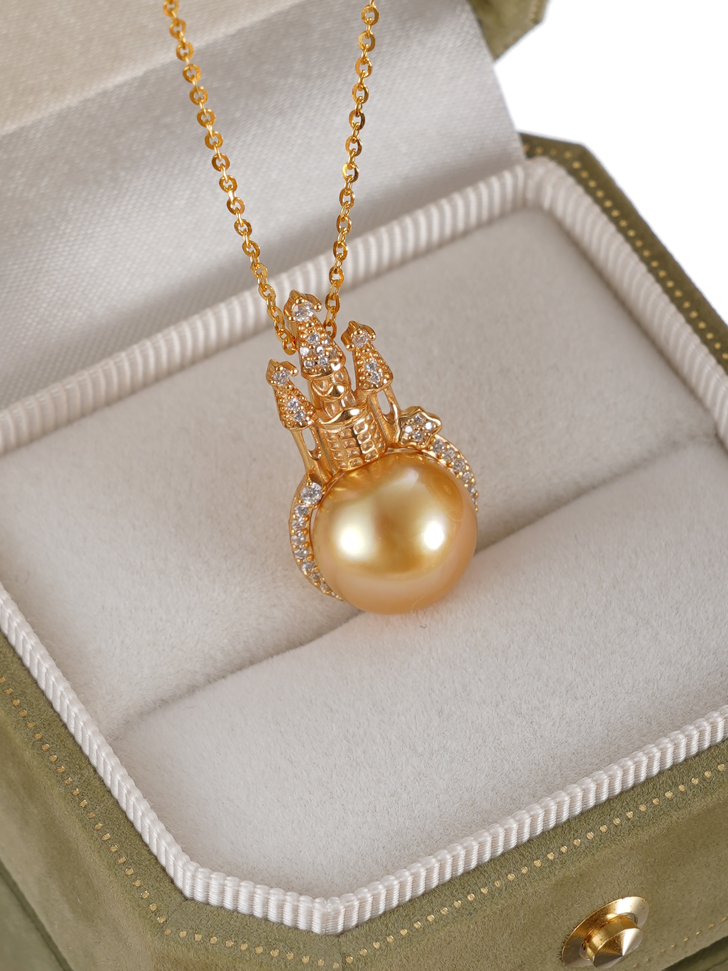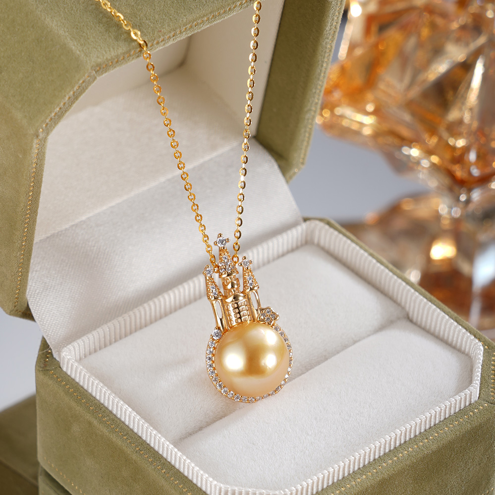子佩集【女王城堡】银S925珍珠惜王妃套链【HJYDZ005】11.5mm珠镀金城堡金色珠2601