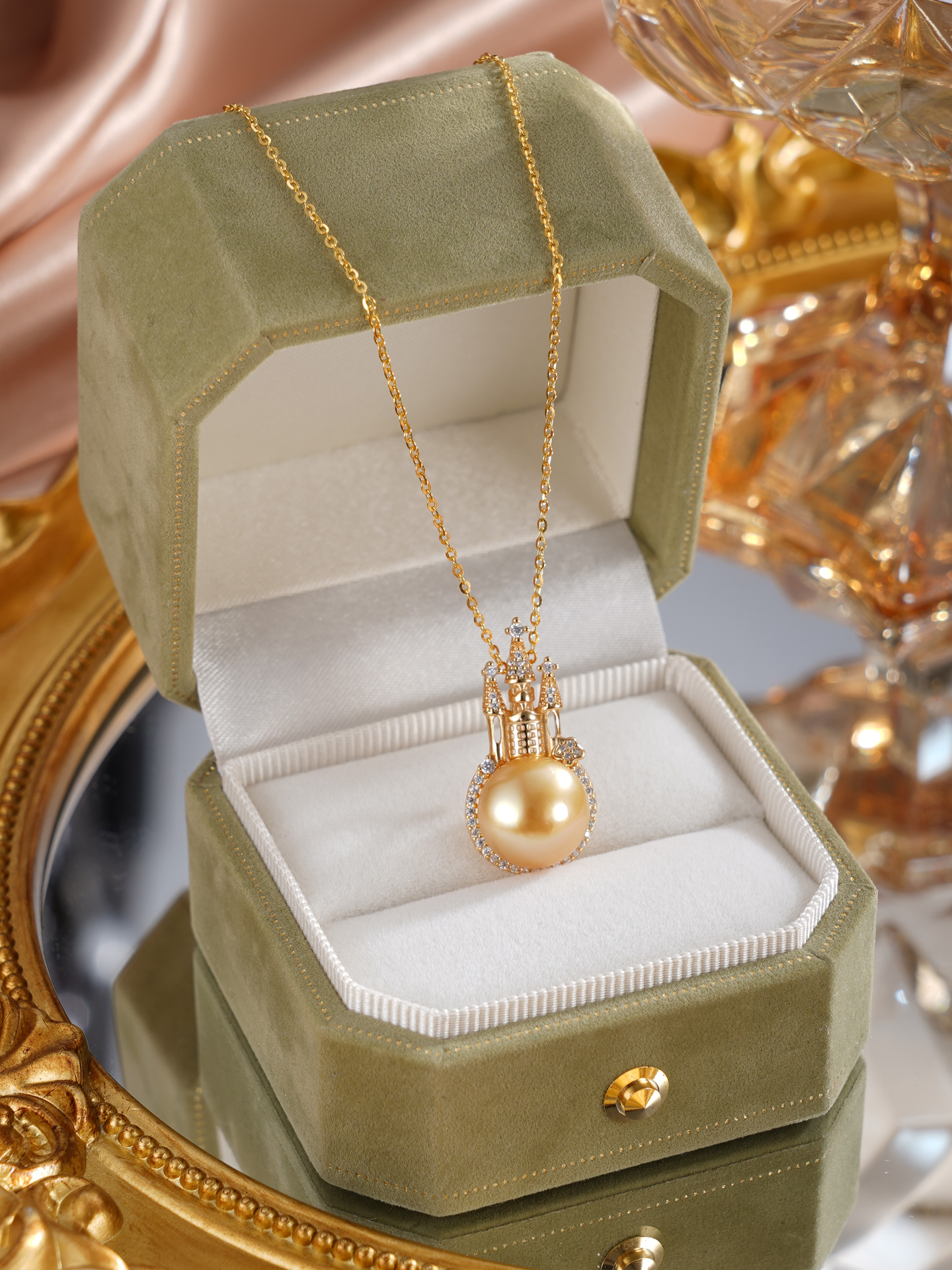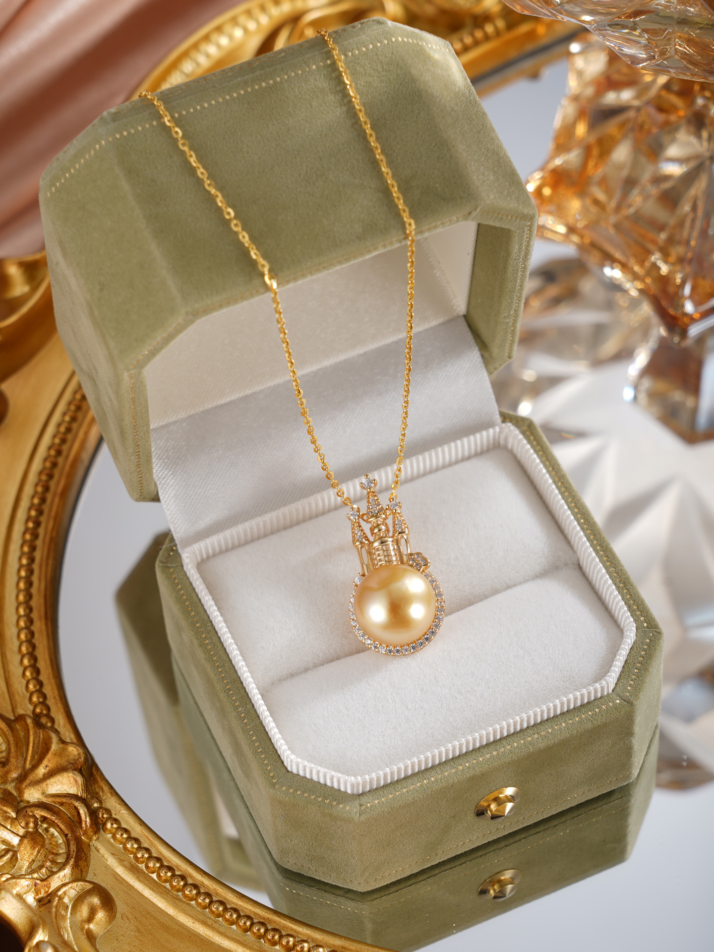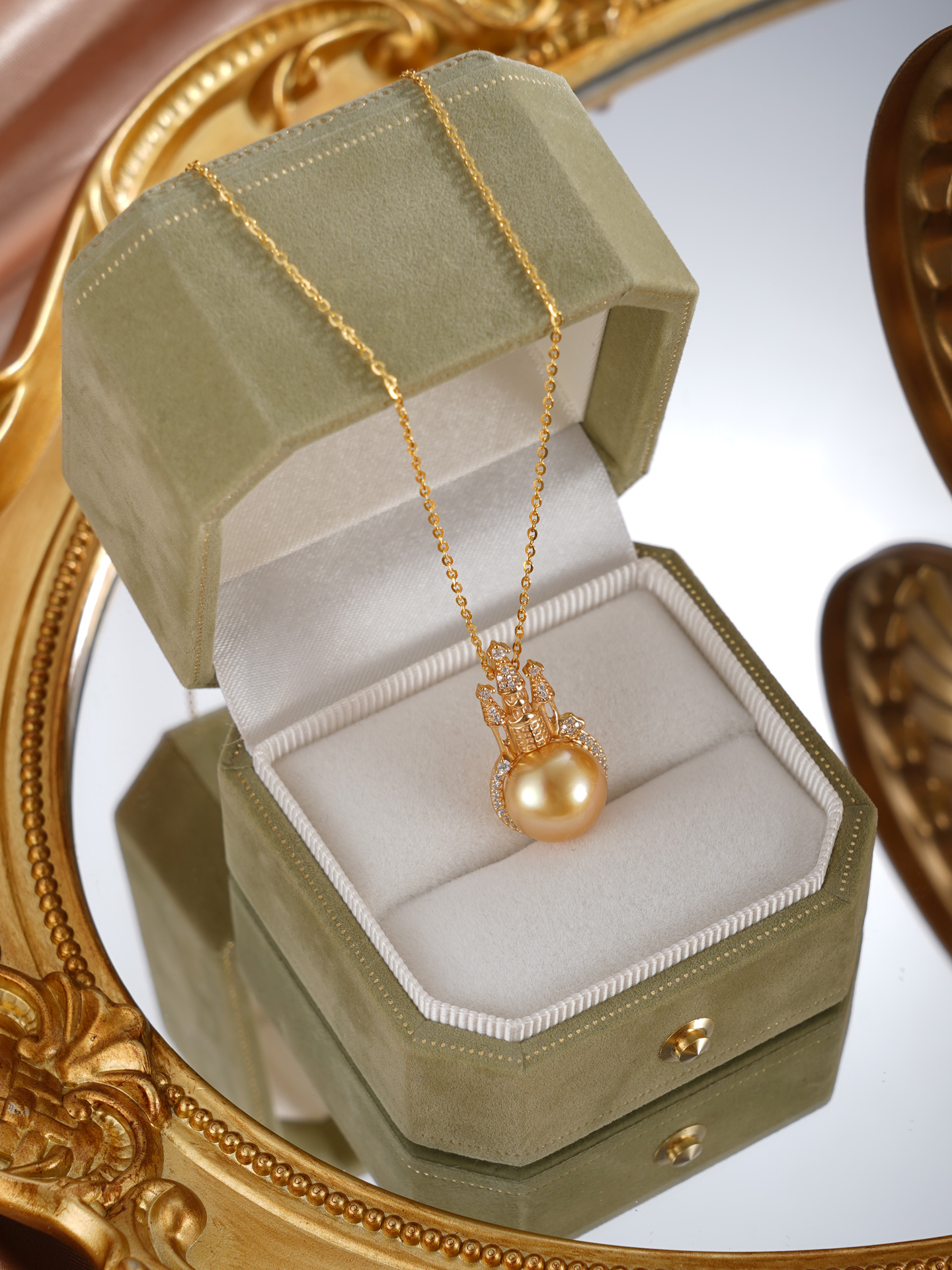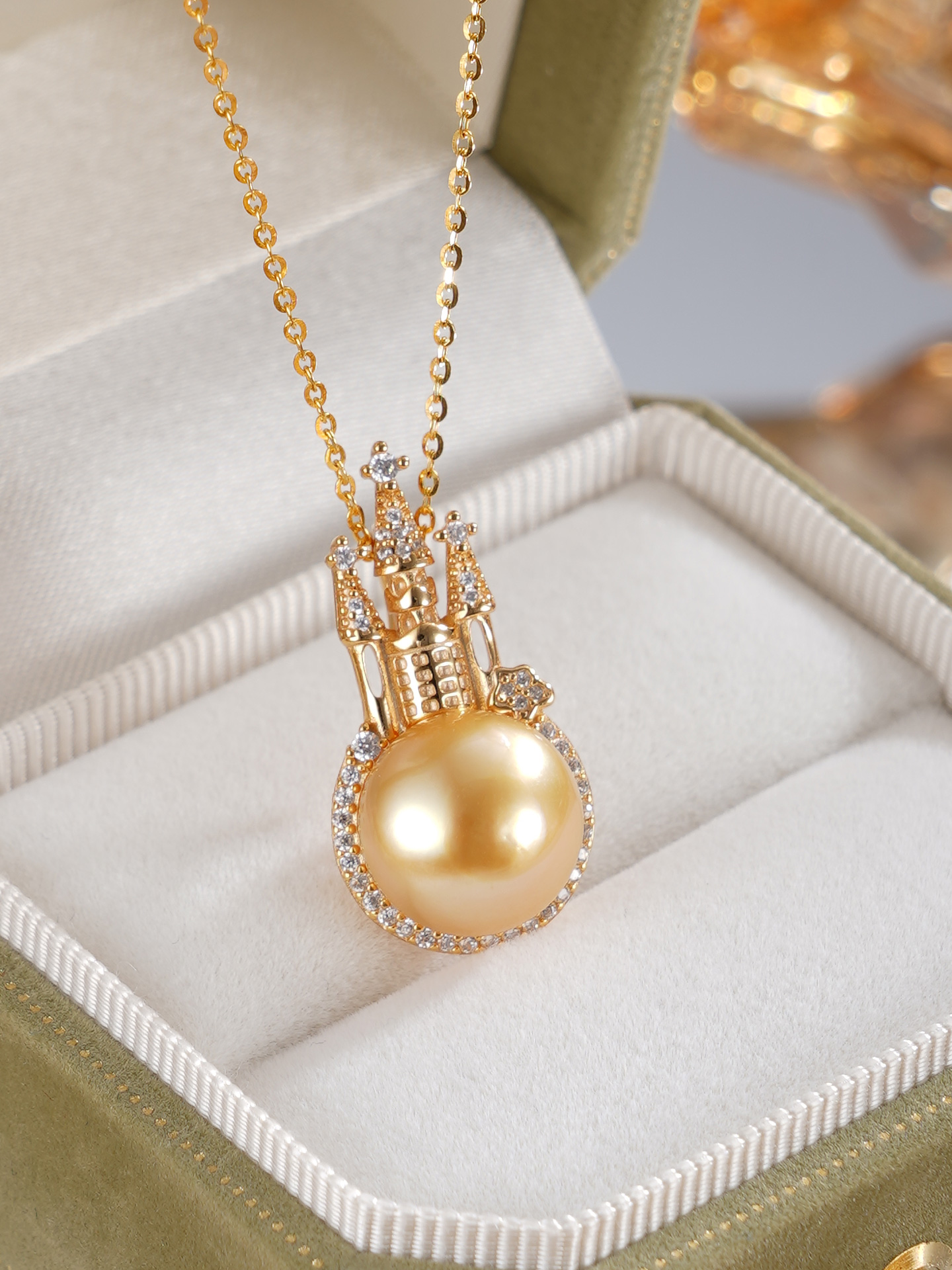 子佩集【女王城堡】银S925珍珠惜王妃套链【HJYDZ005】11.5mm珠镀金城堡金色珠2601