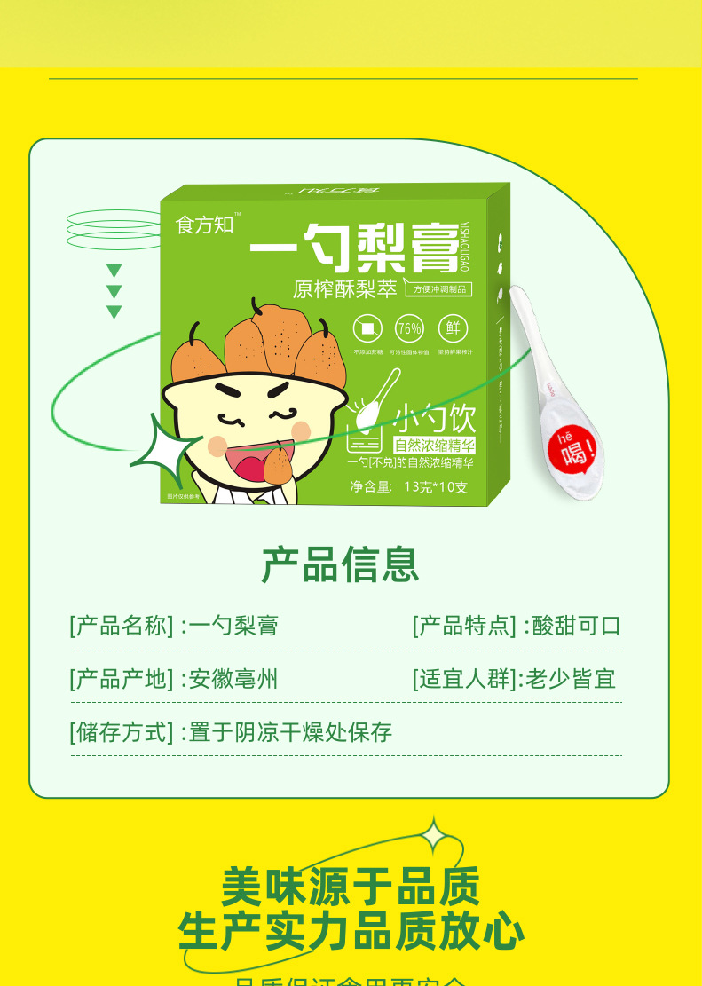 [买2送1]原榨砀山梨膏小勺酥梨枇杷罗汉果营养冲饮干净便携10支装 一勺梨膏