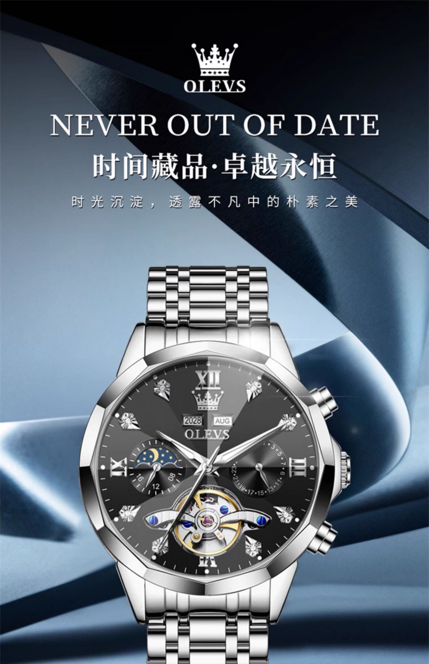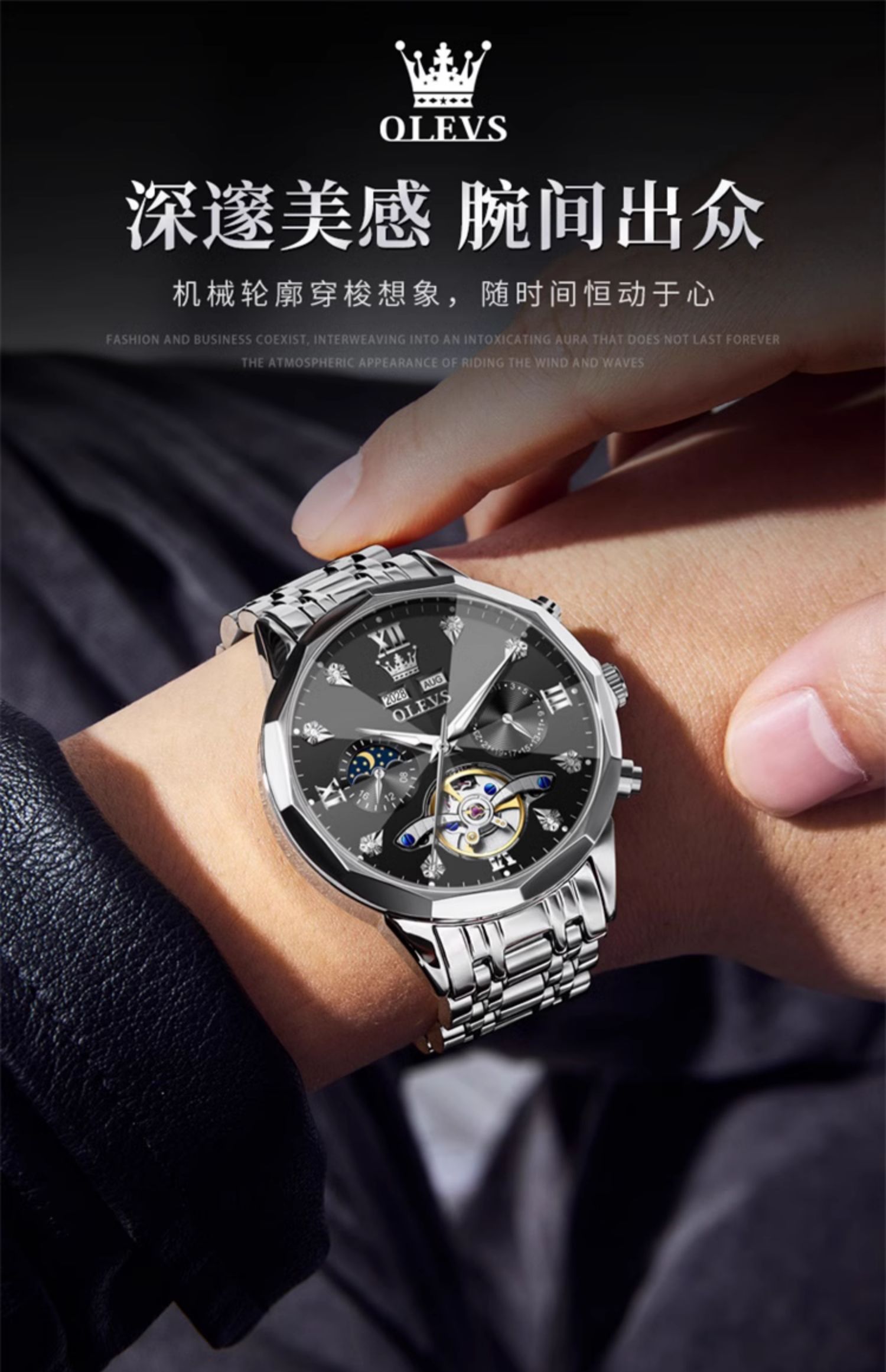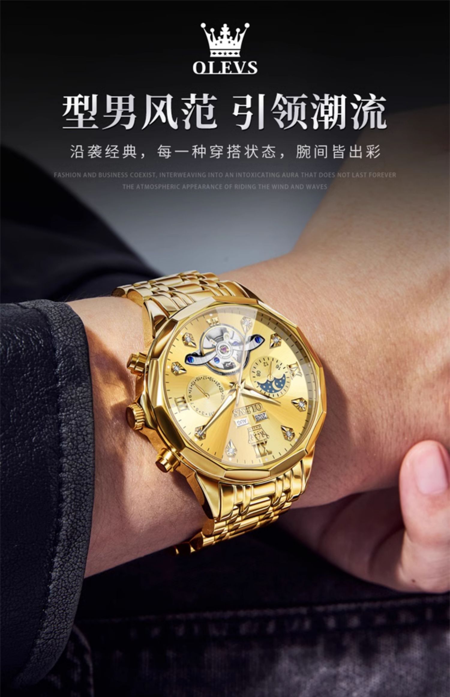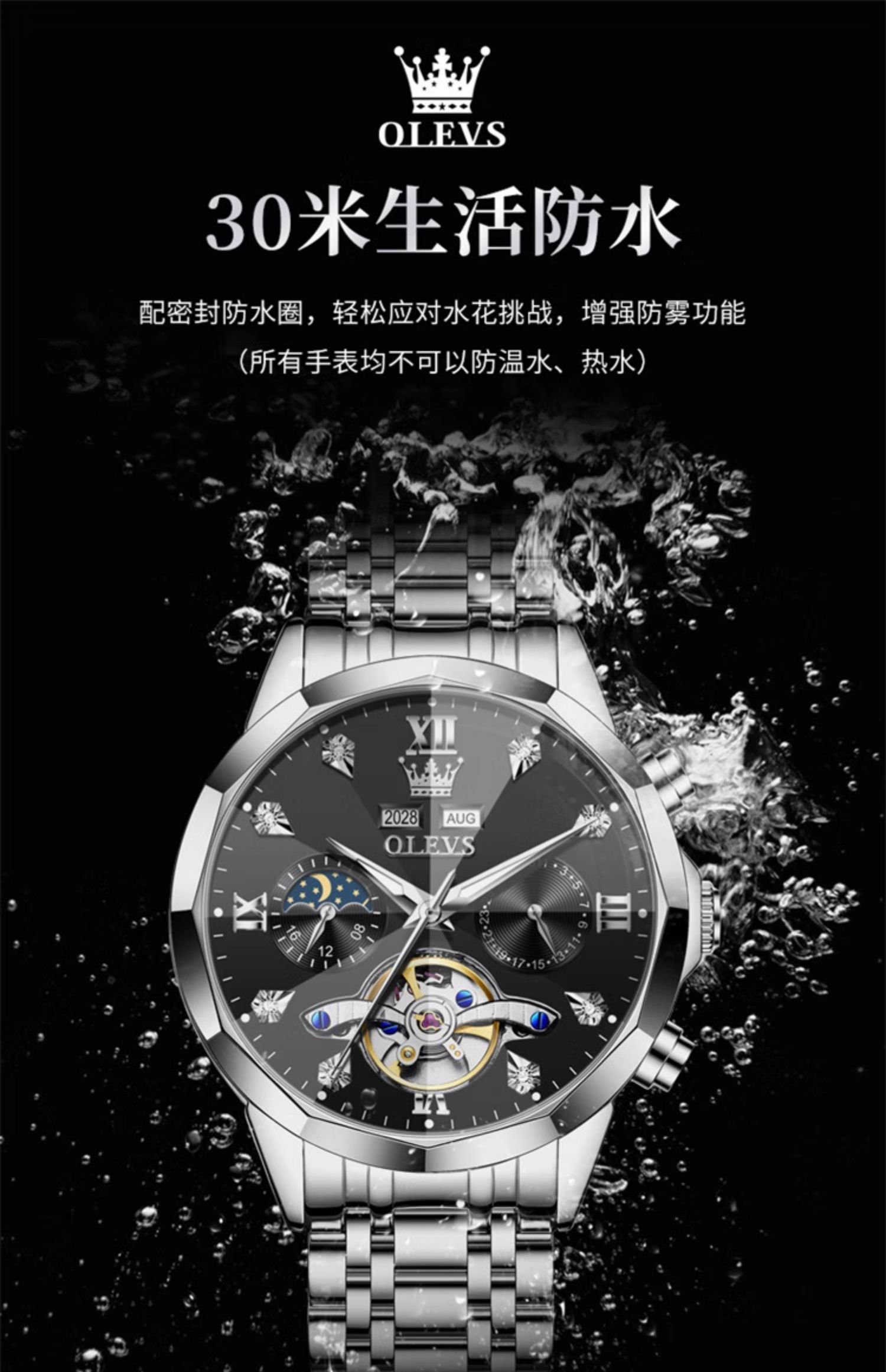 欧利时OLEVS 机械表 6621系列 瑞士认证品牌多功能全自动夜光防水机械手表