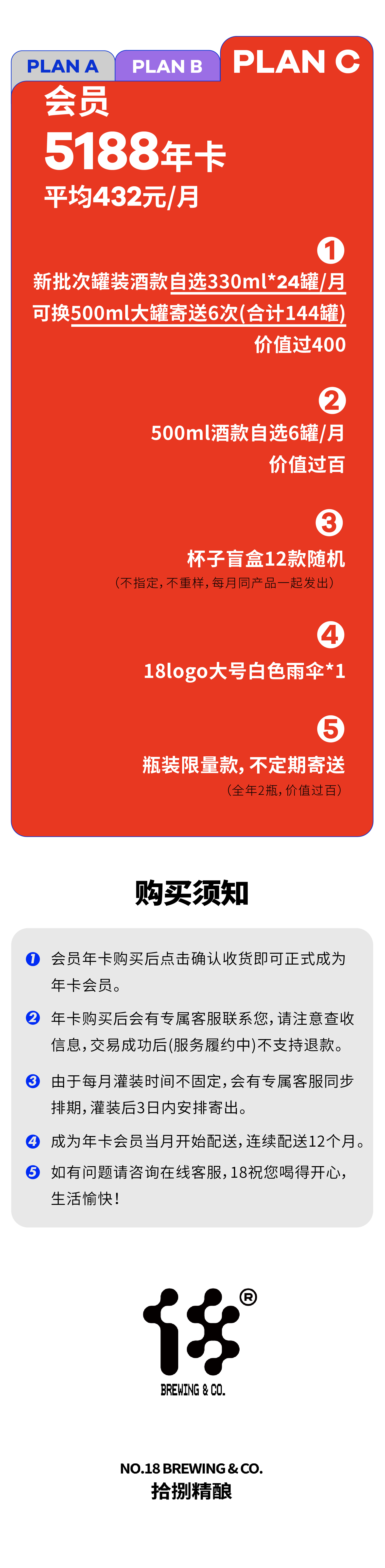 【喝酒计划】拾捌精酿会员年卡 12个月12次寄送服务 18天保鲜