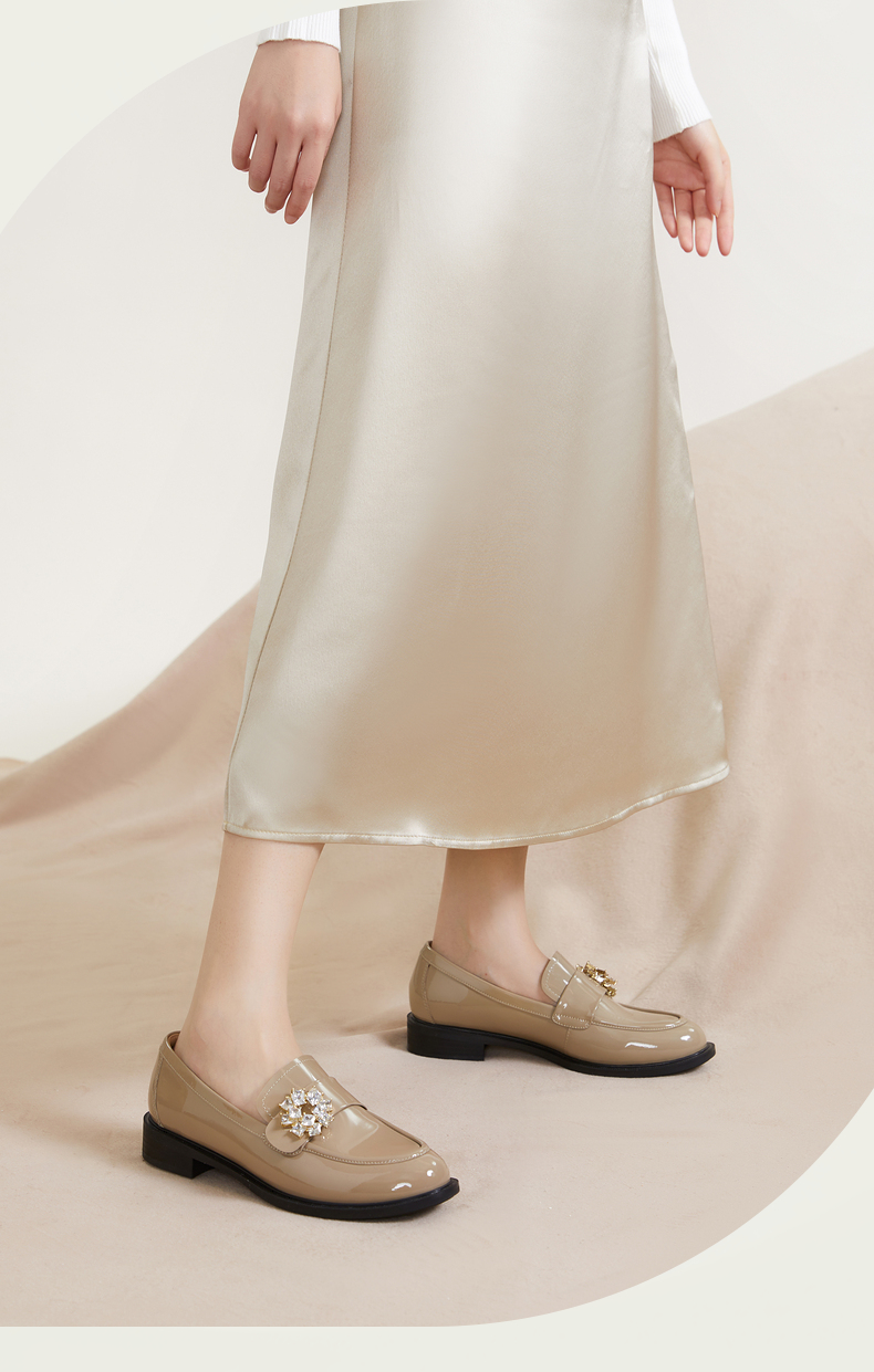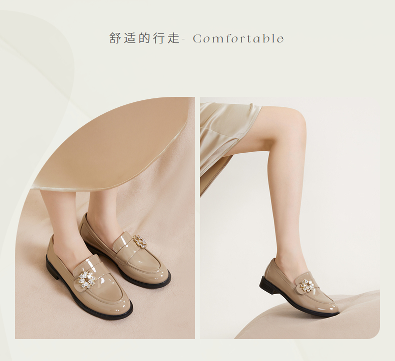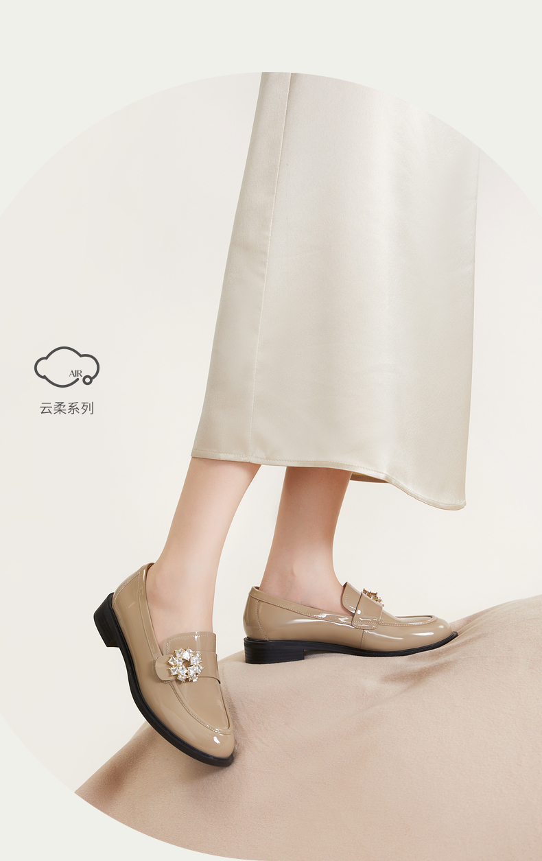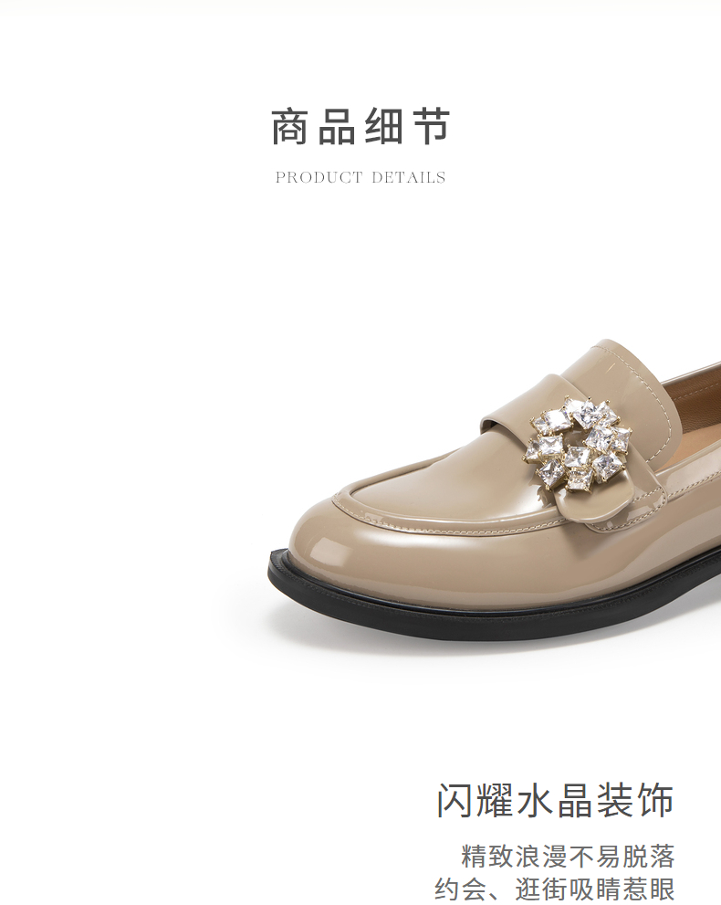 千百度26年新款厚底手抓皮乐福鞋女新款增高英伦风小皮鞋深口单鞋A26152808