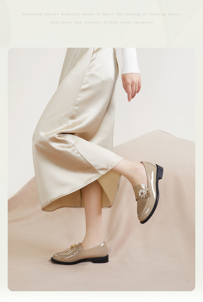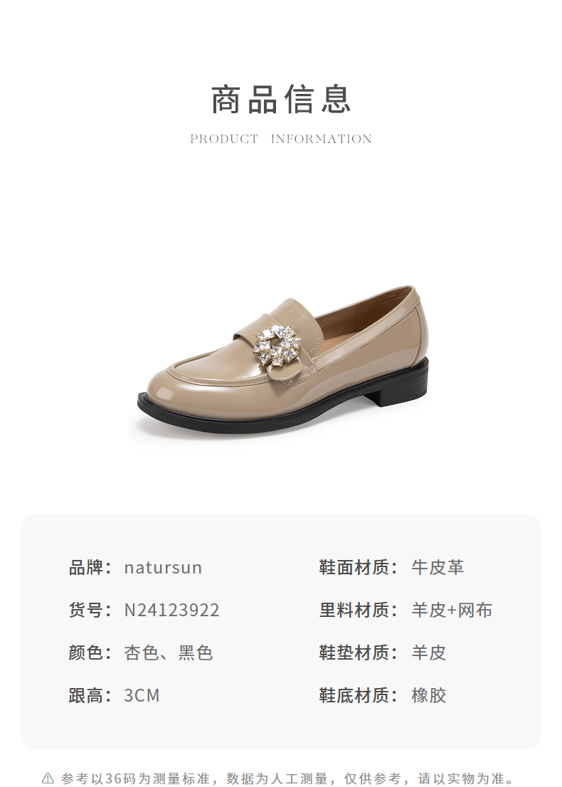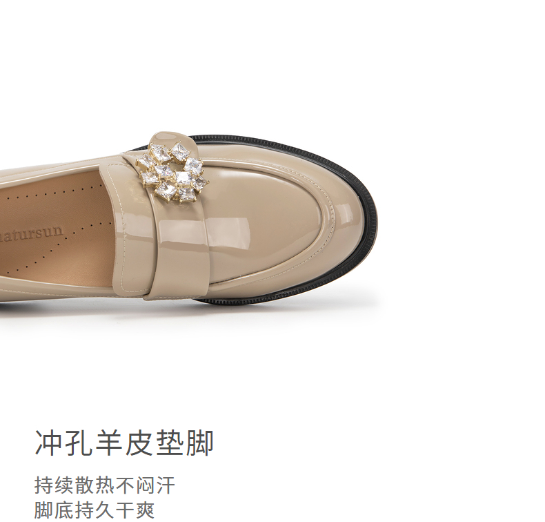 natursun乐福鞋女秋季厚底增高法式粗跟单鞋女鞋N24123922