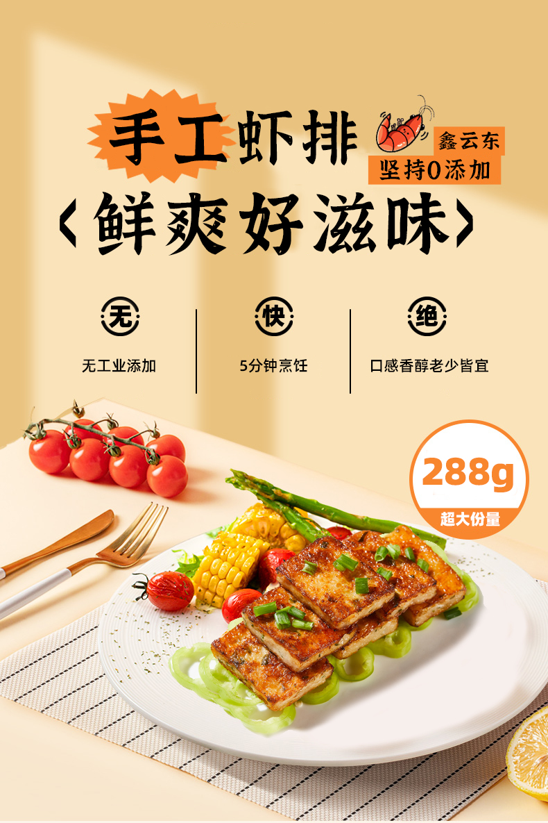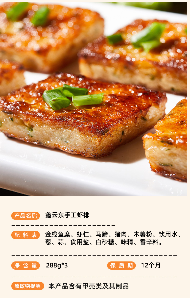 鑫云东手工虾排(288g/包)生产日期: 12月