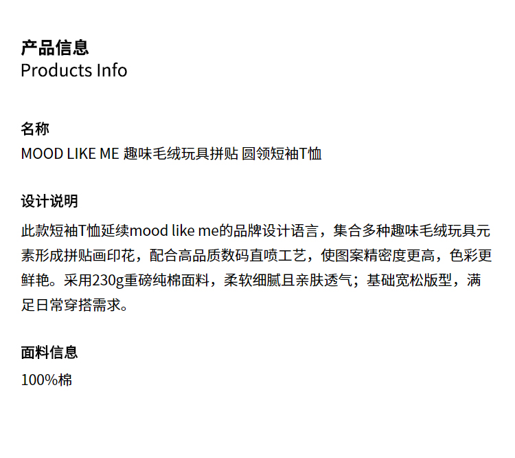 MOOD LIKE ME/MTX2363/毛绒玩具拼贴 圆领短袖T恤