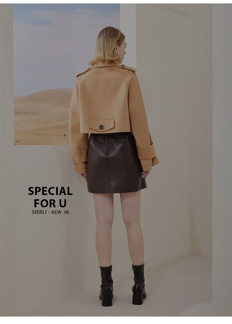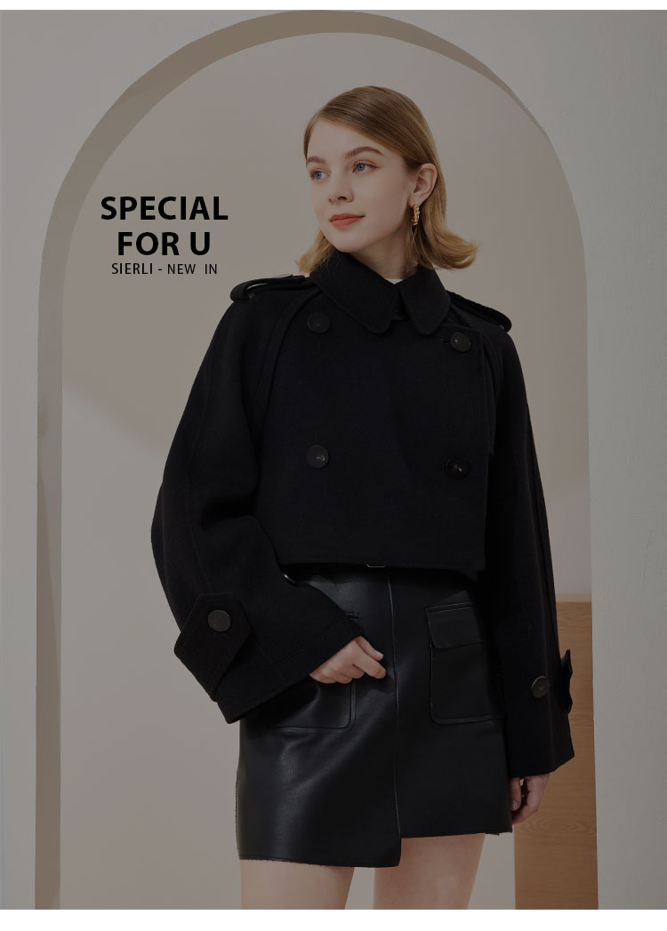 [MD906]斯尔丽瑟俪2022年冬上新短款风衣式大衣外套