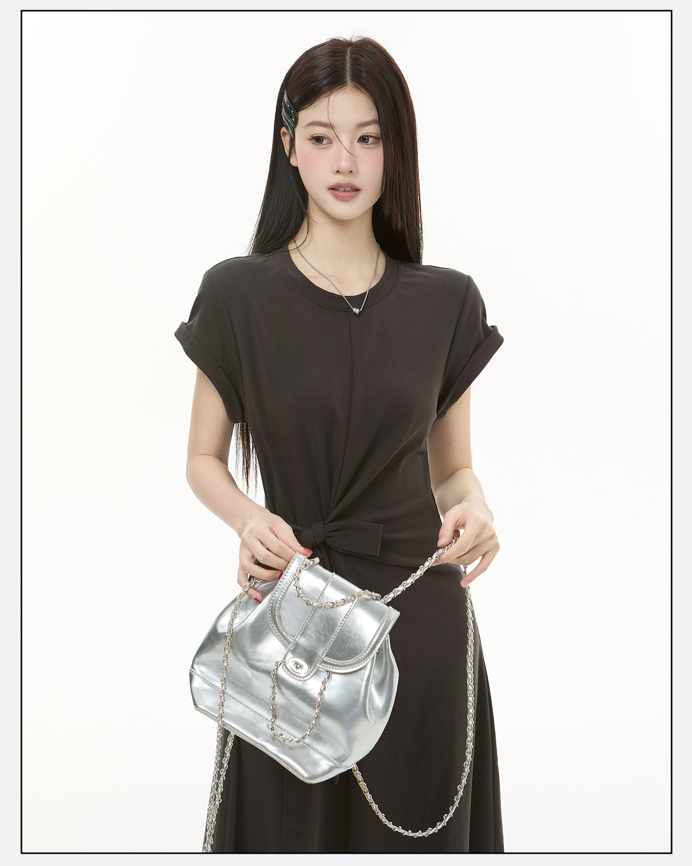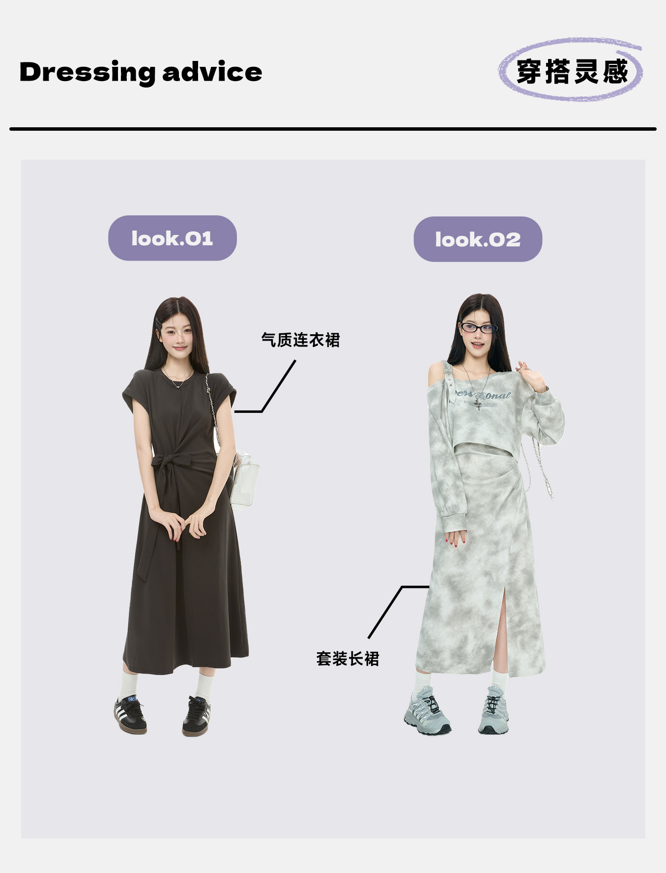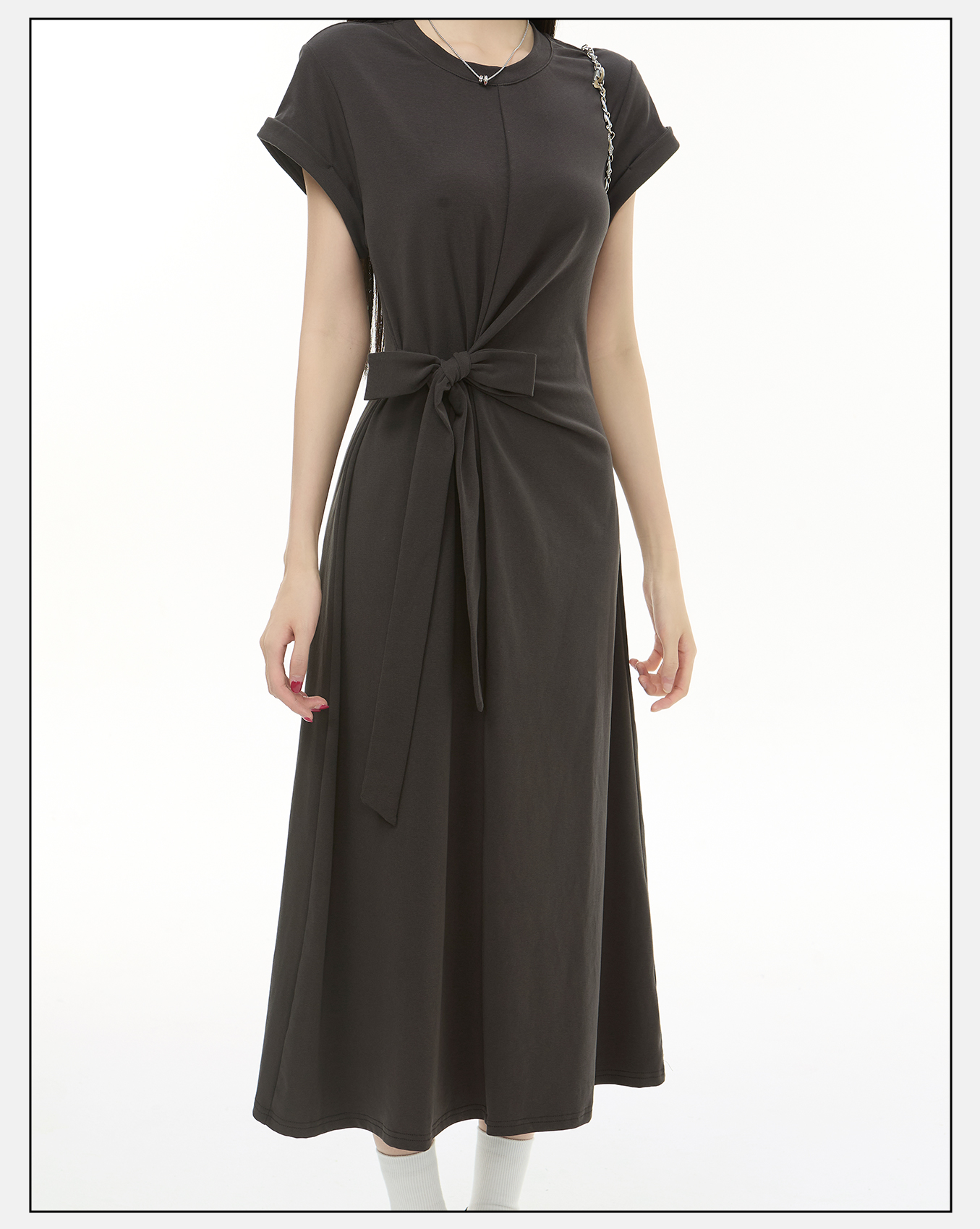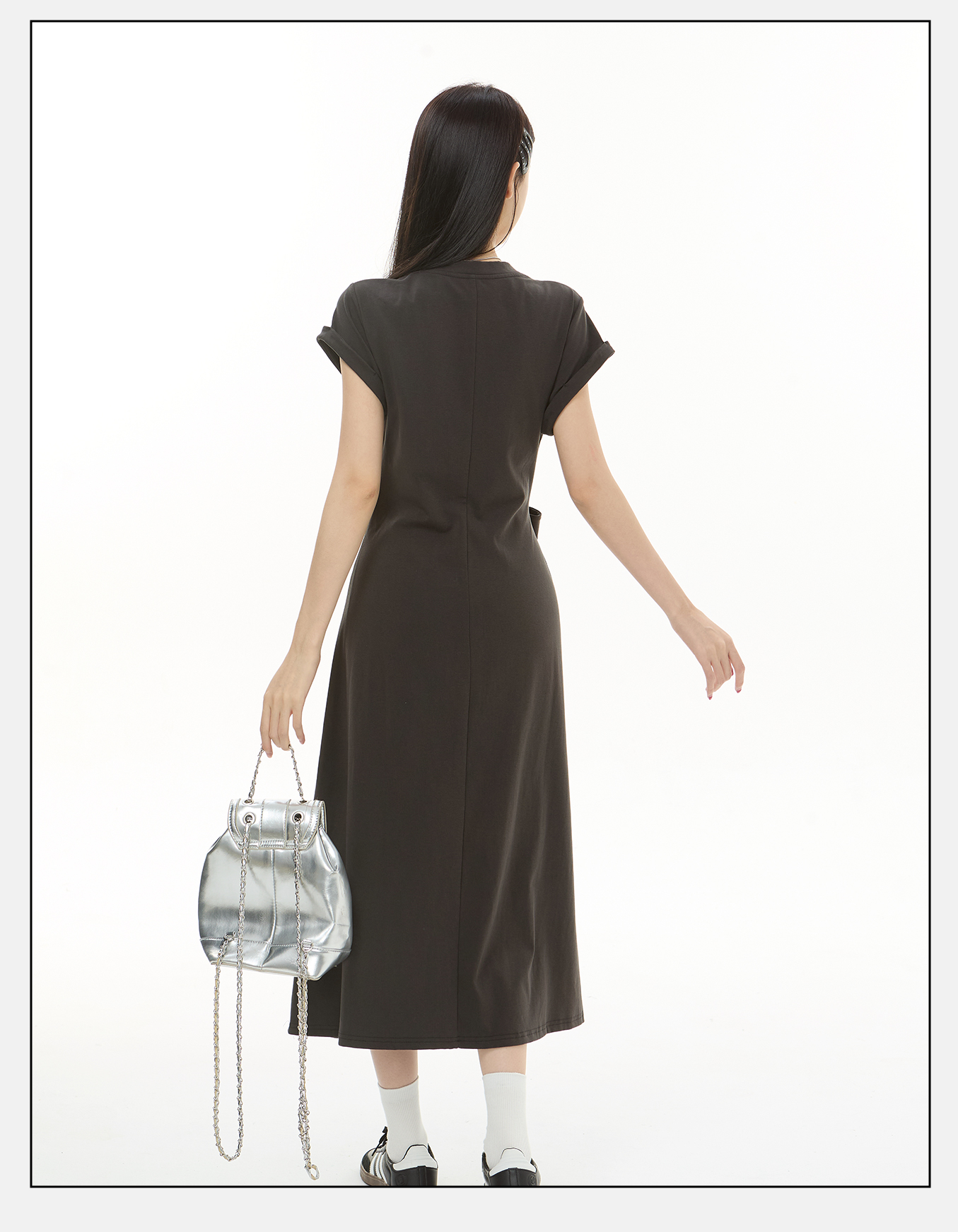 P&X设计师女装2025秋季短袖花苞袖针织连衣长裙825308103 深灰