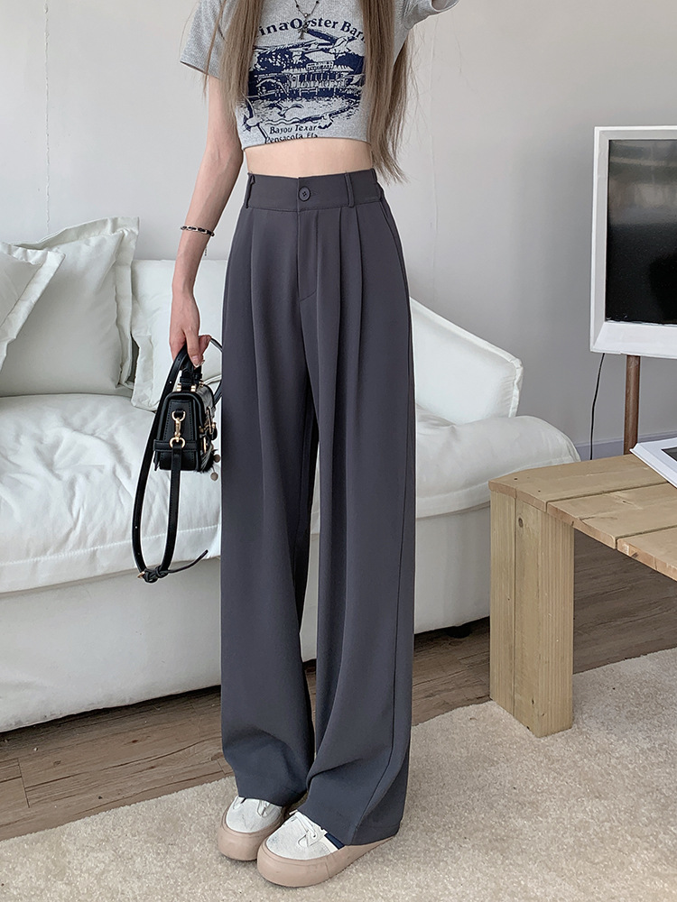 【超显腿长!高腰垂感西装裤】显瘦百搭,不挑身材,视觉增高!黑色长裤松紧腰显瘦休闲裤夏季裤子宽松阔腿裤女潮★美物社