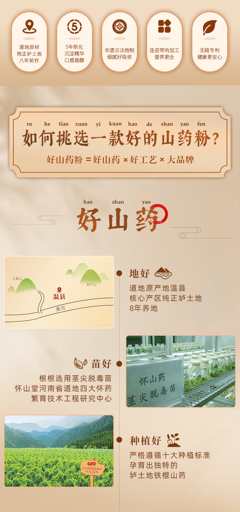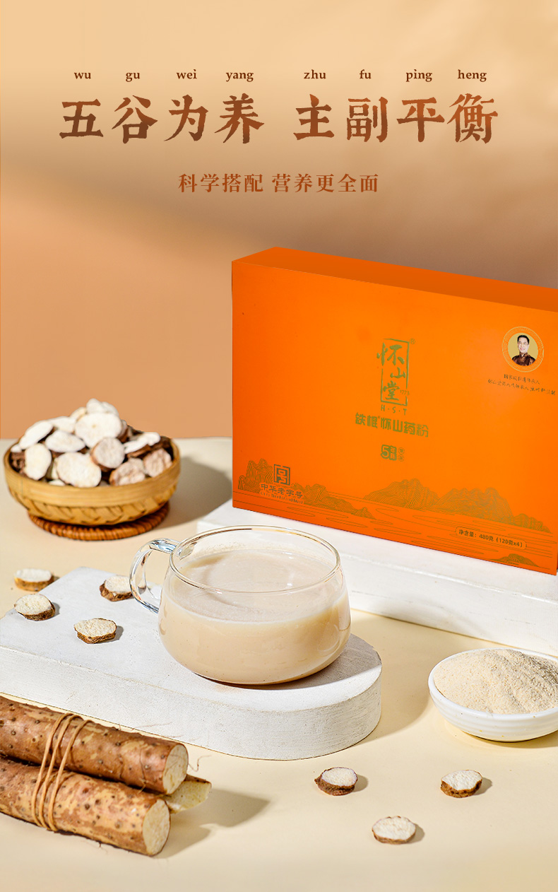 怀山堂 五年陈铁棍山药粉580g温县垆土铁棍怀山药熟粉中华老字号非遗山药粉呵护脾胃(年卡12罐)