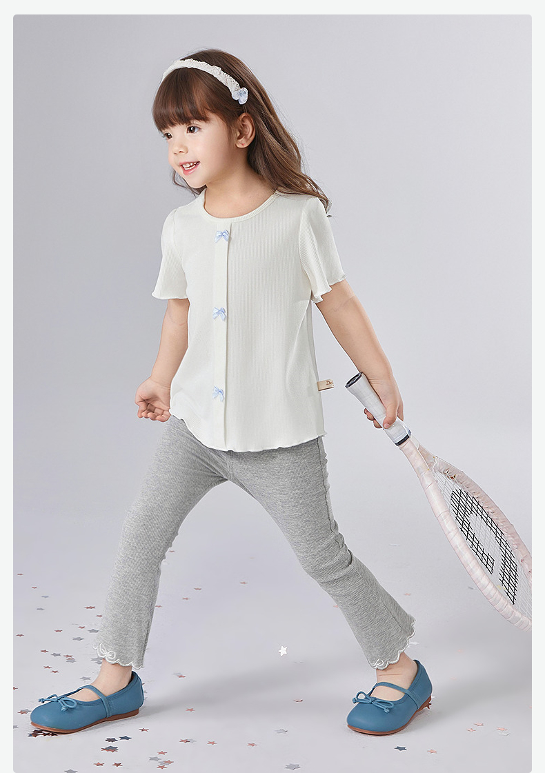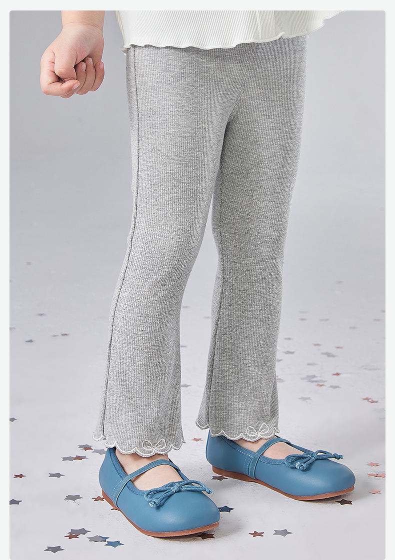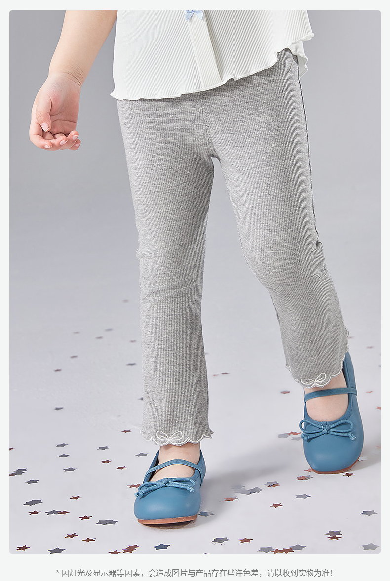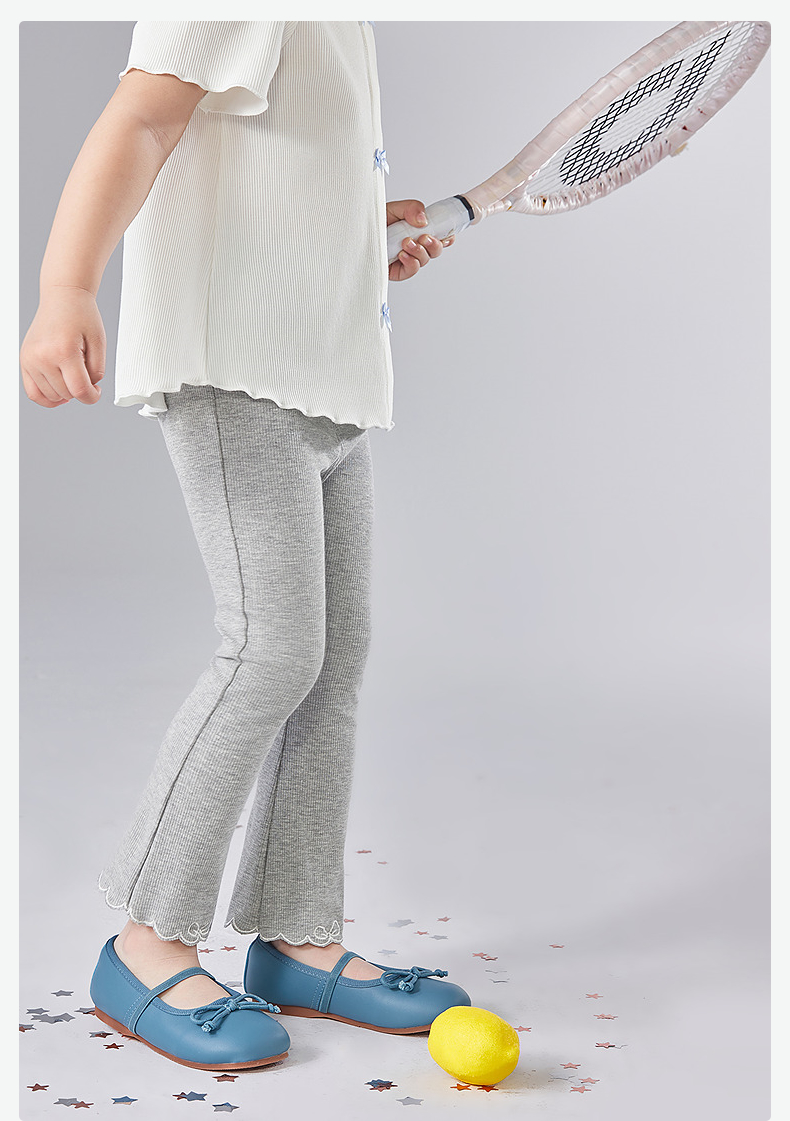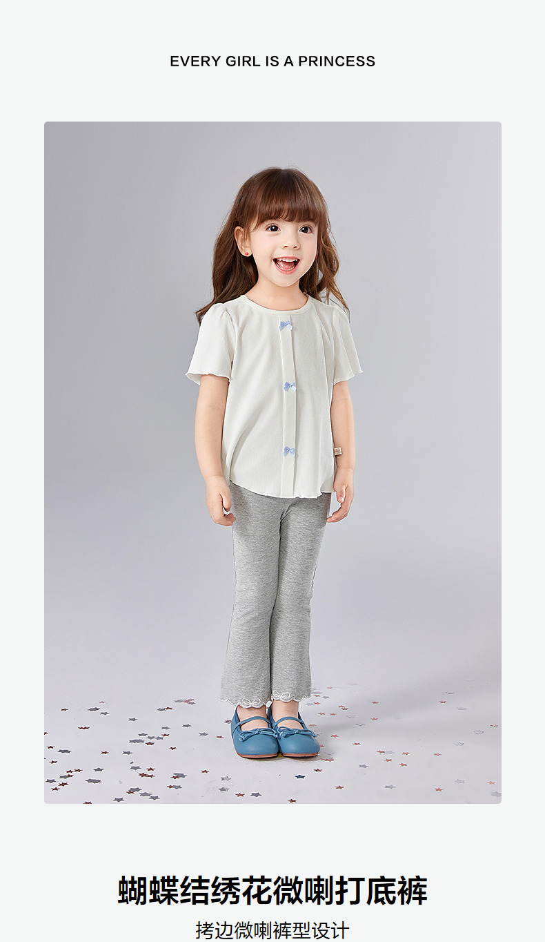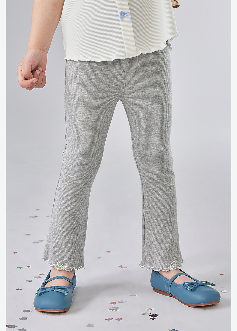 笛莎Deesha 童装女童裤子2025夏新款女童蝴蝶结绣花微喇打底裤