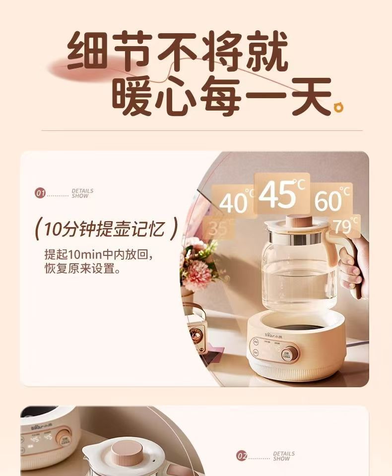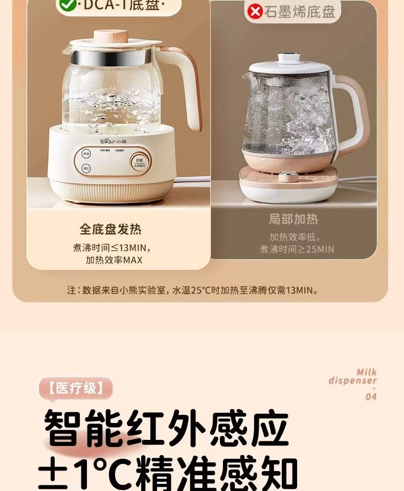 小熊玻璃恒温水壶婴儿智能泡奶保温家用调奶器宝宝专用烧水神器