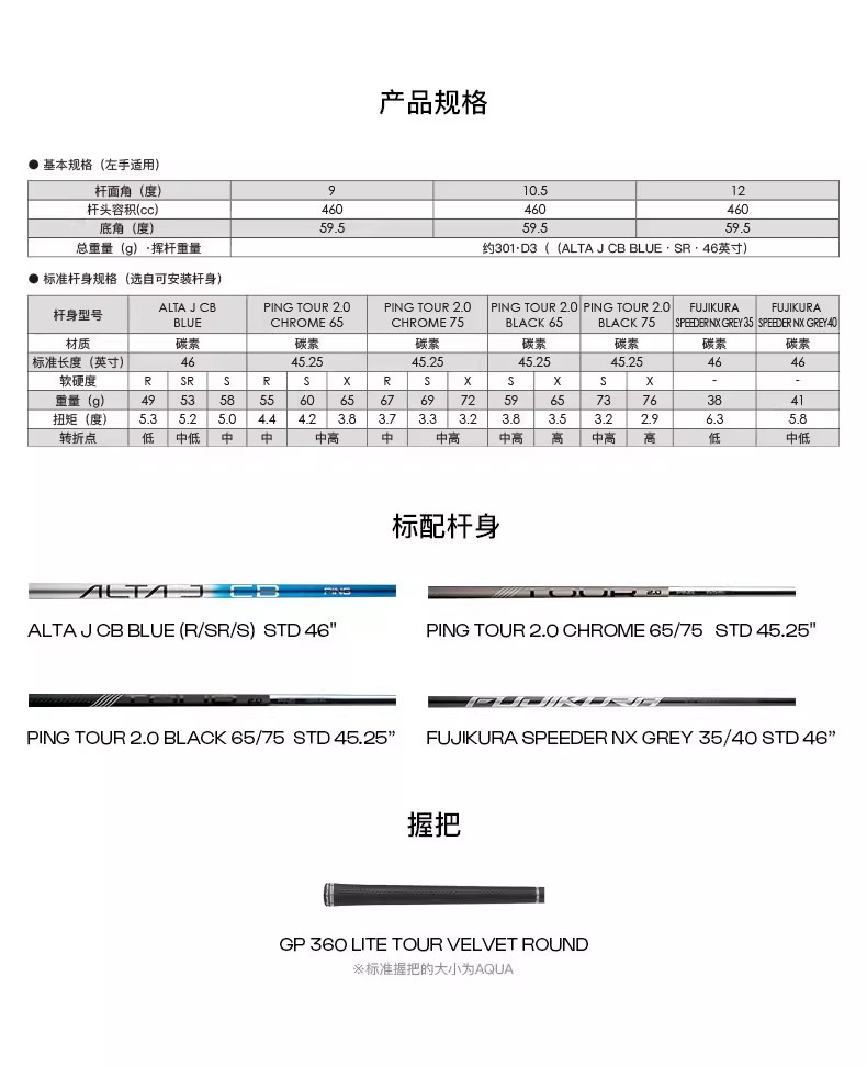 26新款PING高尔夫球杆男士一号木G440 K高容错1号木开球发球木杆