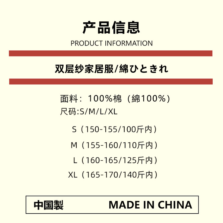 【竖条-双层纱家居服】日式无印新品纯色双层纱家居服套装,100%全棉双层纱,无侧缝设计