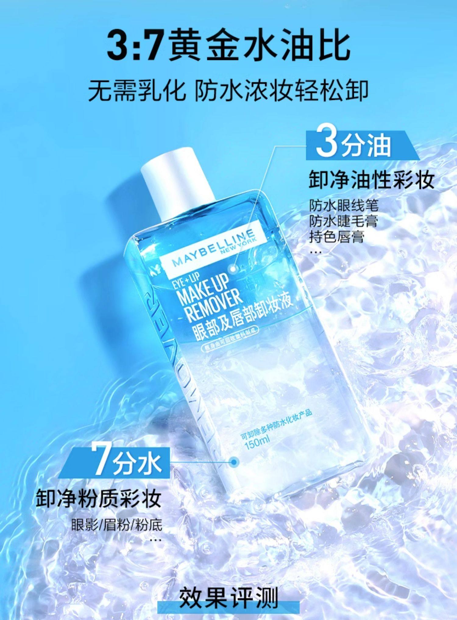 美宝莲纽约眼唇卸妆水 卸妆油净澈清洁全脸可卸三合一温和不刺激