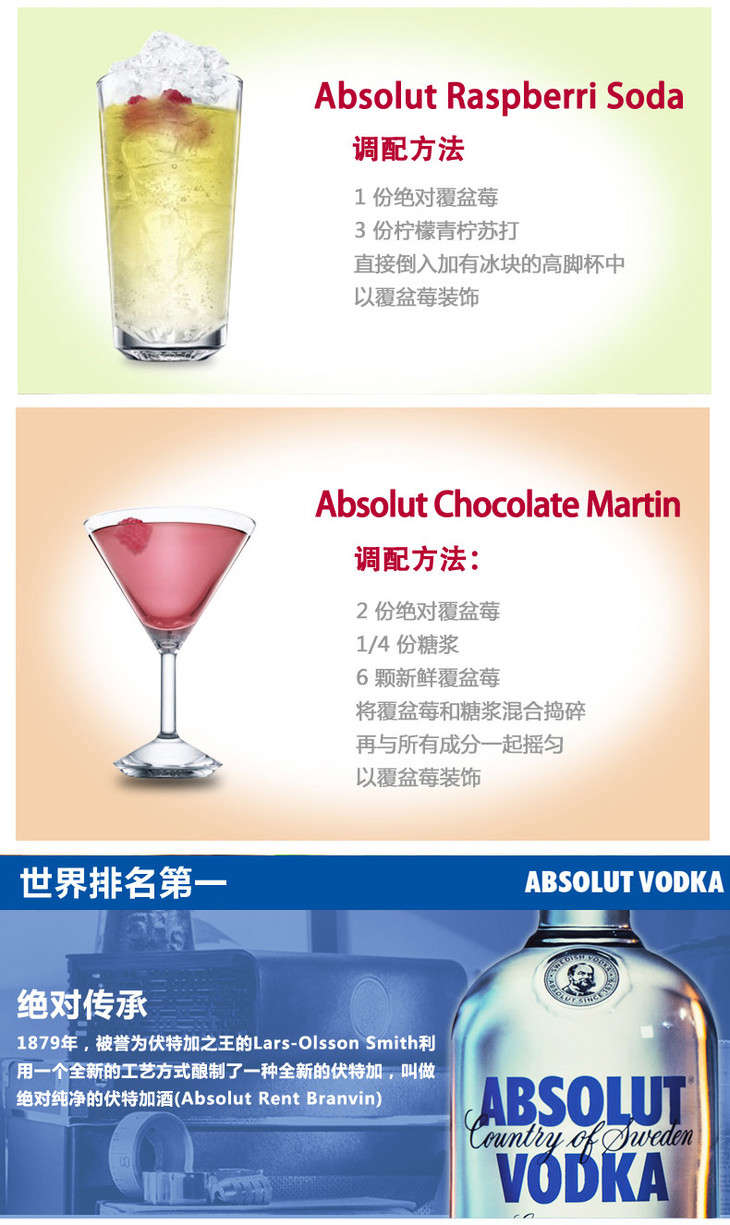 【单瓶】绝对伏特加(覆盆莓味)40%vol 700ml同城免邮
