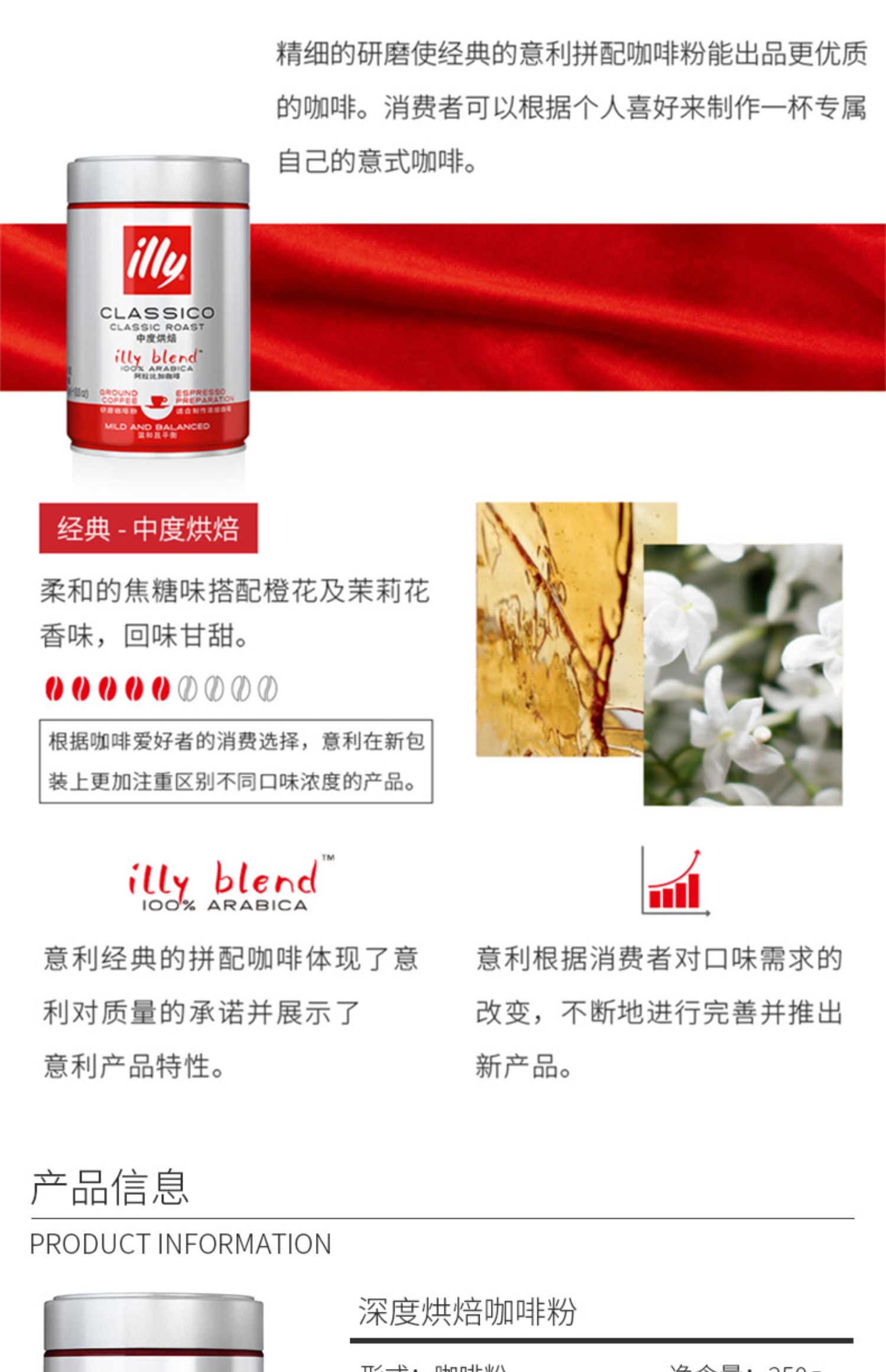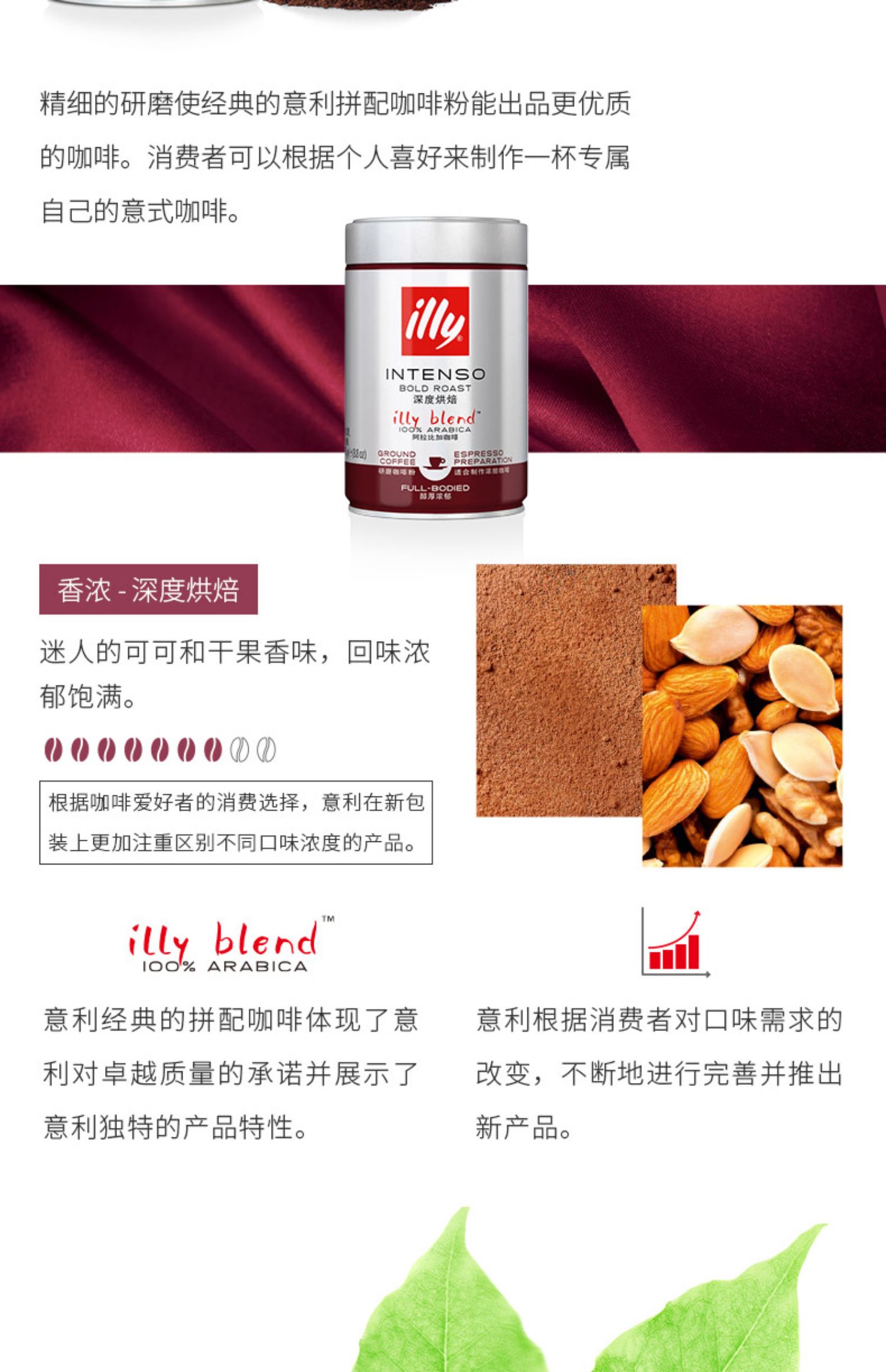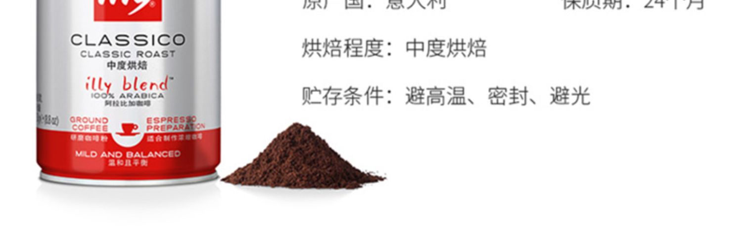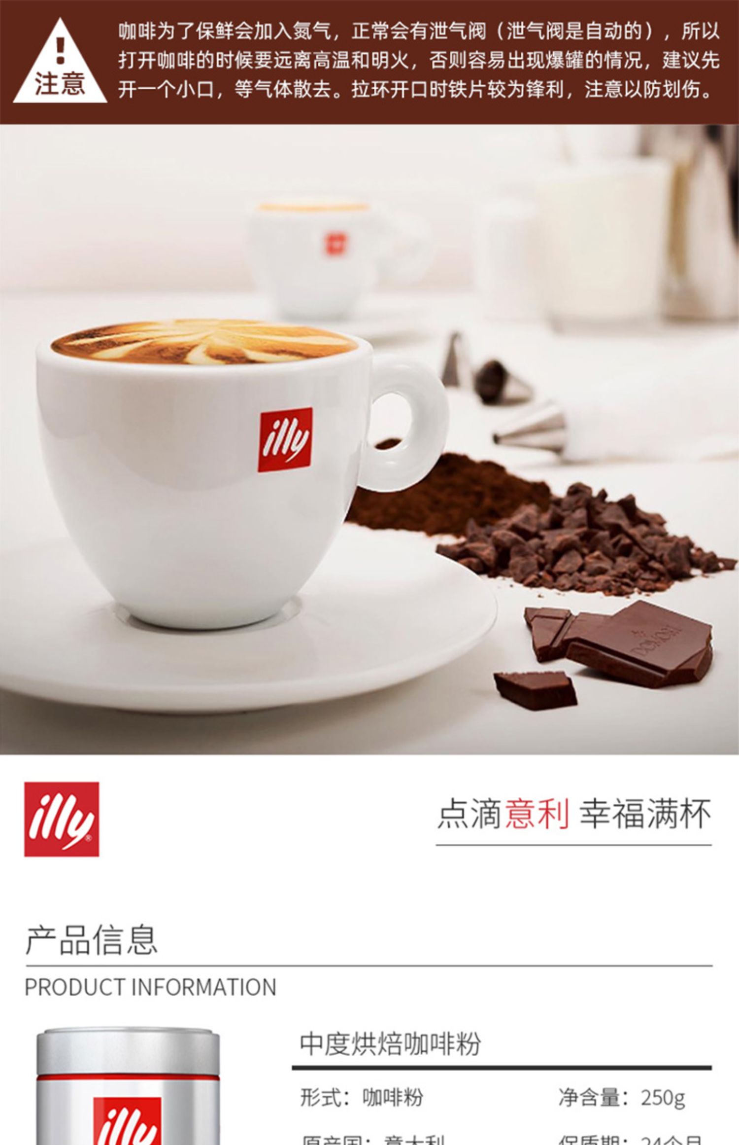 意大利illy浓缩咖啡粉 250g 中焙/深焙 精细的研磨 优质的咖啡粉 023879/023880