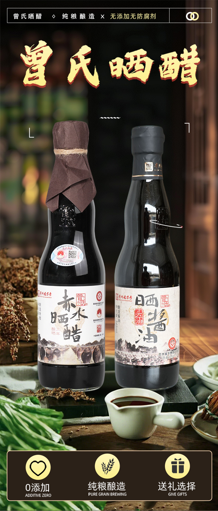 非遗酿造·赤水曾氏晒醋 土坛发酵1000天 棕红透亮 咸甜鲜美 醇香味浓 唇齿留香