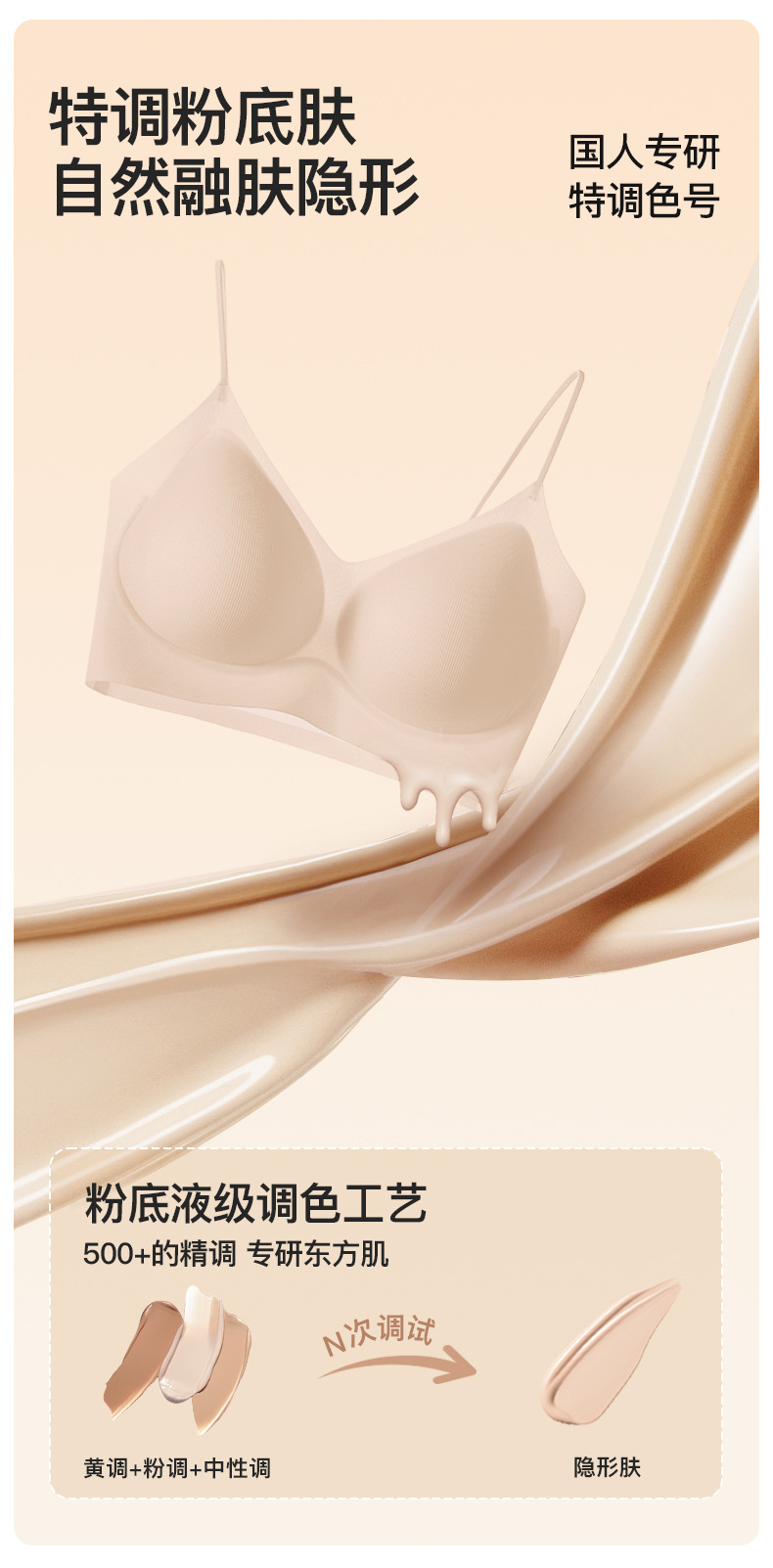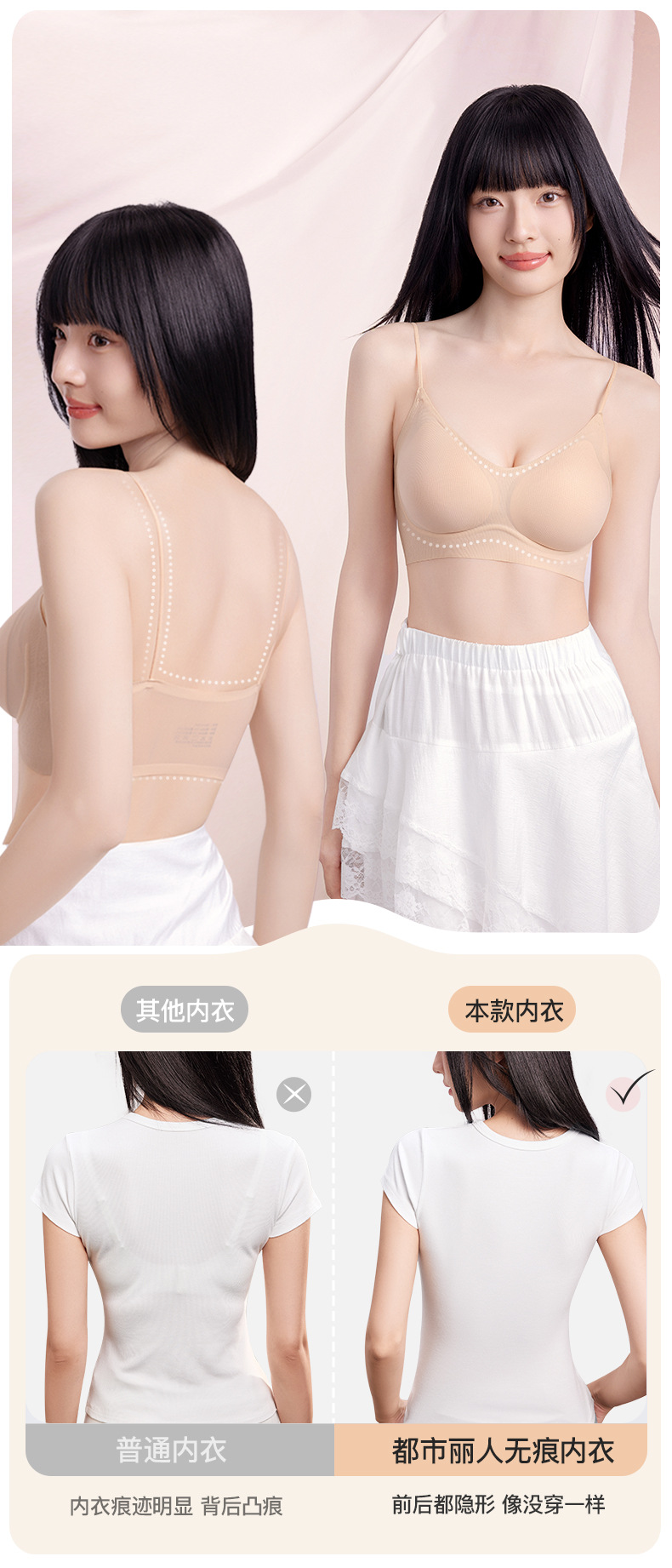 【69.9元2件】品牌同款粉底液隐形内衣 夏季薄款提拉软支撑舒适无痕细肩带文胸