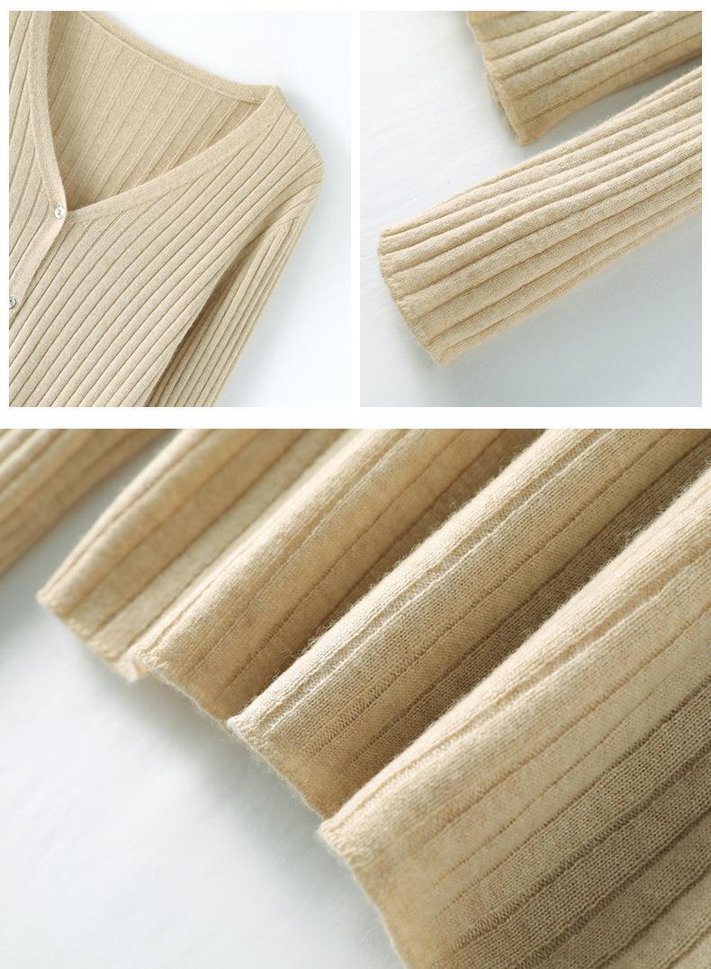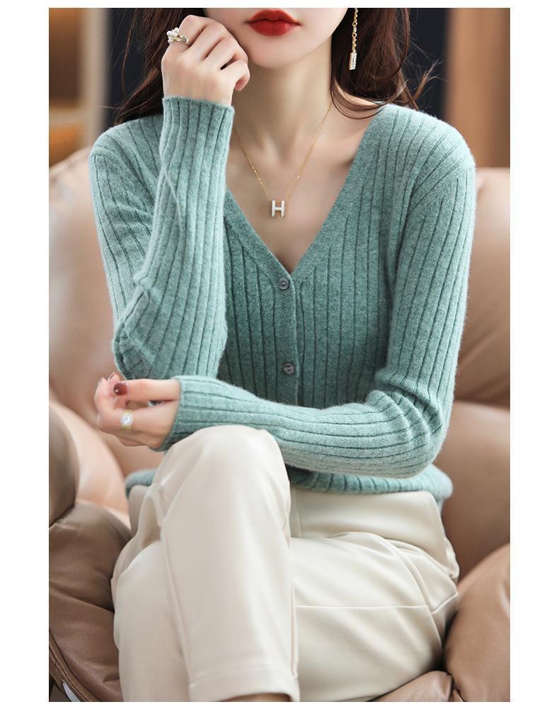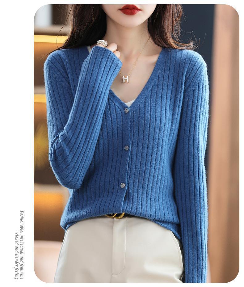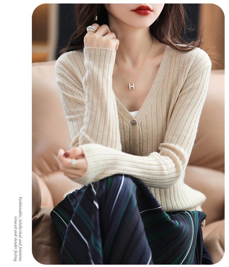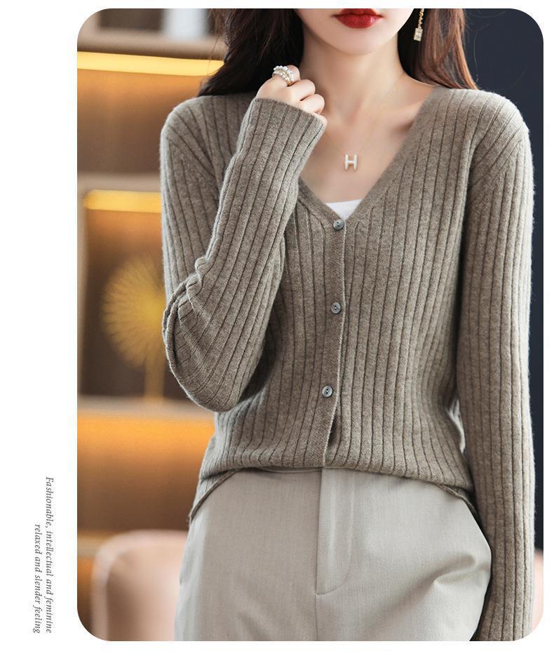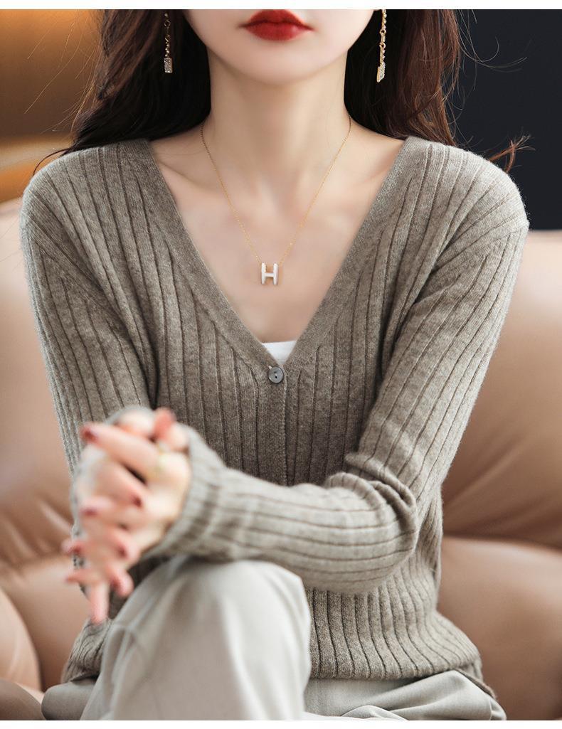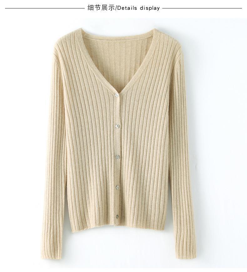 朱砂红色开衫女V领针织衫抽条开衫百搭显瘦打底休闲针织外套上衣
