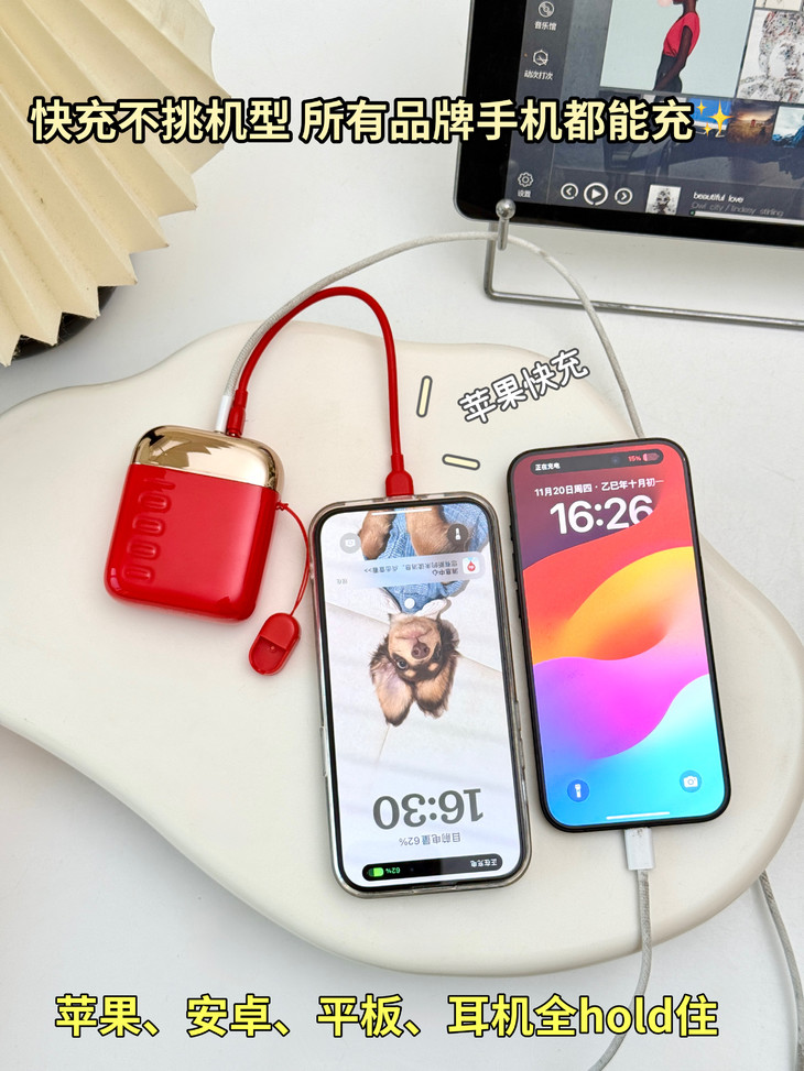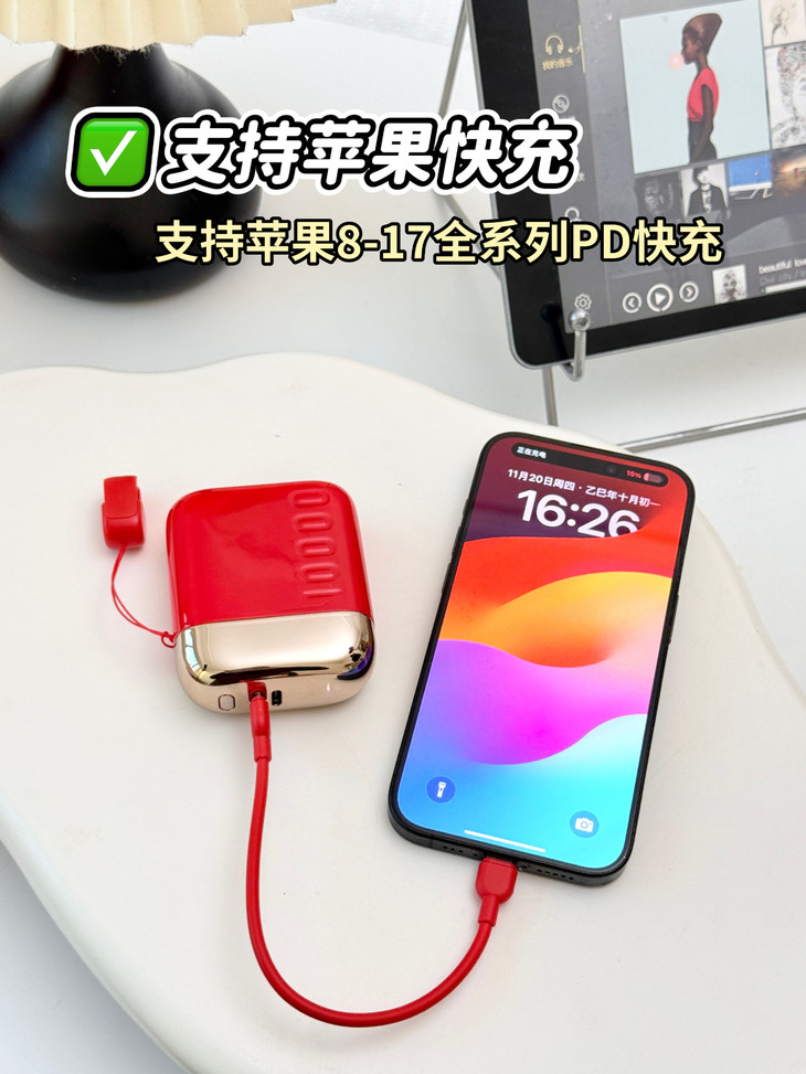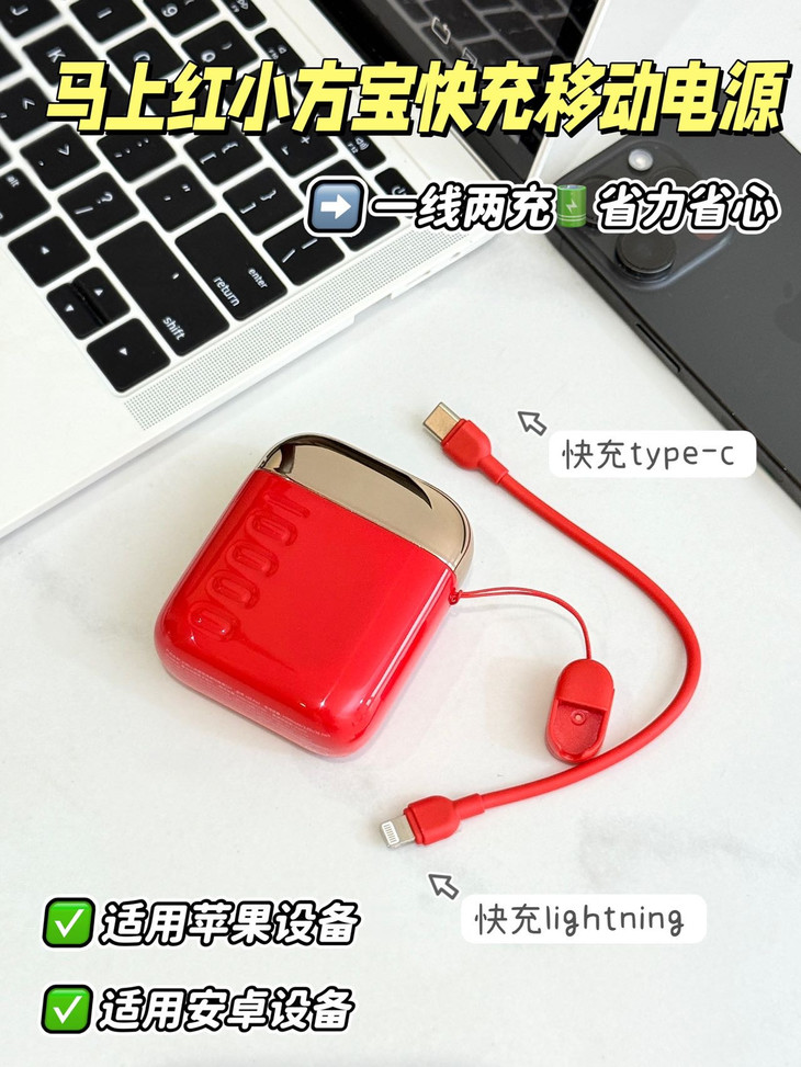 👜日常通勤:红身醒目,便携随行 一抹红在包里超显眼,找它不费劲儿!小巧身材塞进口袋、包包毫无压力,上班、逛街时,随时给手机、耳机补电,红运续航一整天🔋 ✈️长途旅行:红影亮眼,电量满舱 户外环境,红色格外醒目,就算不小心落在哪,也更容易找回 ⚡应急备用:红警提示,电量救星 红色自带警示感,关键时刻拿出它,迅速给设备回血,再也不怕电量突然告急