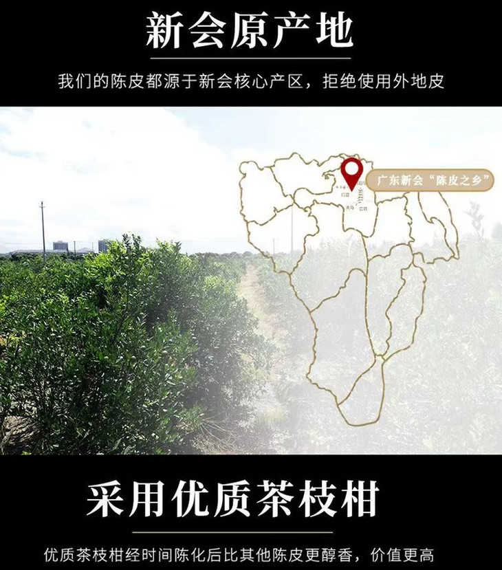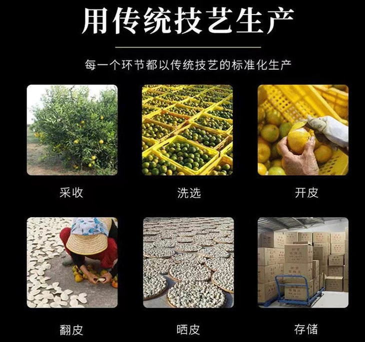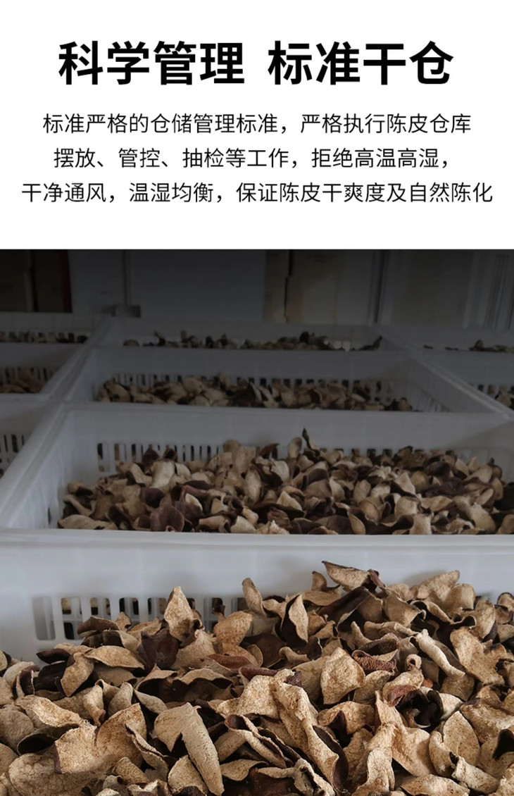 ⚠️⚠️⚠️温馨提示:因新会陈皮是纯手工制作,无任何添加剂,自然阳光下晒制,会有些部分泛白,甚至稍微有点霉点,表皮斑斑点点是属于自然的现象,这种情况不做售后处理,恕不退换,介意者慎拍。 如有以上情况的喝之前用开水冲泡一遍倒掉再进行泡茶,完全不影响口感。 陈皮表面的那层“白霜”,被行家称为“柑油晶”、“脑晶”,指的是在制作过程中,柑皮经过生晒和存放后释放出的糖分和柑油形成的结晶,类似于传统干货上的白霜,此现象属于正常。 当然,白霜的形成与柑皮的厚薄、生长阶段以及柑油含量等因素相关,就正宗新会柑,其物质含量和柑油比起其他地区会高,所以对比起身,白霜现象会较为明显。其物质含量高,同时也说明新会柑制成的陈皮才是正宗陈皮。