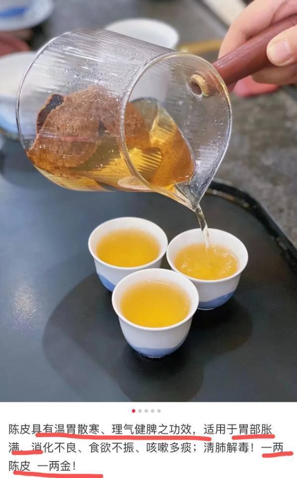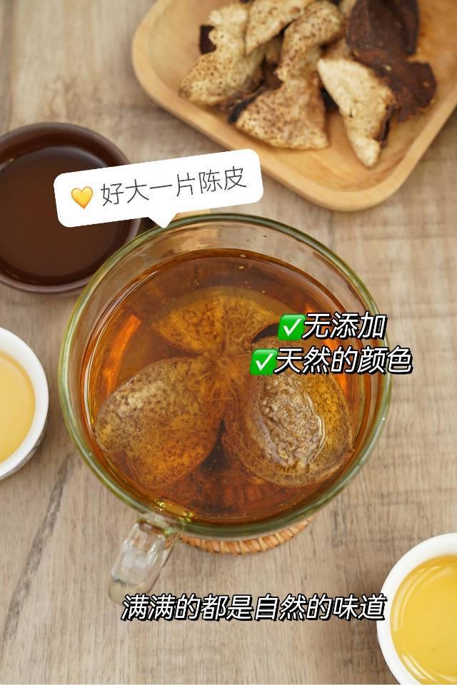 quot;。 油室完整度越高,陈皮所含橙皮甙等活性物质就越高,药用养生功效就越好。 外地陈皮的油点则分布不匀,数量较少,大小不一。 气味层次丰富,芳香自然,泡水后色泽金黄好看,入口甘醇陈香。 喝陈皮水和喝茶是一样的,千般滋味慢慢品