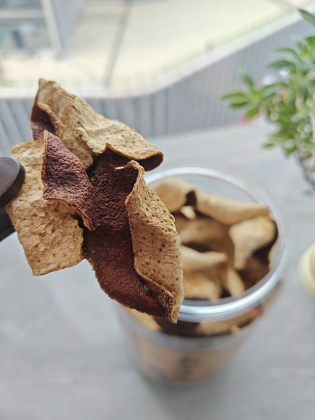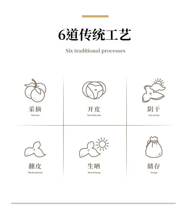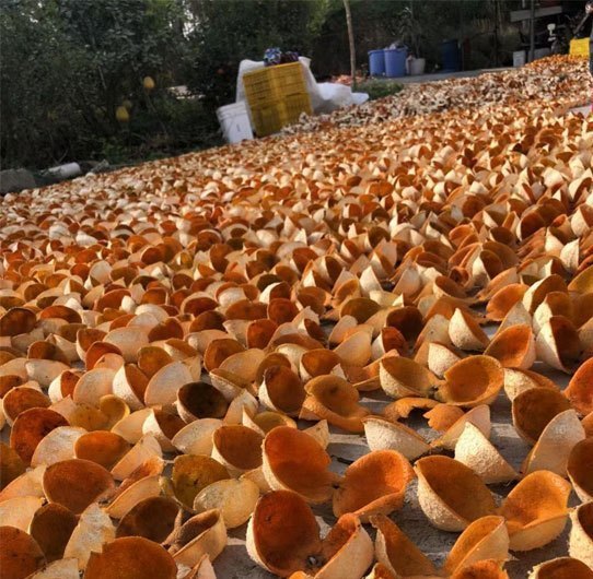 在开皮之后,需要将果皮置于阴凉通风处进行晾晒4-5个小时,让柑皮中的水分缓慢蒸发的同时有效保留柑皮内的营养物质。 不同于门店价格昂贵的陈皮,我们家的陈皮是直接从原产地发货,没有中间商赚差价,价格实惠,品质有保障。