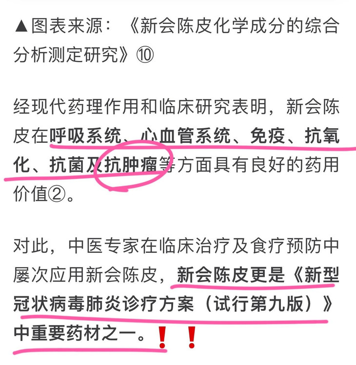 👨⚕️钟南山院士推荐新会陈皮(柑茶),能有效预防并减轻空气污染中有害气体引起的肺部炎症,包括对肺泡间隔的破裂、小气道重塑、粘液高分泌等具有一定保护作用,是秋冬老少皆宜的良茶。✅✅ 早在2015年钟南山研究团队 就开始进行新会陈皮(柑茶)的保健功效研究 历时2年多的动物实验研究结果表明: 新会陈皮(柑茶)能有效预防和减轻空气污染中有害气体引起的肺部炎症! 包括对肺泡间隔的破裂、小气道重塑和粘液高分泌等具有一定保护作用。 ❗❗️⚠️⚠️“新会陈皮”更是作为这次新观肺焱中试行的中药💊,有着巨大的药用价值!!! ❗❗️⚠️⚠️️“新会陈皮”更是作为这次新观肺焱中试行的中药💊,有着巨大的药用价值!!!