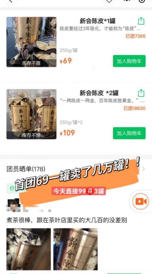 我们的老陈皮礼盒不陌生了吧开团次次都是超爆级别💥💥💥次次开团爆卖!重点是反馈超级好!!! 还有,这次陈皮的价格真的绝了绝了!250g超大罐同样品质,上团价格99两罐此次直接降到最低,99到手整整三大罐‼️‼️ 送人自用都贼合适啊~都2023年了,佳节临近,走亲访友,礼尚往来也是噶超不错的选择且陈皮完全不挑人,男女老少都可以。