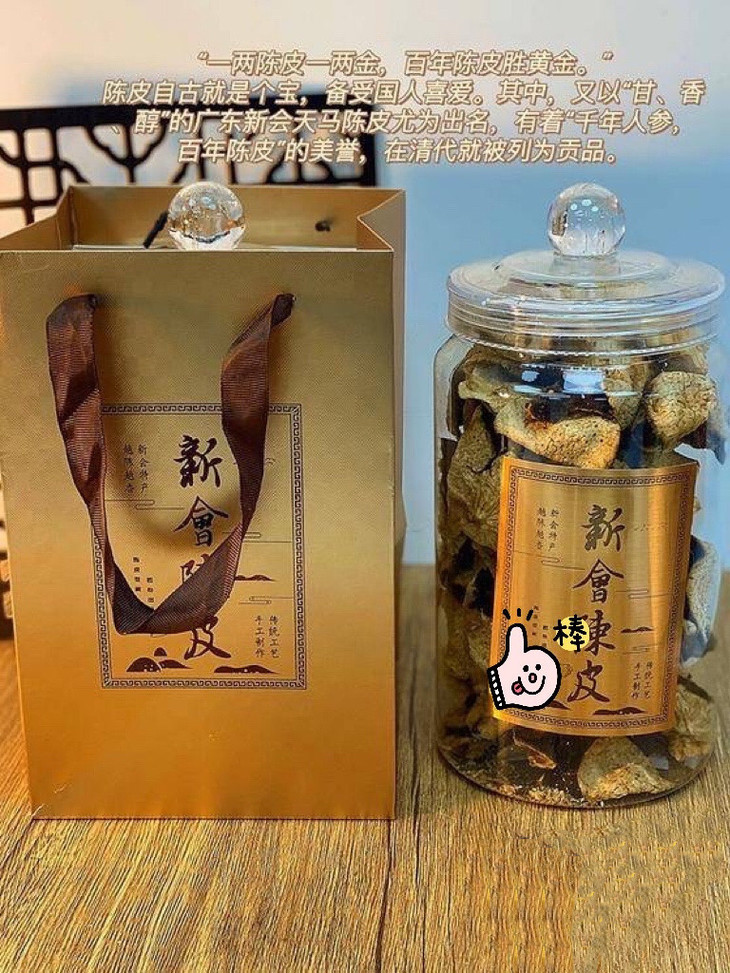 为啥都在存新会陈皮?陈皮到底是什么 “一两陈皮一两金,百年陈皮胜黄金”,而陈皮中当属新会陈皮最正宗,养生效果跟药用价值也是最好的,这是因为新会特殊的地理位置,依山面海,土地肥沃,所以当地所产的大红柑的干果皮向来享有盛誉 🧚🧚🧚🧚🧚🧚 🏻🏻那么陈皮是什么呢 新会茶枝柑果去皮后天然生晒,陈化3年以上才可以称为陈皮,并且越陈越香,3-5年口感非常润甜,6-8年有回甘,喝下去喉咙明显的舒服,10年以上就已经完全陈化为药香味,药用价值极高。