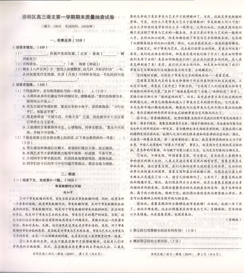 2018-2020年版领先一步上海高考语文一模卷 试卷+参考答案 文化课强化训练3年合订本 上海市高三第一学期期末质量抽查试卷精编