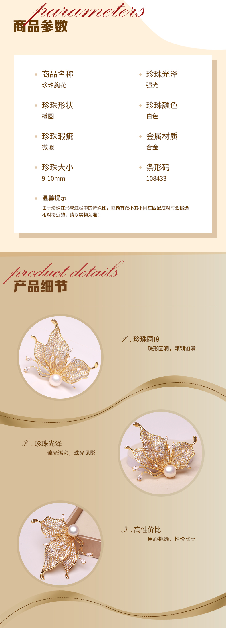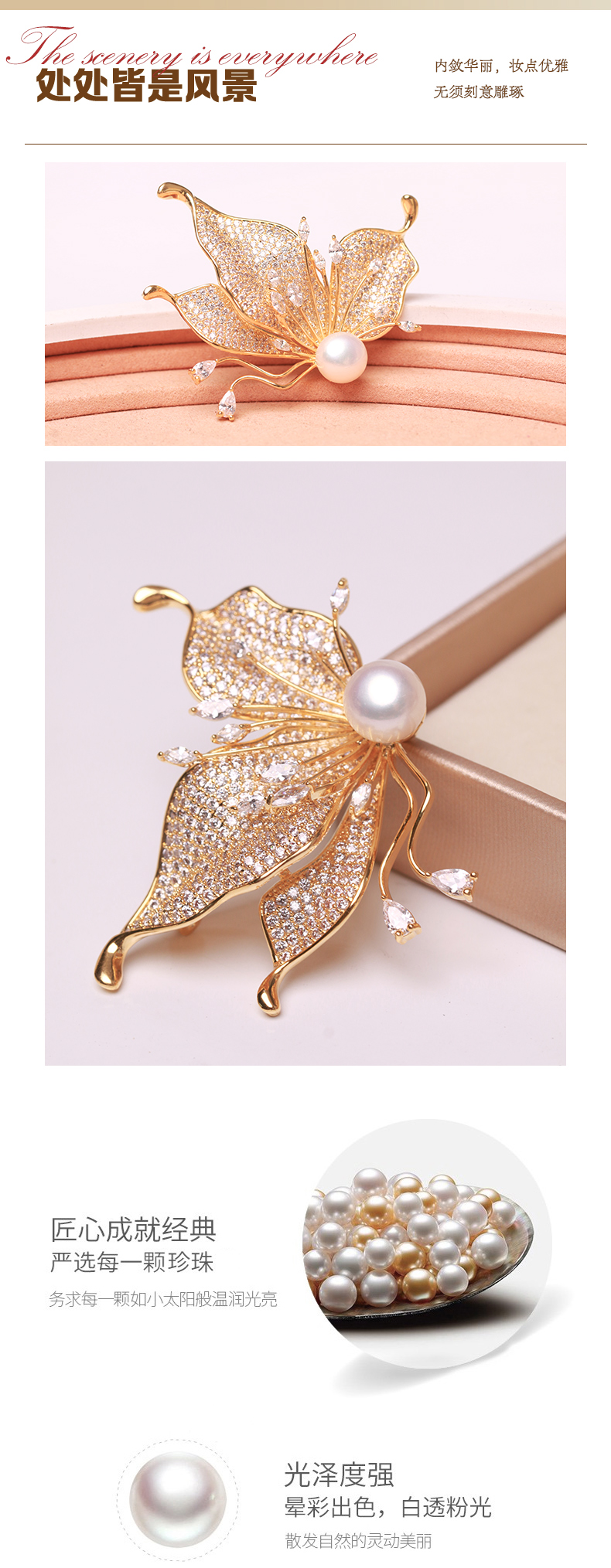 半边蝶 GP合金淡水珍珠胸花 大小:9-10mm 108433