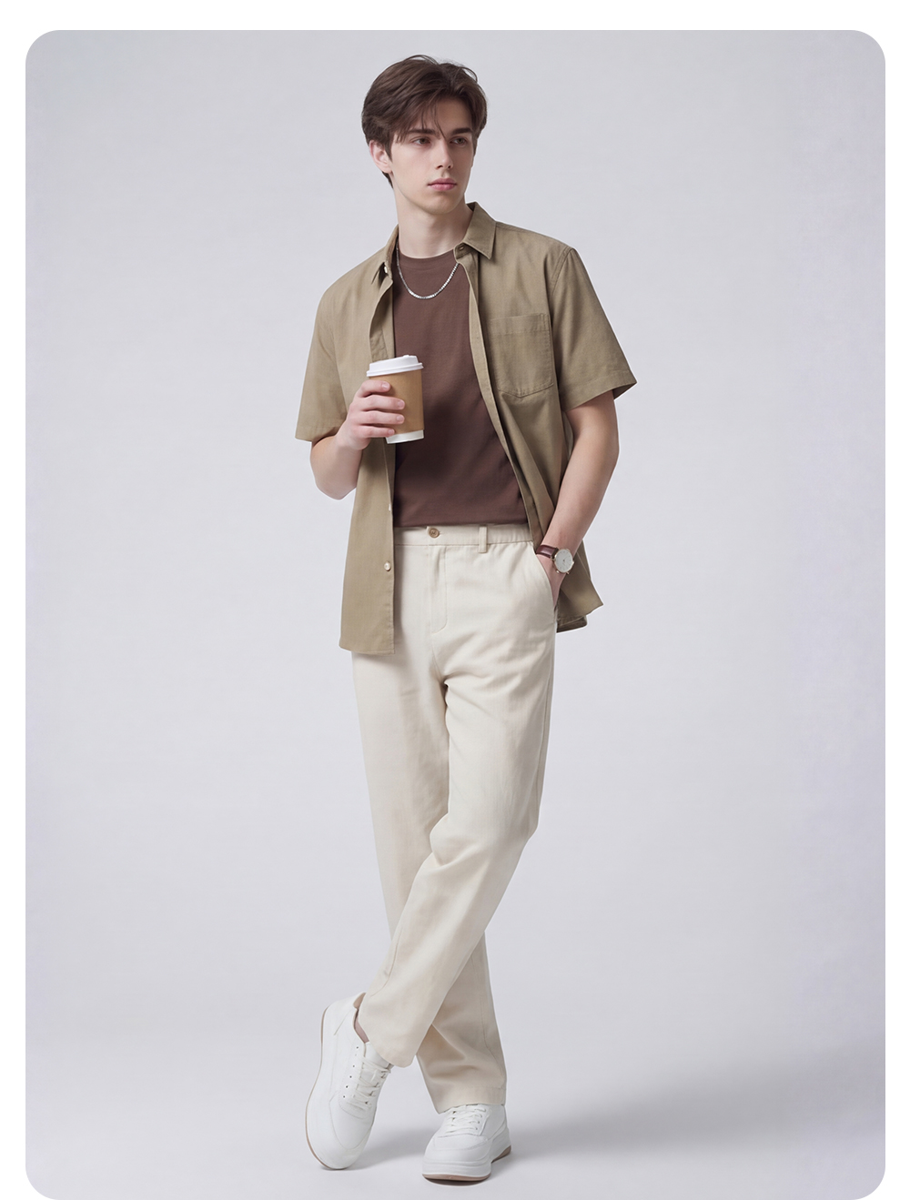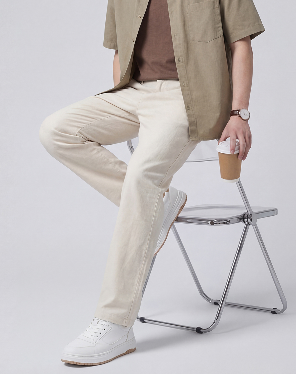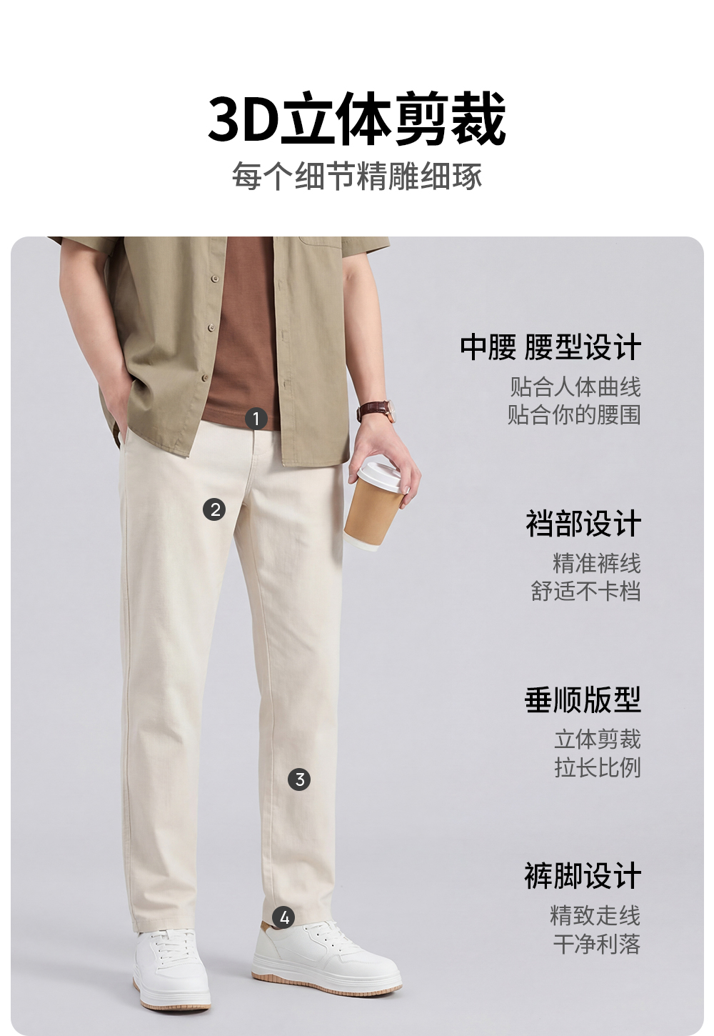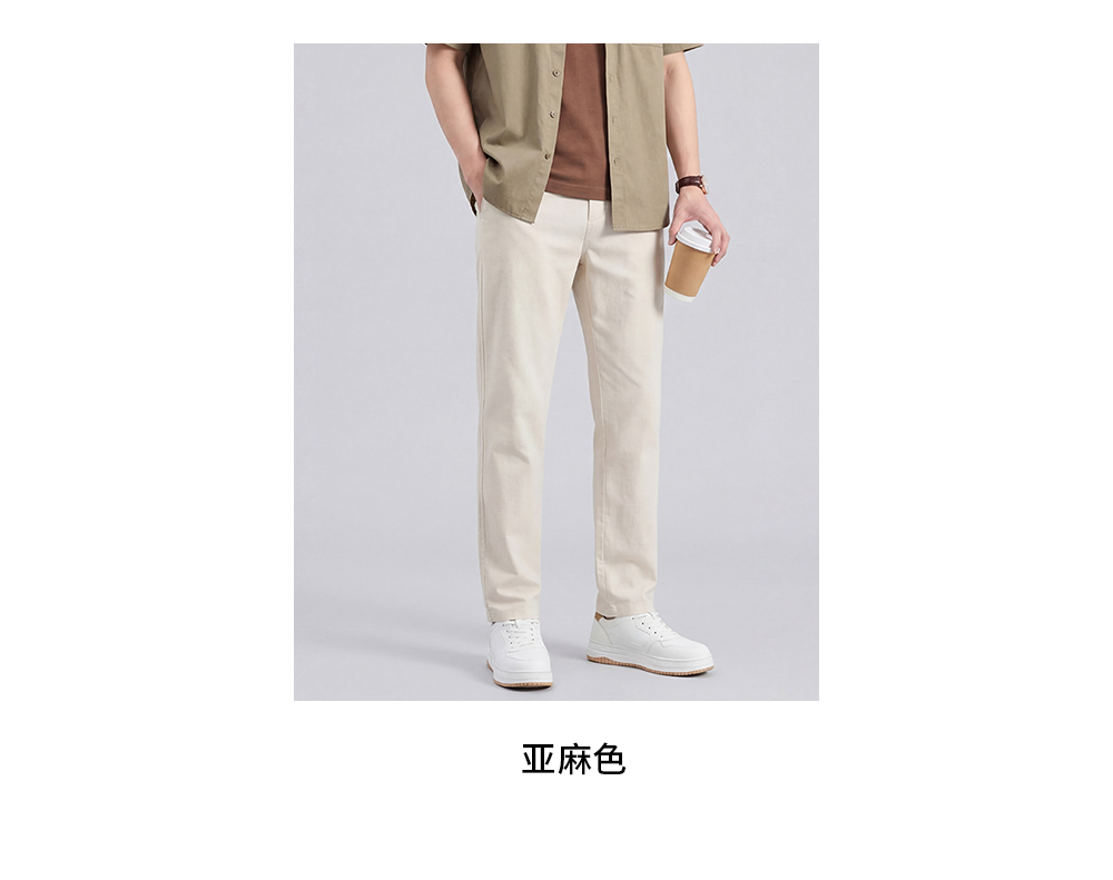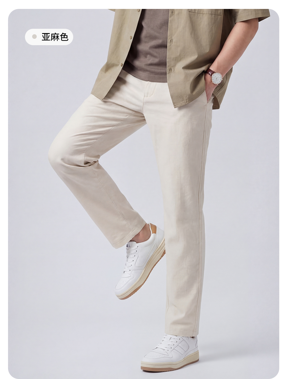 【含棉&含亚麻】圣得西男士松紧休闲裤2026新款春季通勤薄款裤子
