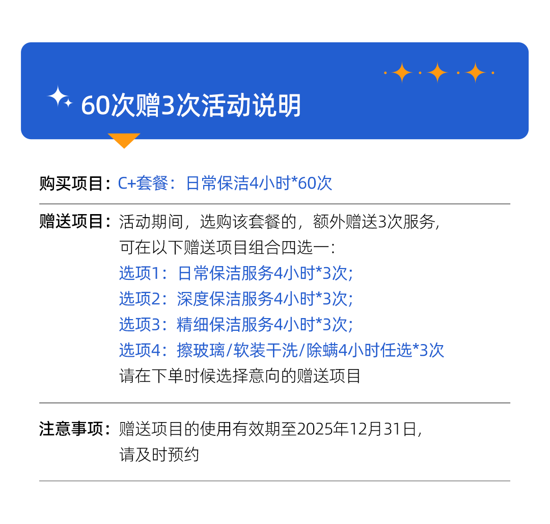 【双11加赠3次】60次×4小时 家居日常保洁服务