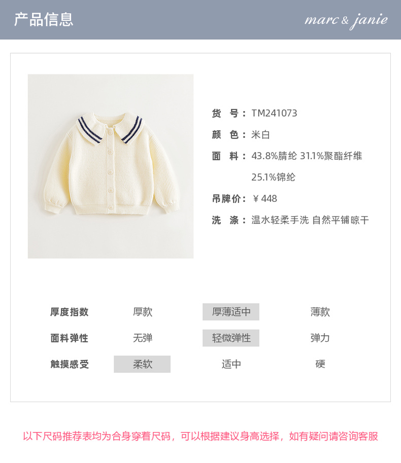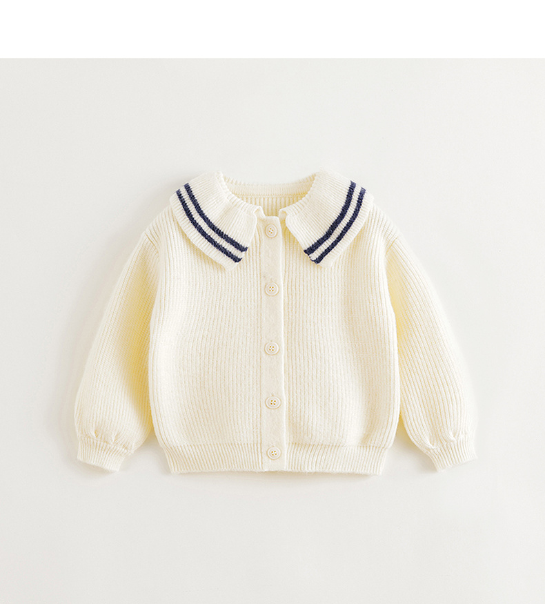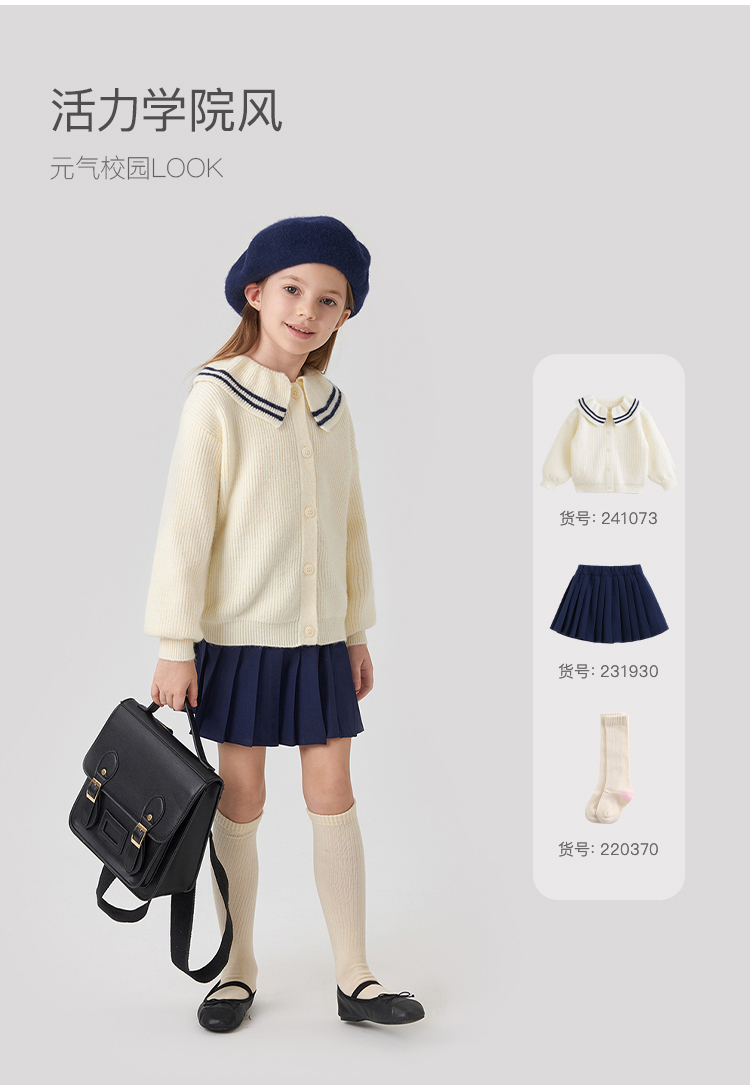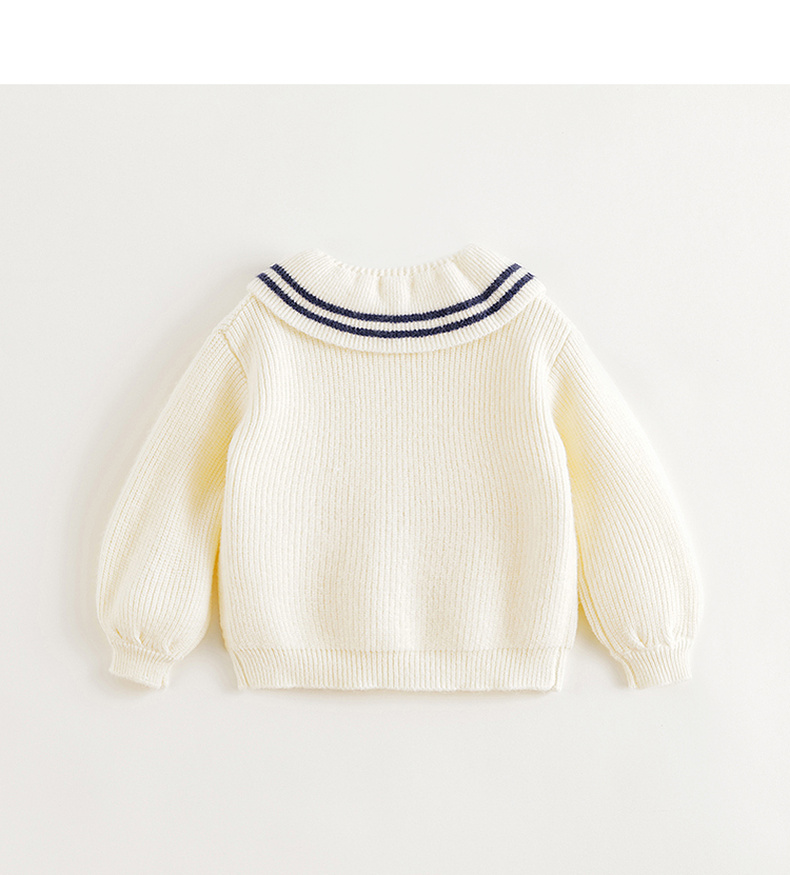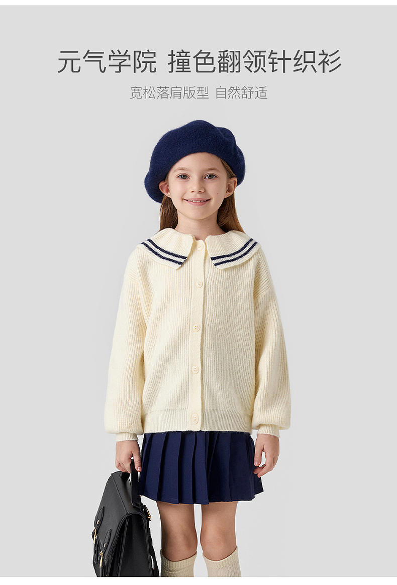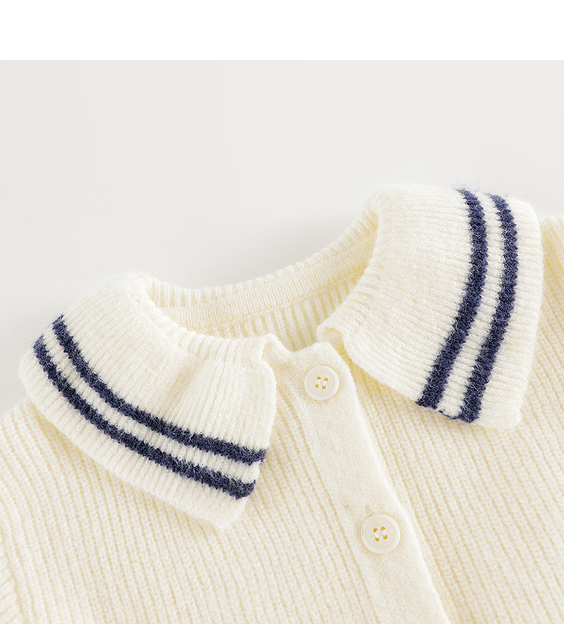 马克珍妮女童文艺条纹撞色翻领针织衫2024年秋装新款241073