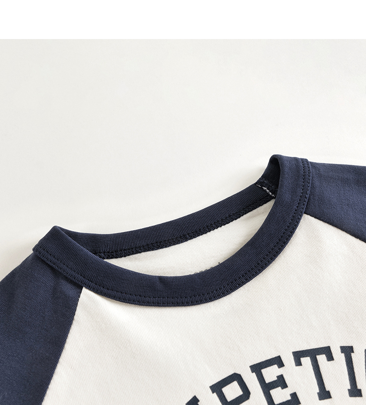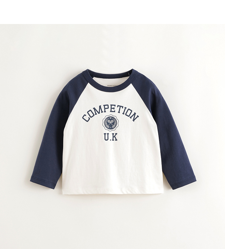 马克珍妮女童宽松字母撞色T恤 儿童元气学院纯棉上衣春装550517