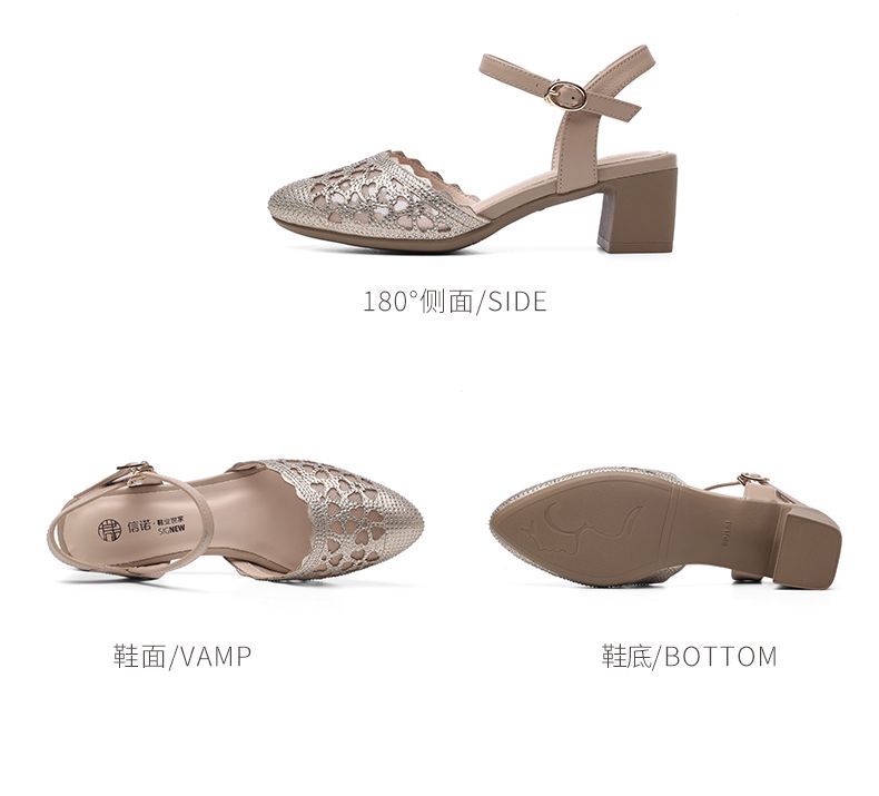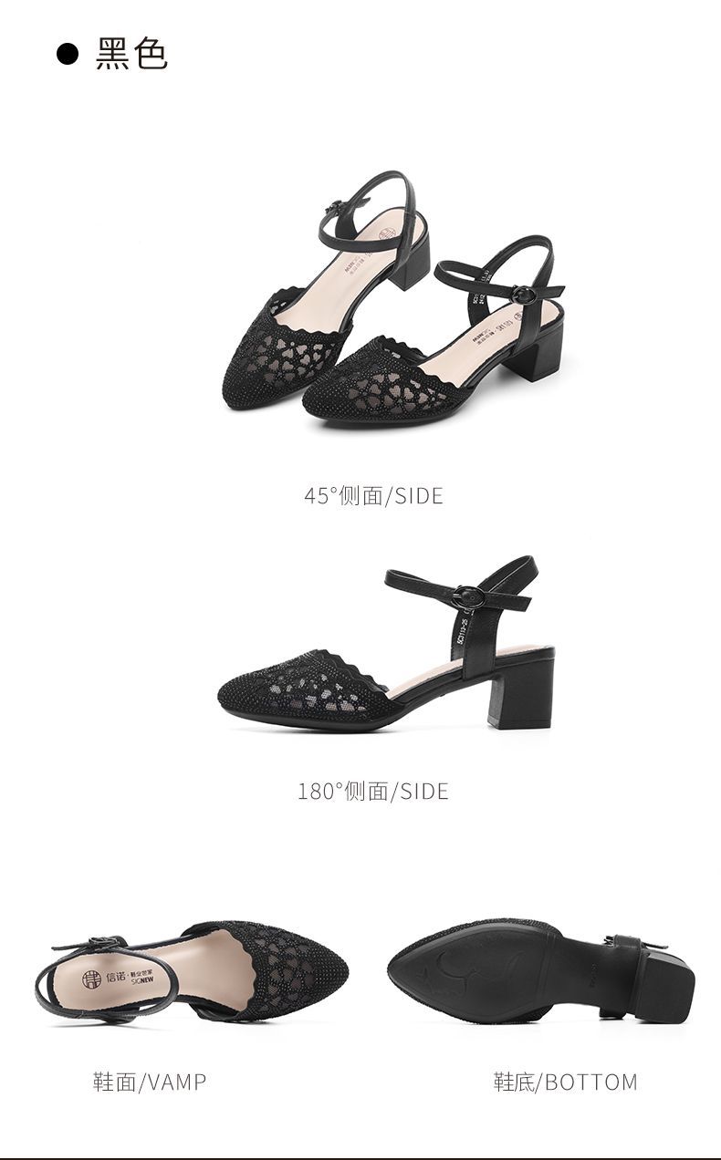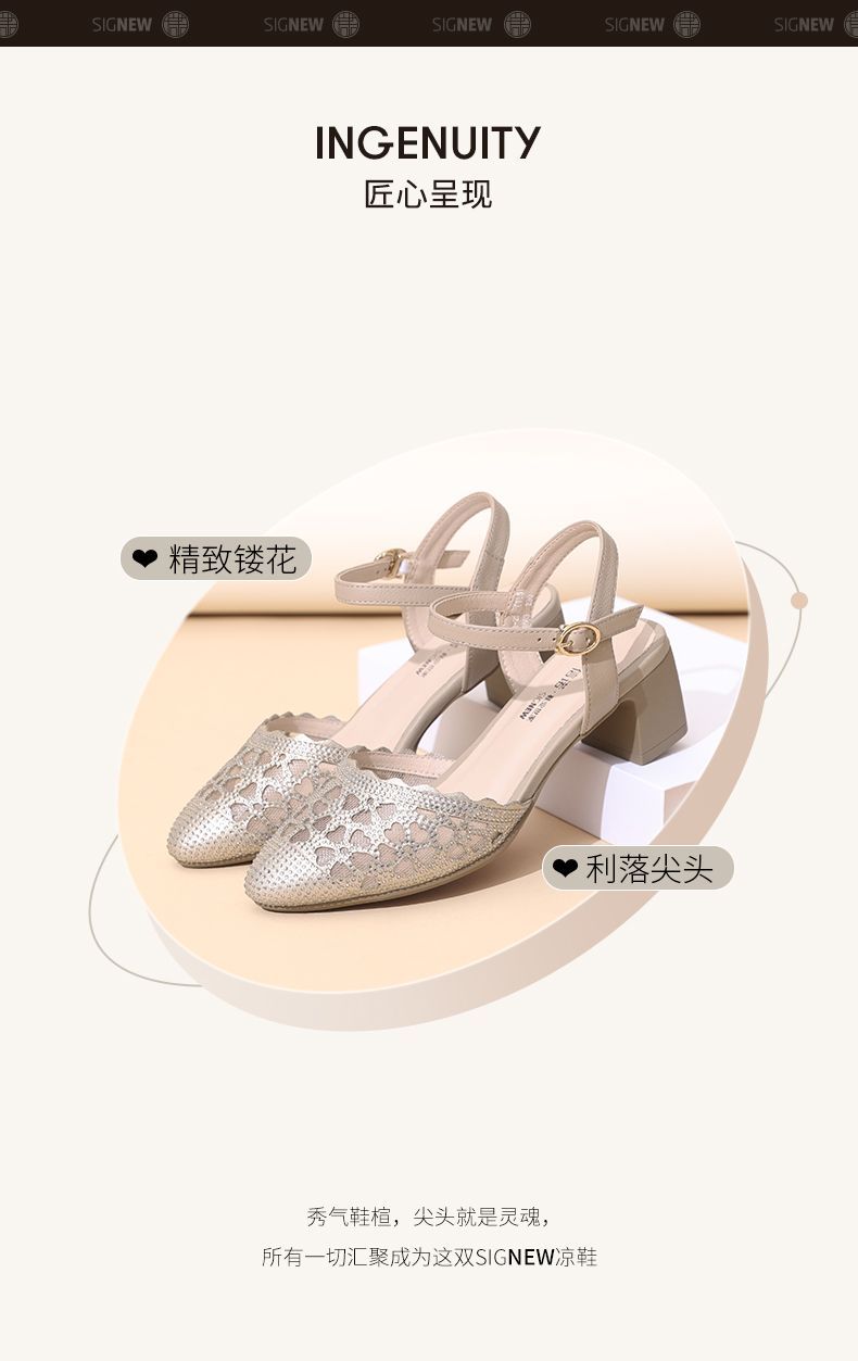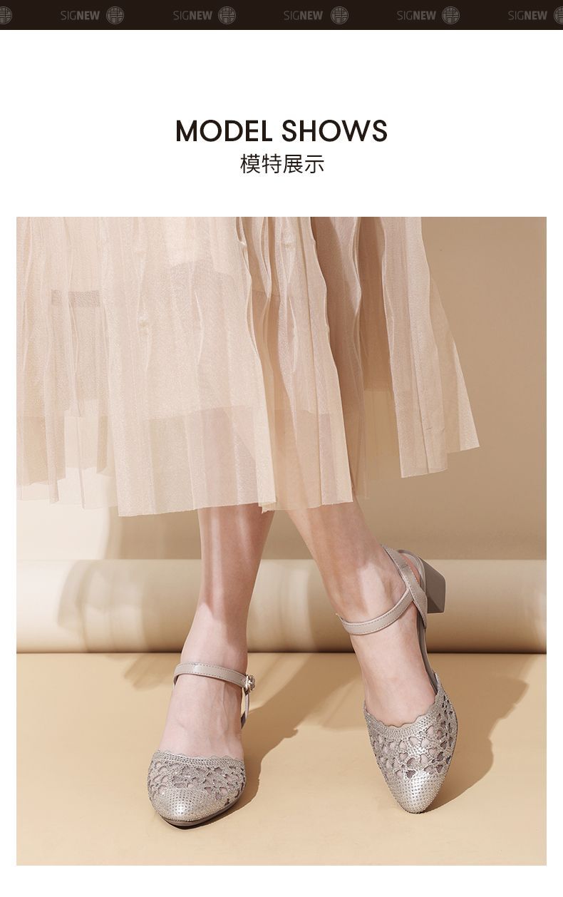 信诺真皮软底女鞋2025新款夏舒适透气女凉鞋时尚洋气网纱女士单鞋5C3113-25