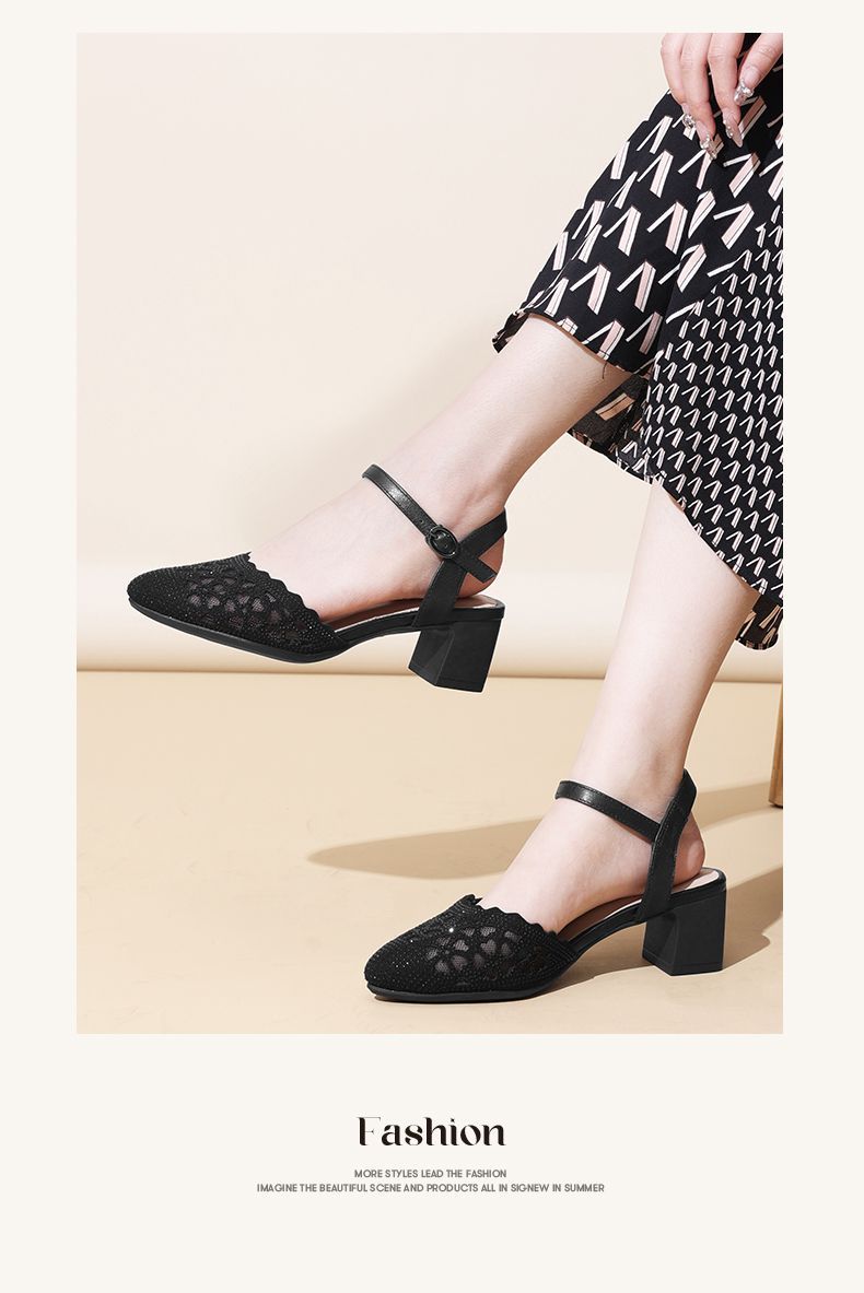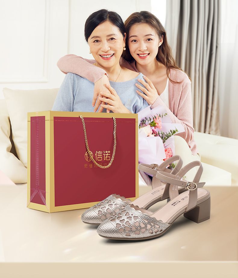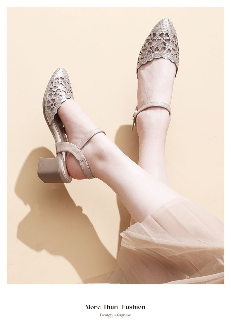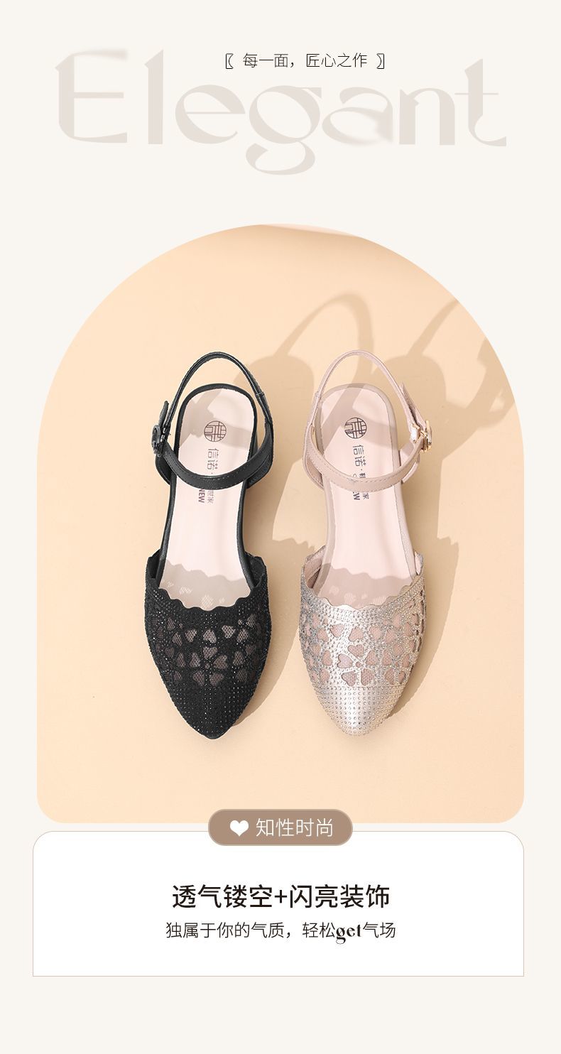 信诺真皮软底女鞋2025新款夏舒适透气女凉鞋时尚洋气网纱女士单鞋5C3113-25