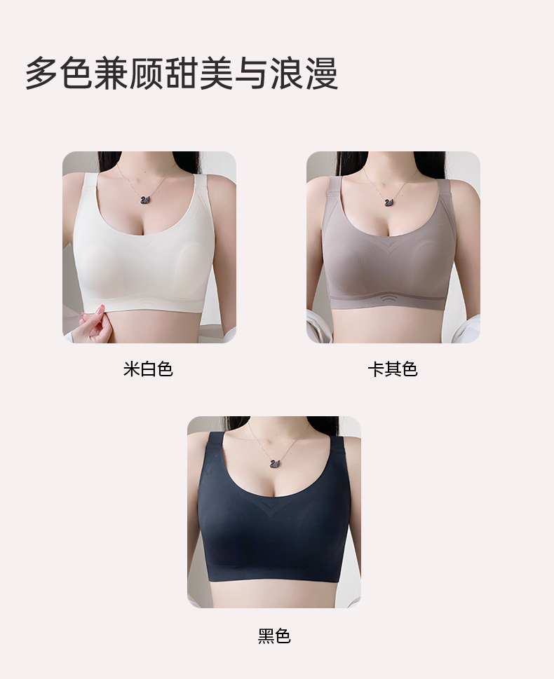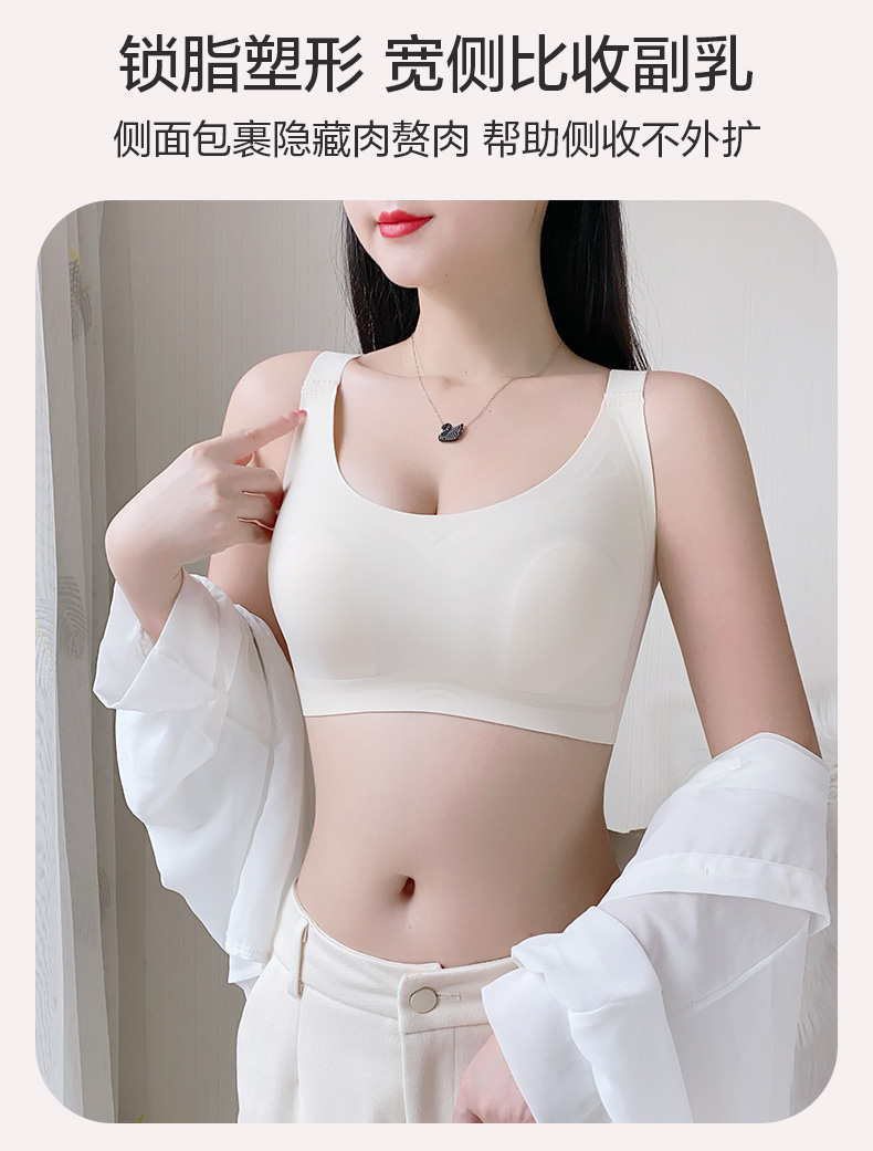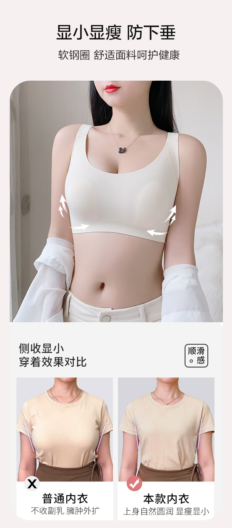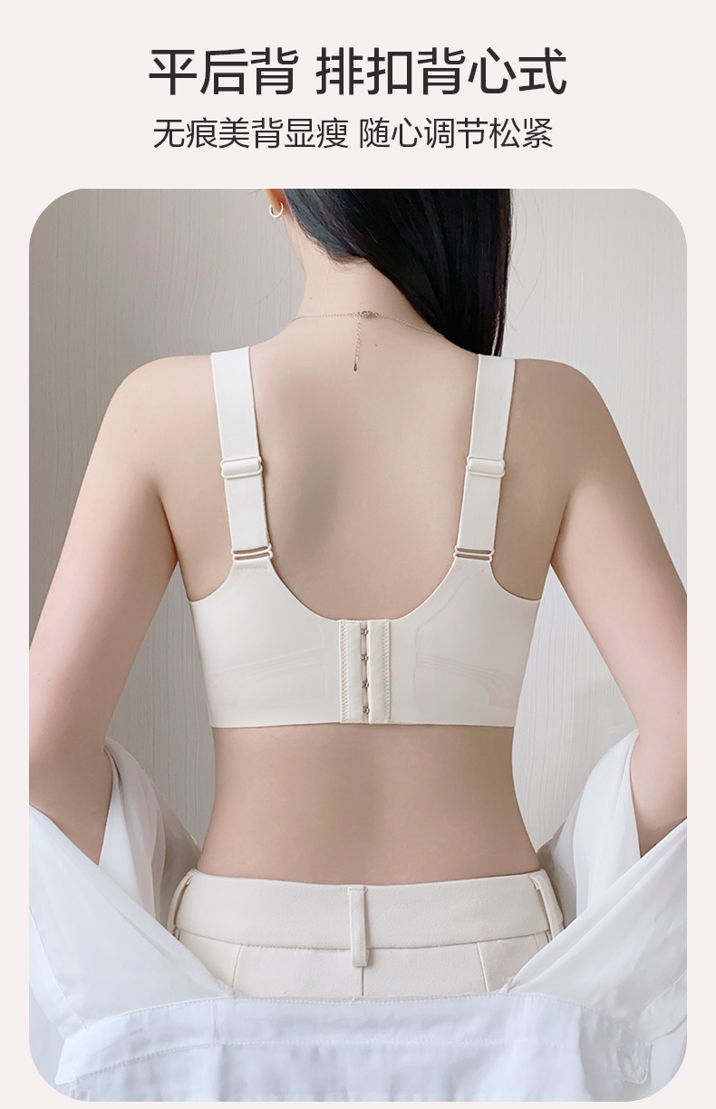 U型美背无感文胸 大胸显小 无痕光面兔耳朵杯 高侧比无钢圈 薄款贴身透气 全罩杯稳定承托 收副乳